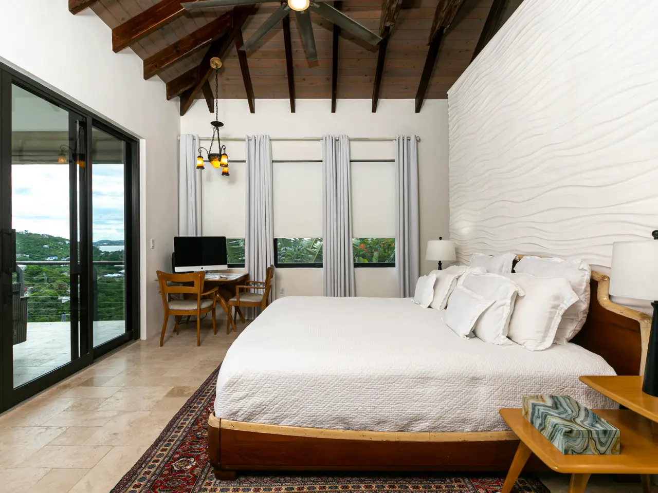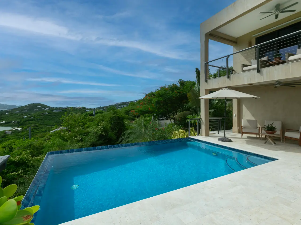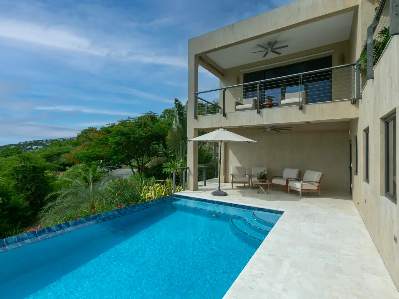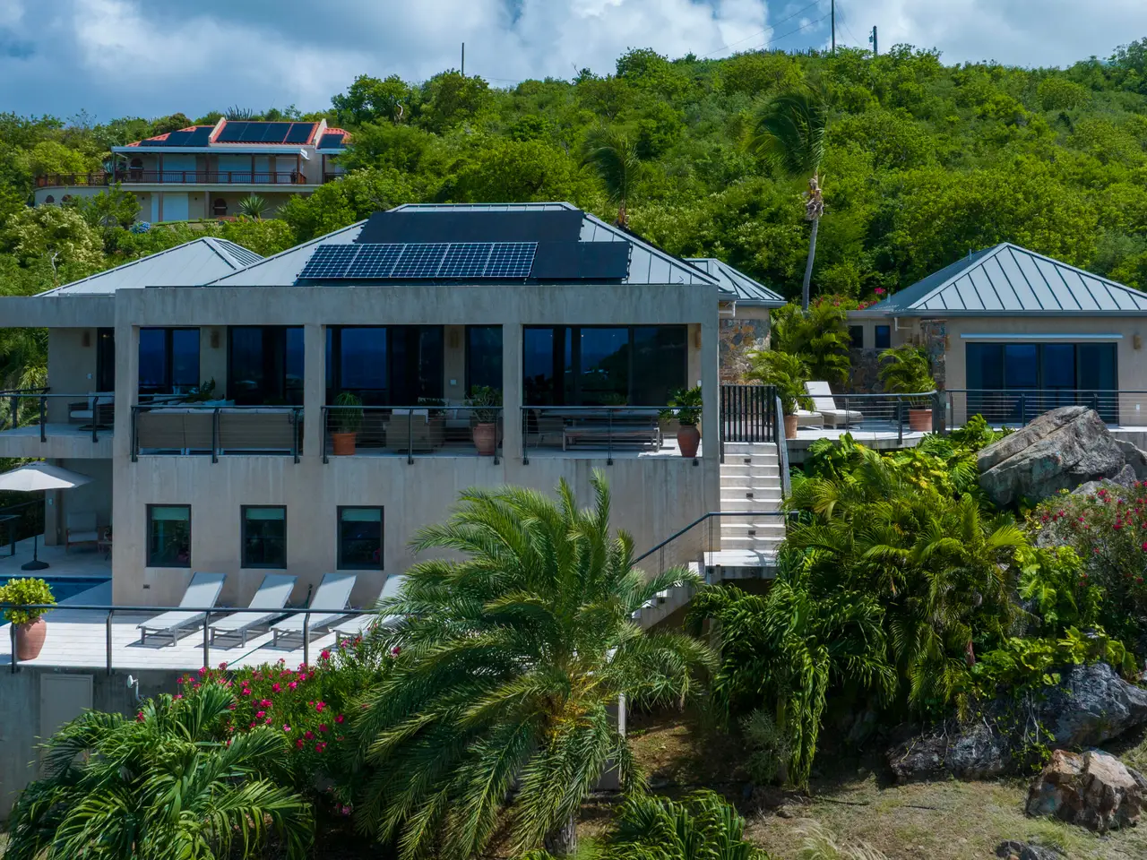Blue View Villa, a stunning new property built in 2019, exuding a classic soft modern Caribbean style. This exceptional home is perched on a spacious plot, offering panoramic views from sunrise over the serene Ram's Head to sunset over the majestic St. Thomas. With three oversized bedrooms and en-suite bathrooms, each designed with ample space and the flexibility to convert to a 4 bedroom villa. Blue View Villa caters to both comfort and functionality, equipped with solar panels and Tesla Batteries. Located just minutes from Cruz Bay and with private neighborhood beach access within walking distance. Blue View Villa is ideally set up to operate as a vacation rental, though it is tempting to move right in!