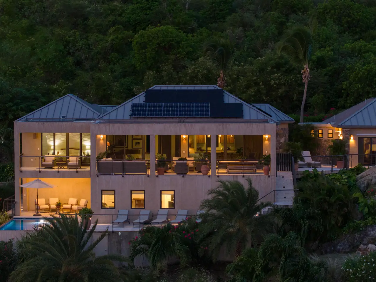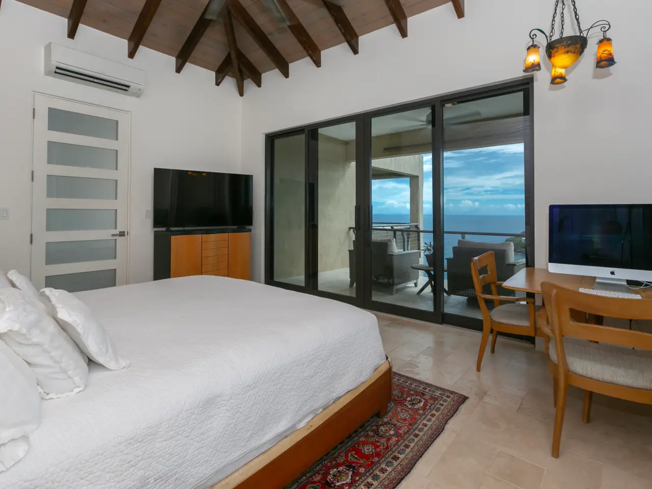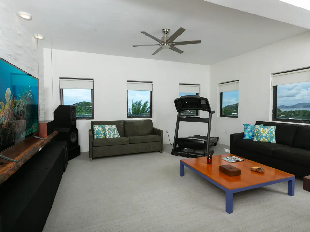 Blue View Villa, a stunning new property built in 2019, exuding a classic soft modern Caribbean style. This exceptional home is perched on a spacious plot, offering panoramic views from sunrise over the serene Ram's Head to sunset over the majestic St. Thomas. With three oversized bedrooms and en-suite bathrooms, each designed with ample space and the flexibility to convert to a 4 bedroom villa. Blue View Villa caters to both comfort and functionality, equipped with solar panels and Tesla Batteries. Located just minutes from Cruz Bay and with private neighborhood beach access within walking distance. Blue View Villa is ideally set up to operate as a vacation rental, though it is tempting to move right in!