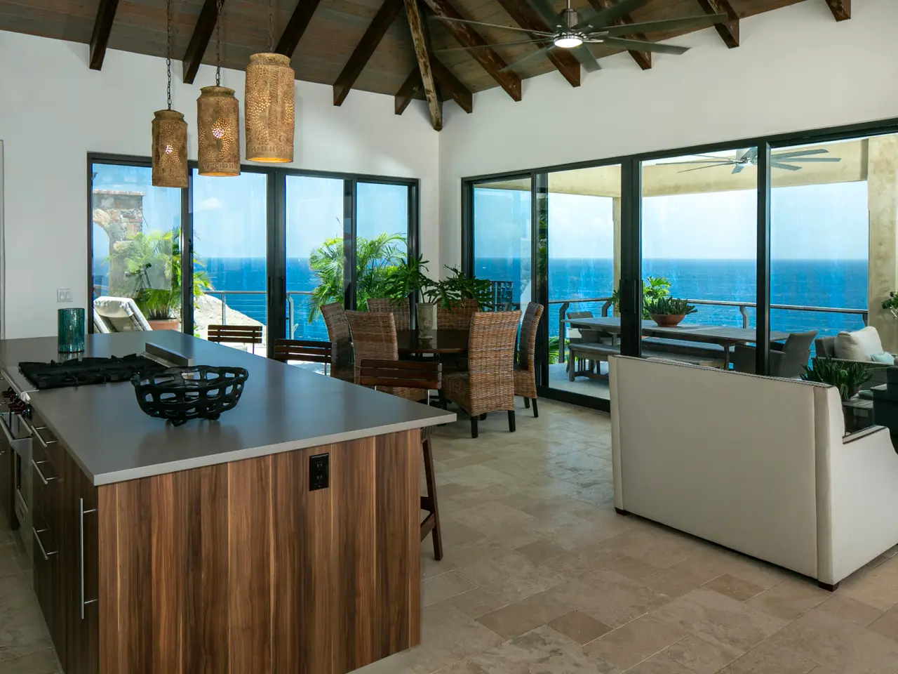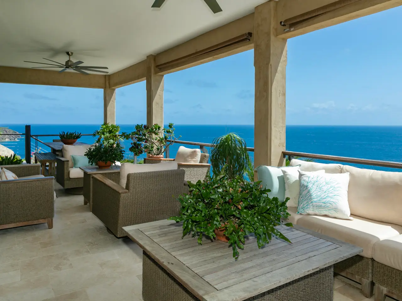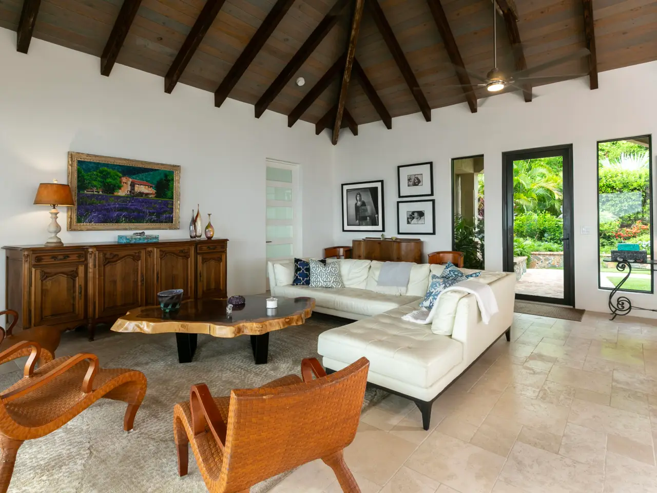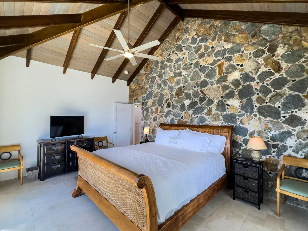 Blue View Villa, a stunning new property built in 2019, exuding a classic soft modern Caribbean style. This exceptional home is perched on a spacious plot, offering panoramic views from sunrise over the serene Ram's Head to sunset over the majestic St. Thomas. With three oversized bedrooms and en-suite bathrooms, each designed with ample space and the flexibility to convert to a 4 bedroom villa. Blue View Villa caters to both comfort and functionality, equipped with solar panels and Tesla Batteries. Located just minutes from Cruz Bay and with private neighborhood beach access within walking distance. Blue View Villa is ideally set up to operate as a vacation rental, though it is tempting to move right in!