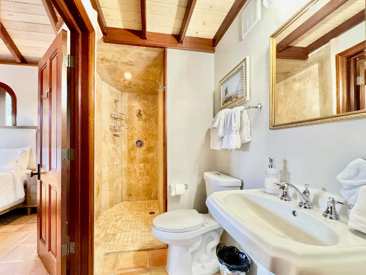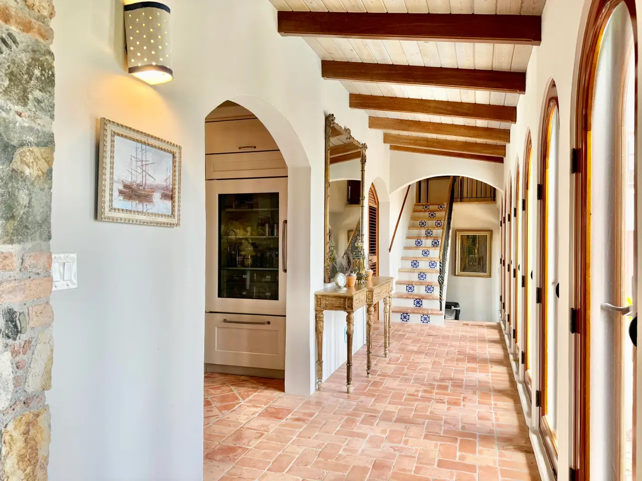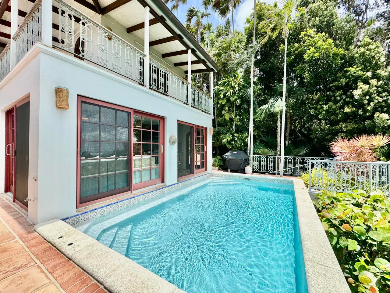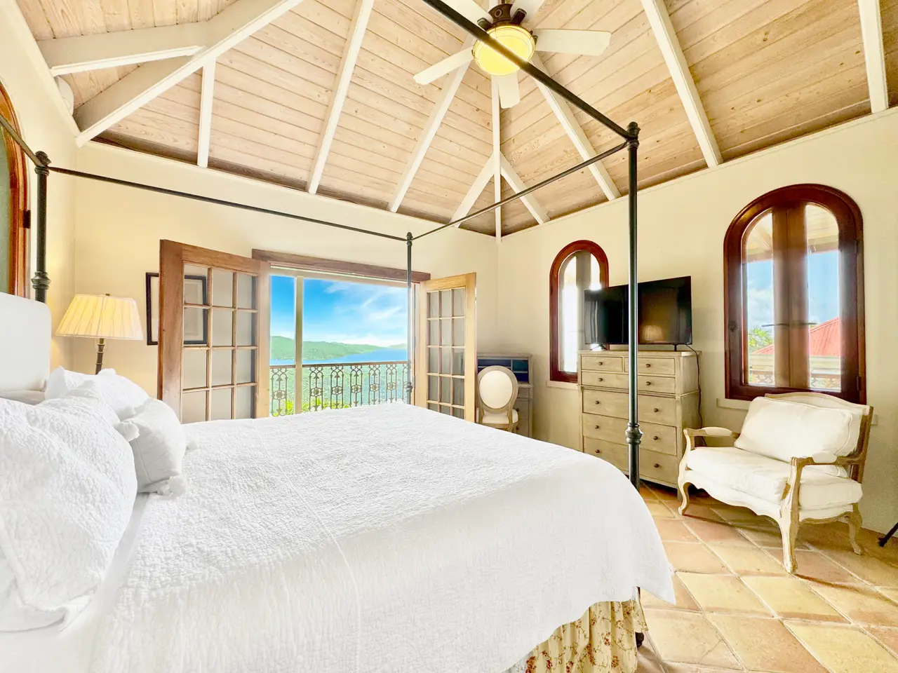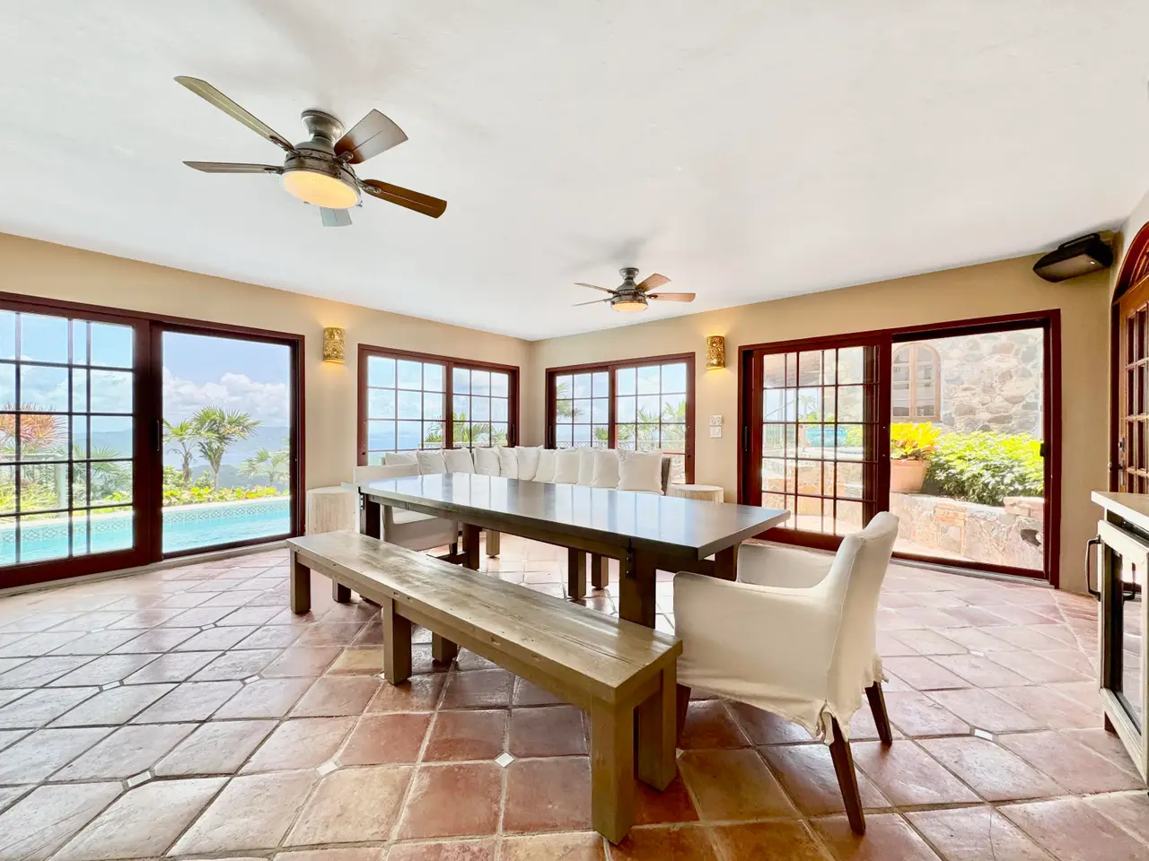 Prepare to be 'wow'ed by this magnificent Bordeaux Mountain villa. This expansive property encompasses a solid masonry home offering three bedrooms and three en suite bathrooms, and a three bedroom, two bathroom cottage. Perfect for large families, this home boasts a fully remodeled kitchen with top of the line stainless steel appliances, a jacuzzi, swimming pool, and a pool entertainment room. The stone work throughout the home is a work of art. The property's serene location offers beautiful views of Coral Bay and down island, while facing east to capture the cooling trade winds. This gated compound features two separate structures, ample parking, and is only seven minutes from Maho Bay, the North Shore Beaches, and the Virgin Islands National Park. Make this villa an investment property or family home!