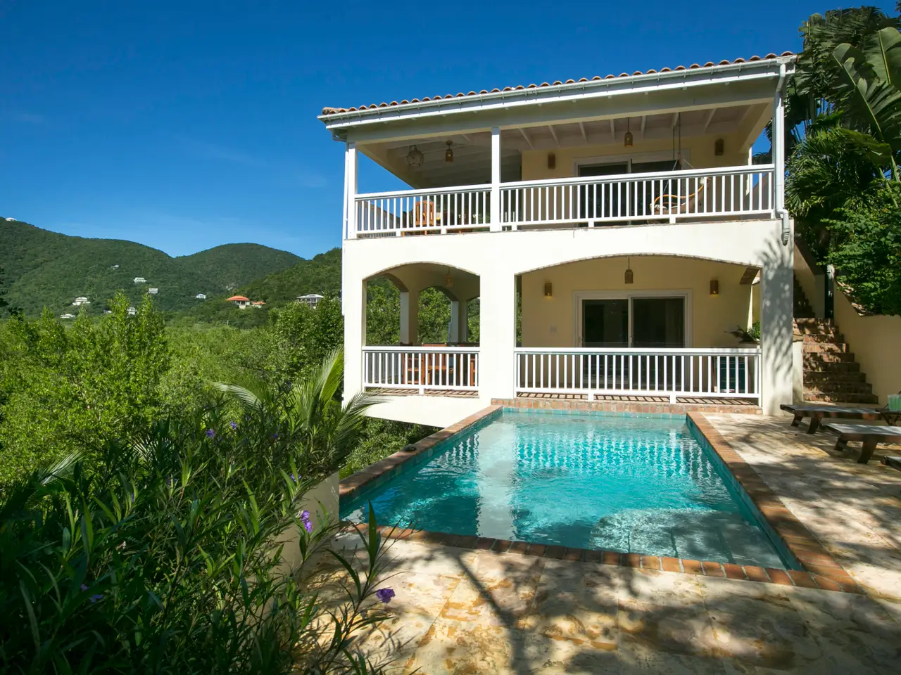 Villa Satori is a two bedroom Mediterranean style pool villa in a very private section of Fish Bay. Dine al fresco on the large covered porch, sun and swim in the pool off the lower terrace or enjoy sunset cocktails on the rooftop terrace. Two private guest suites are situated on the lower level. Upper great room and kitchen houses a 3rd full bath allowing for added guests if needed.