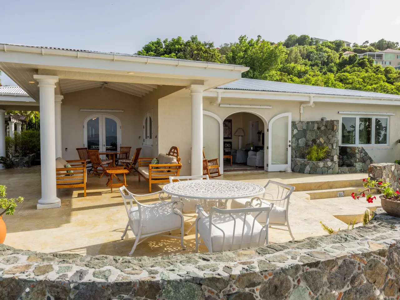 Rare opportunity to own an ultra-private, gated and secure compound situated in over two acres of the prestigious Catherineberg neighborhood. Bordering St. John's National Parkland and perched over 700 ft. above sea level, this exclusive estate offers fall-away views of the famed north shore beaches, the BVI's and beyond. Level entry through tropical gardens to sparkling pool, lawn with hot-tub gardens and sprawling terraces that highlight the sweeping vistas allowing for effortless indoor-outdoor living. An entertainer's dream. A half a mile of meandering stone walkways invites tranquil strolls through the terraced grounds of fruit trees. The sky is truly the limit for customizing this unique property into your ideal island escape.An extraordinary opportunity awaits to own an ultra-private, gated, and secure compound sprawled across over two acres of fenced property in the prestigious Catherineberg neighborhood. Nestled along the border of St. John's National Parkland and perched over 700 feet above sea level, this exclusive estate offers breathtaking fall-away views of the renowned north shore beaches, the British Virgin Islands, and beyond.