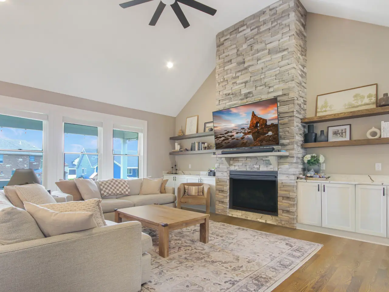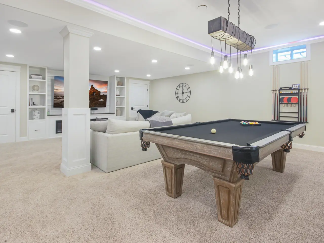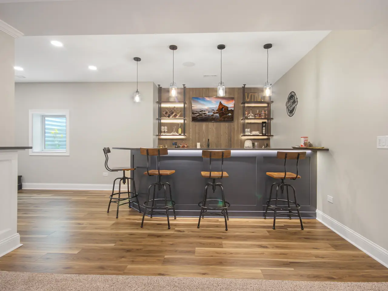 Welcome to Luxury Living in The Preserves of St. John! Discover this nearly 4,800 sq ft ranch in the desirable Preserves of St. John subdivision. Boasting an upgraded framing/thermal package, this home features 4 beds, 4 baths, and a finished 3-car garage with 2 additional storage areas. The fully finished basement offers ample entertainment, living, and storage space, along with a large custom bar area! Enjoy white oak floors throughout the main level, a 14 ft vaulted ceiling, quartz counters/island, and stainless appliances. The dining area leads to your extended covered back porch, perfect for outdoor relaxation. House is upgraded with a whole house generator, tankless water heater, and the list of upgraded features goes on. Don't miss out on this better-than-new, custom ranch!