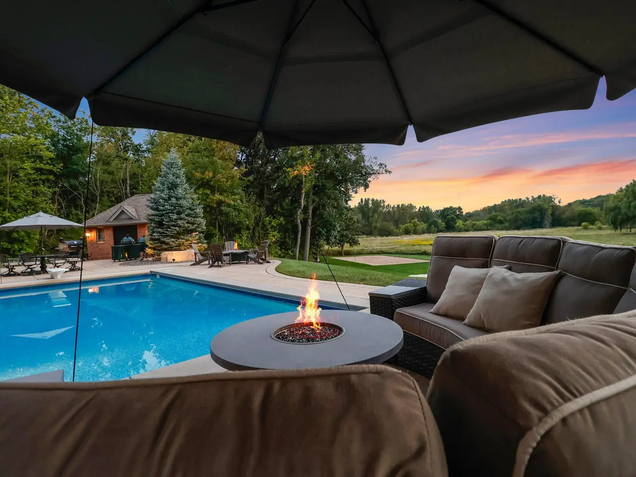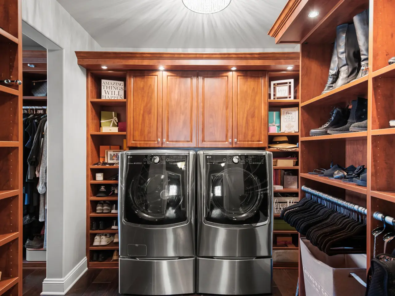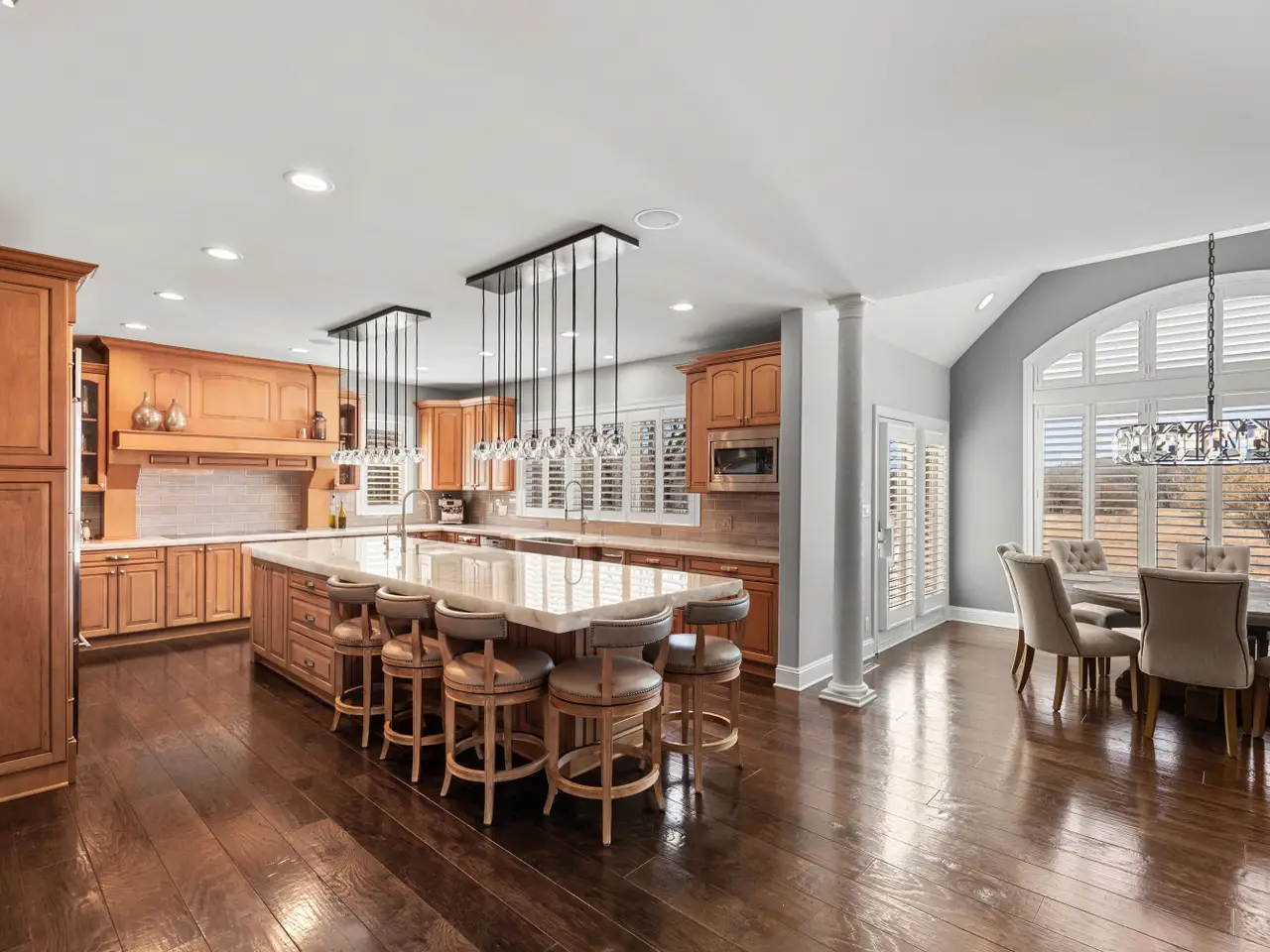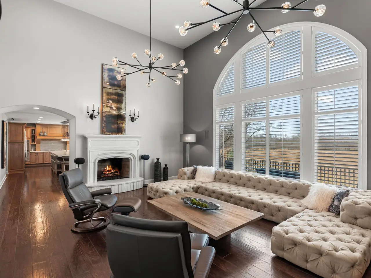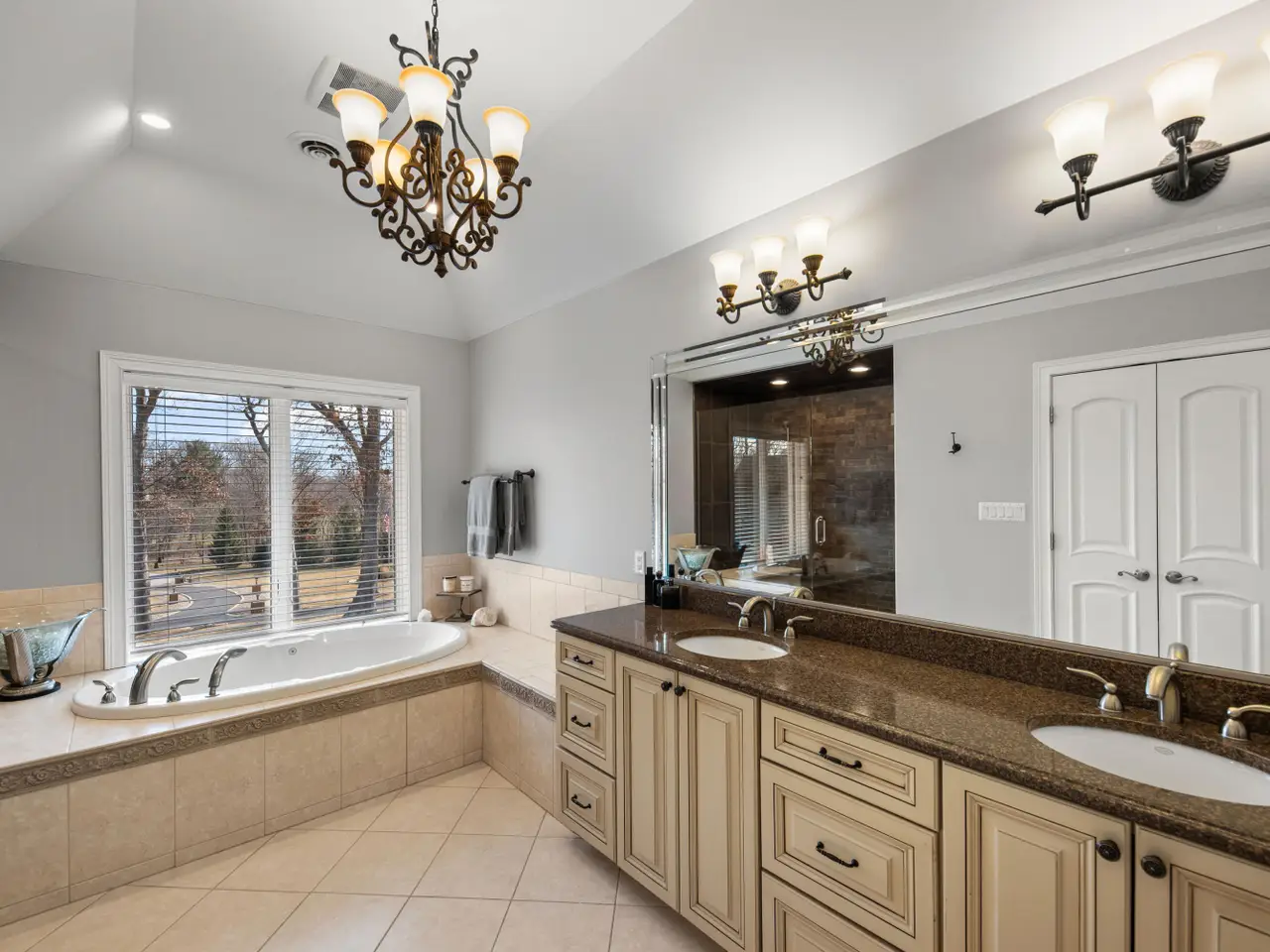 Welcome to this extraordinary estate where timeless luxury meets everyday comfort nestled on a private court in the prestigious Rosewood Estates community on 2.6 park-like acres. A gated circular drive leads you to an awe-inspiring entry setting the tone for the timeless elegance that follows. This custom-designed home boasts 6 spacious bedrooms and 7 bathrooms, each crafted for privacy and relaxation. The main living area is nothing short of breathtaking, with soaring vaulted ceilings, rich Restoration Hardware light fixtures, and the first of two stunning fireplaces that create a warm, welcoming ambiance. The show-stopping dining room flows effortlessly through a butler's pantry into the chef's kitchen, with an enormous center island, custom cabinetry, quartzite counters, walk-in pantry, while the wide-plank hickory wood flooring commands attention, the breakfast room allows access to the balcony or deck with built-in Wolf grill. The massive main level laundry room includes one of the 3 washers and 3 dryers. The main level primary suite is a serene retreat with his and her closets including the 2nd washer and dryer along with a luxury bath, and its own sitting room offering peaceful views of the grounds with balcony access perfect for morning coffee or quiet moments. Upstairs, a 2nd primary suite, 3 enormous bedrooms and a massive bonus room providing flexible space for a home office, playroom, studio, or guest suite. The finished walkout basement is an entertainer's dream, featuring a full wet bar, with a gorgeous backlit gathering island, dishwasher, beverage refrigerators, billiards room, workout room with 3rd laundry facility, a light filled office & even a 3rd primary suite. Step outside to enjoy a tranquil in-ground pool, pool house, sand volleyball court overlooking the 11 acre community preserve. Parking is a breeze in the spectacular heated 5.5 car garage. Top-rated schools, shopping, dining, & minutes from the Illinois border allowing an easy commute.