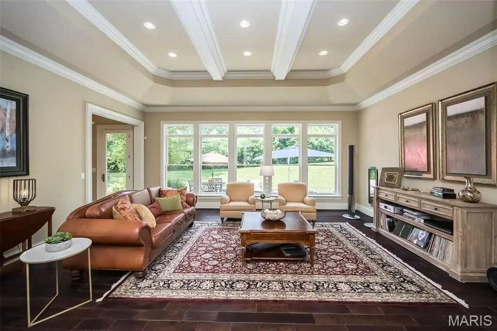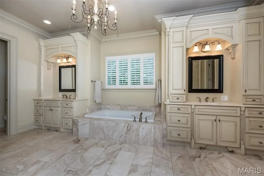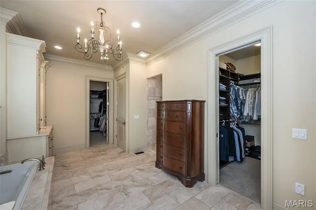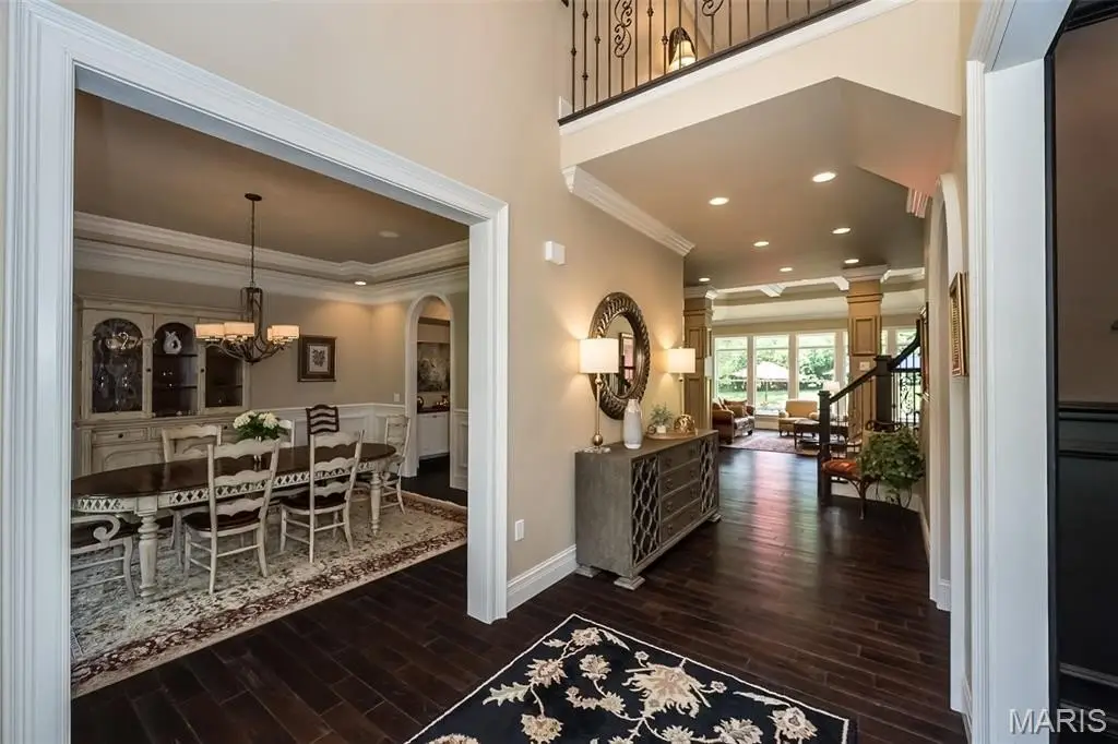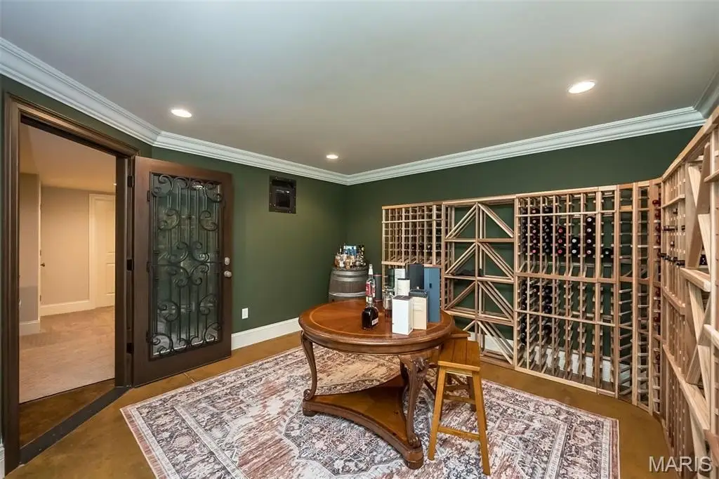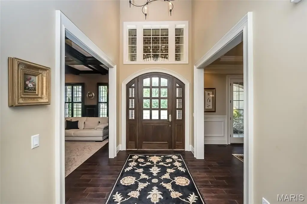 Casual elegance best describes this 5 bedroom, 4 full 2 half bath home nestled on a picturesque 1+-acre lot in the heart of Frontenac. With over 7,200 sq feet of luxurious living space, this stunning home seamlessly combines formal and informal spaces in a sophisticated, thoughtful floorplan. Soaring ceilings, classic millwork and gleaming hardwood flooring extend throughout the main level, with gorgeous architectural details everywhere you look. The paneled office features a coffered ceiling, while an impressive great room overlooks the patio and lush backyard. The open floorplan kitchen, breakfast room and family/hearth room are highlighted by a natural stone fireplace, creating the perfect setting for family and any guest occasion. The main level primary bedroom suite is a true retreat, with tray ceiling, walk-in closets and a spa-like bathroom, complete with bubble tub and large walk-in shower. Upstairs, a family room/loft area and three additional bedrooms (one is ensuite) are spacious and welcoming. The jaw-dropping lower level has been newly refreshed and includes a custom wet bar, temperature-controlled wine room, workout space, rec room/media room and a comfortable bedroom suite. The lovely lot could easily accommodate a pool, if desired. With its impressive 4-car garage and ideal location near shops and Ladue Schools, this is truly an estate not to be missed!