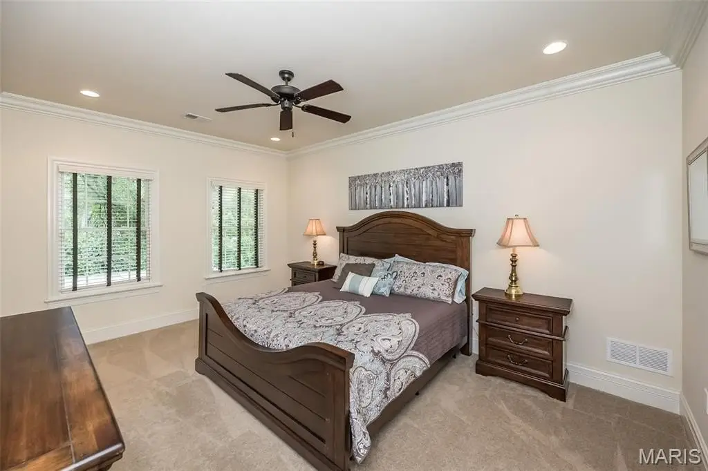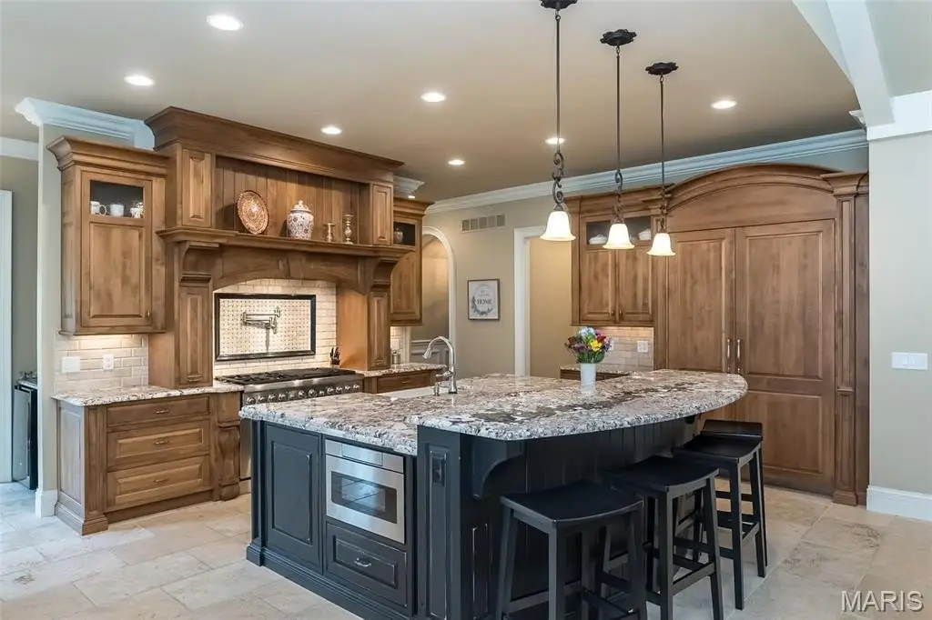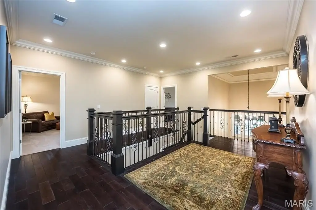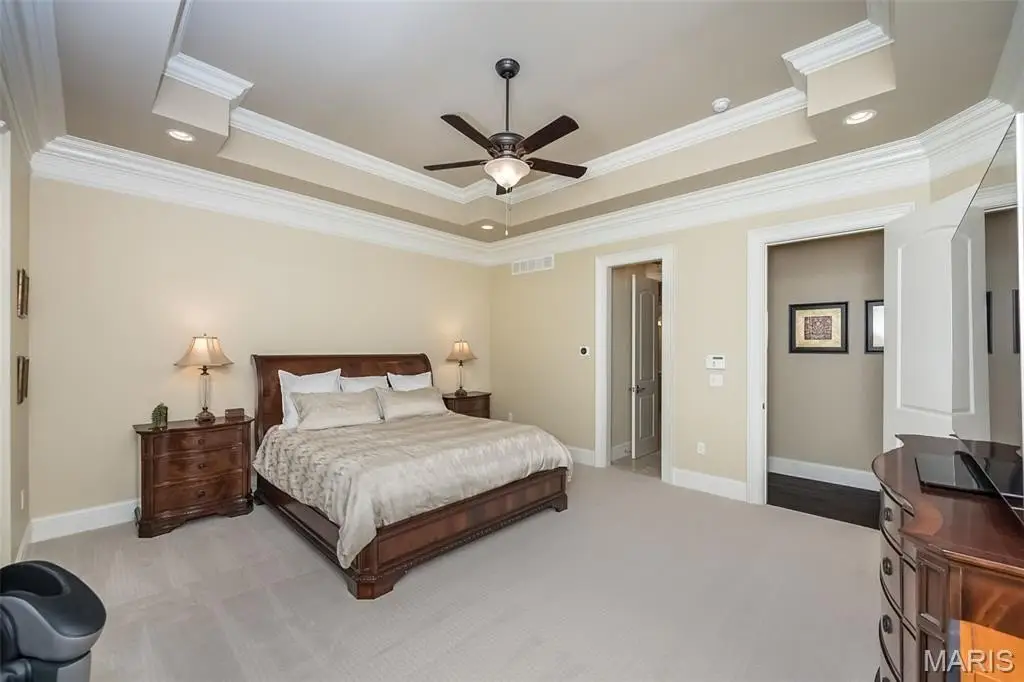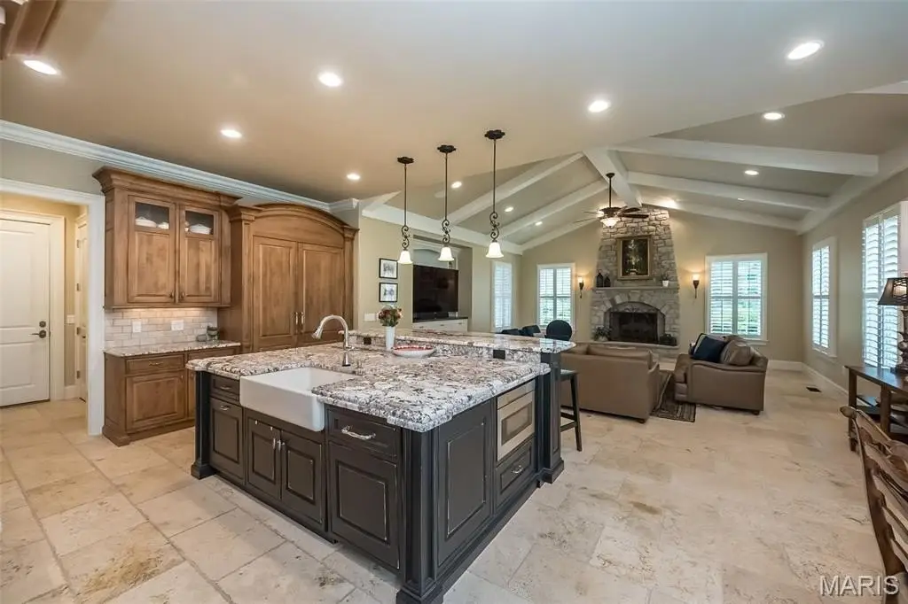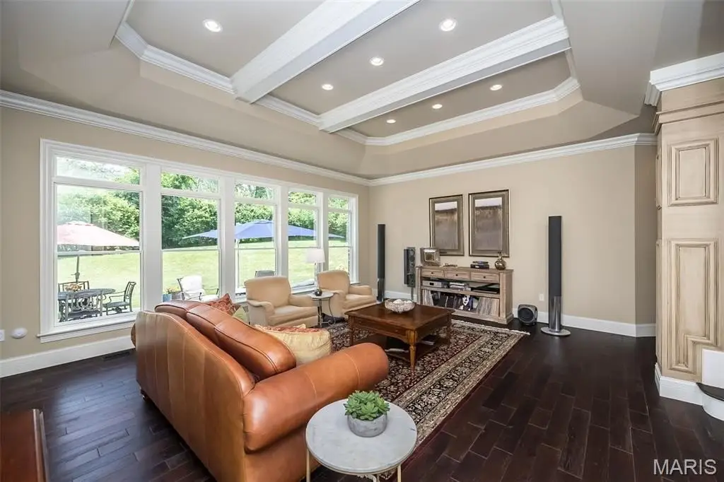 Casual elegance best describes this 5 bedroom, 4 full 2 half bath home nestled on a picturesque 1+-acre lot in the heart of Frontenac. With over 7,200 sq feet of luxurious living space, this stunning home seamlessly combines formal and informal spaces in a sophisticated, thoughtful floorplan. Soaring ceilings, classic millwork and gleaming hardwood flooring extend throughout the main level, with gorgeous architectural details everywhere you look. The paneled office features a coffered ceiling, while an impressive great room overlooks the patio and lush backyard. The open floorplan kitchen, breakfast room and family/hearth room are highlighted by a natural stone fireplace, creating the perfect setting for family and any guest occasion. The main level primary bedroom suite is a true retreat, with tray ceiling, walk-in closets and a spa-like bathroom, complete with bubble tub and large walk-in shower. Upstairs, a family room/loft area and three additional bedrooms (one is ensuite) are spacious and welcoming. The jaw-dropping lower level has been newly refreshed and includes a custom wet bar, temperature-controlled wine room, workout space, rec room/media room and a comfortable bedroom suite. The lovely lot could easily accommodate a pool, if desired. With its impressive 4-car garage and ideal location near shops and Ladue Schools, this is truly an estate not to be missed!