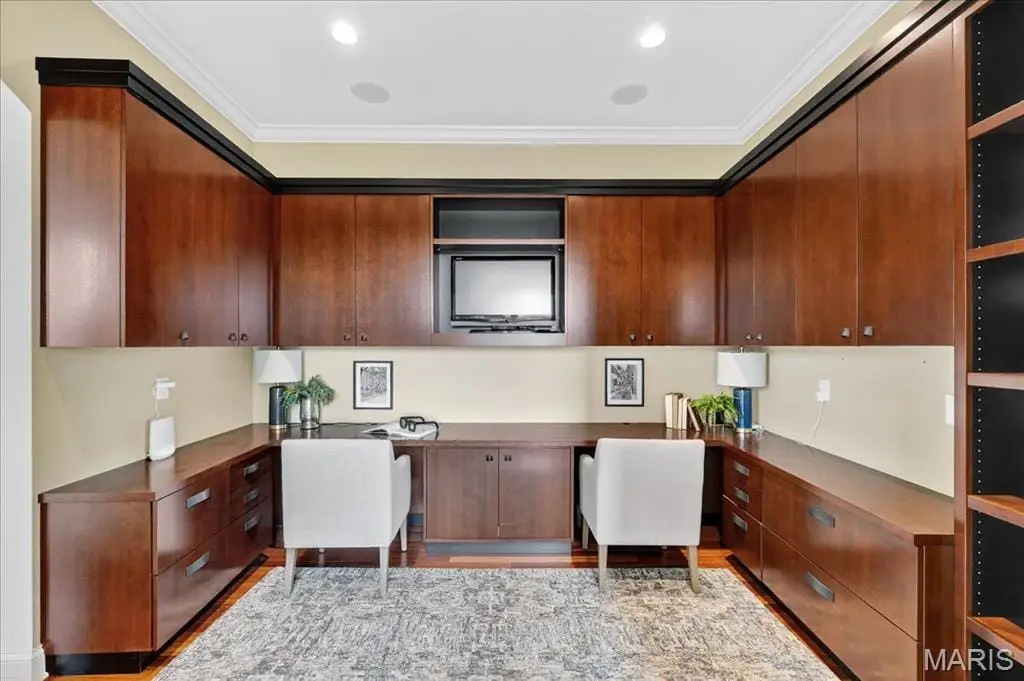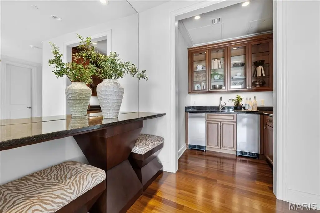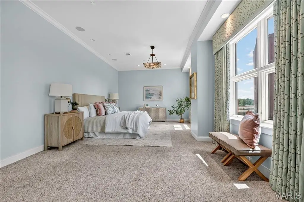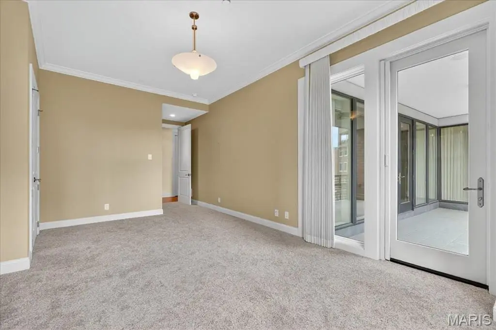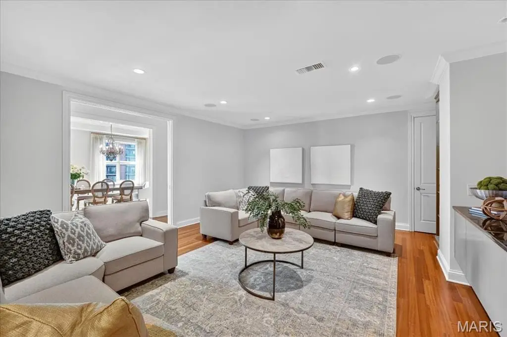 A rare opportunity to own a stunning 4-bed condo in the exclusive The Crescent, located in the heart of downtown Clayton. This 6th-fl residence offers sweeping views of Clayton and the St Louis skyline from 2 inset balconies. An expansive open floor plan with 9-10 foot ceilings, floor-to-ceiling windows, and high-end finishes throughout. Rich wood floors, custom built-ins, and gas fireplace create an inviting ambiance. The gourmet eat-in kitchen with Wolf and SubZero appliances flows into the spacious dining and family rooms, perfect for entertaining. The luxurious primary suite features 2 custom closets, remote operated shades, and a spa-like bath. 3 additional beds with ensuite baths provide ultimate comfort and privacy. Addtl. highlights include an office, sitting rm, 2 laundry rms, and 4 parking spaces. Enjoy world-class amenities such as a fitness center, concierge, dog park, secure heated garage, 24-hour doorman, valet, onsite manager, moments from fine dining and shopping. Location: Interior Unit