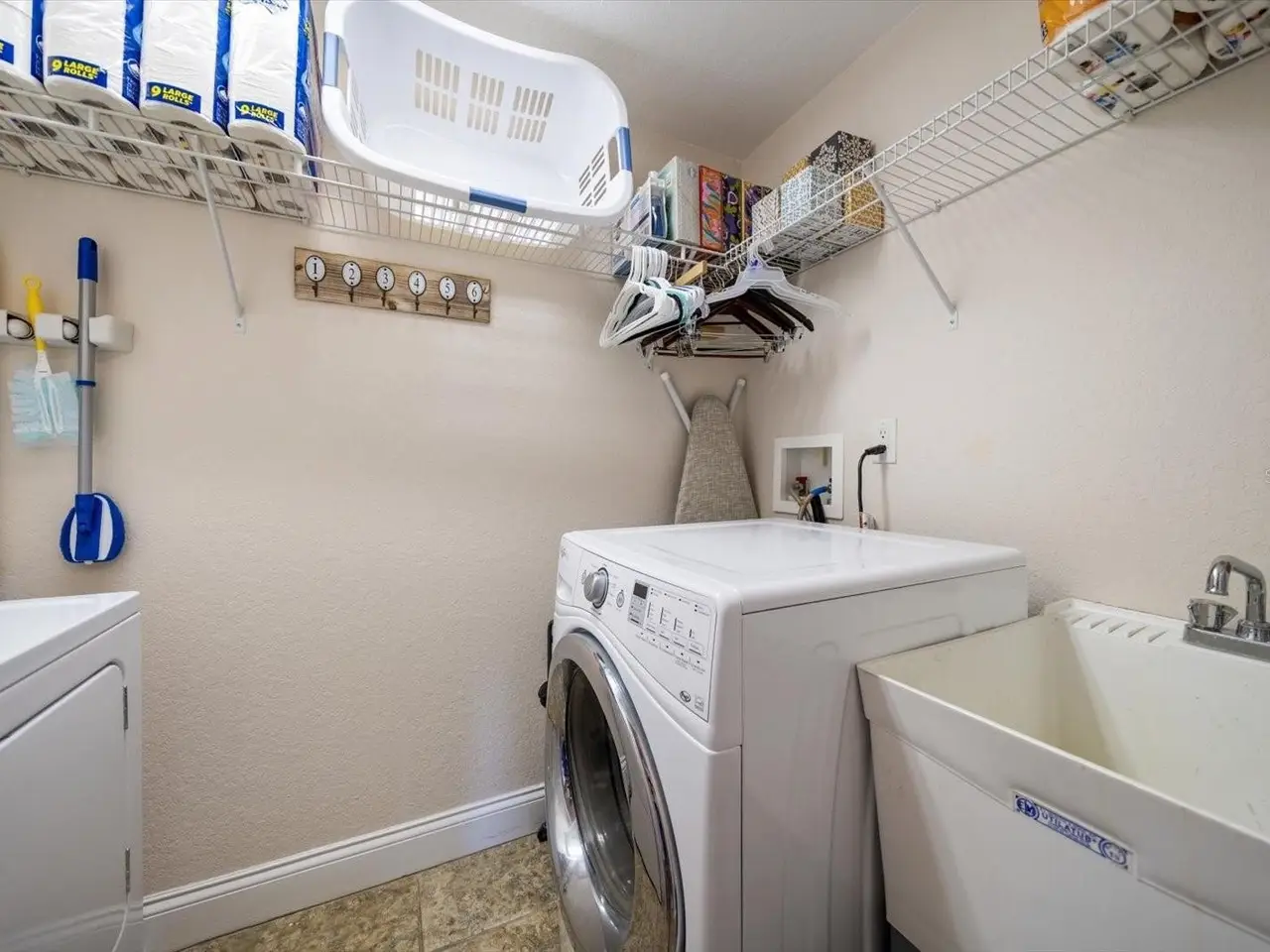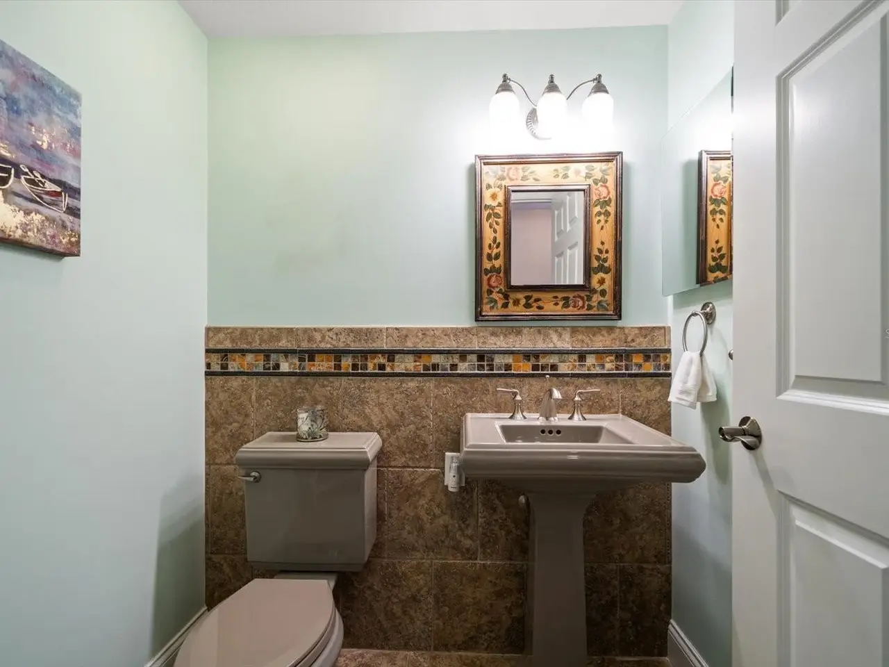 Travertine and wood flooring