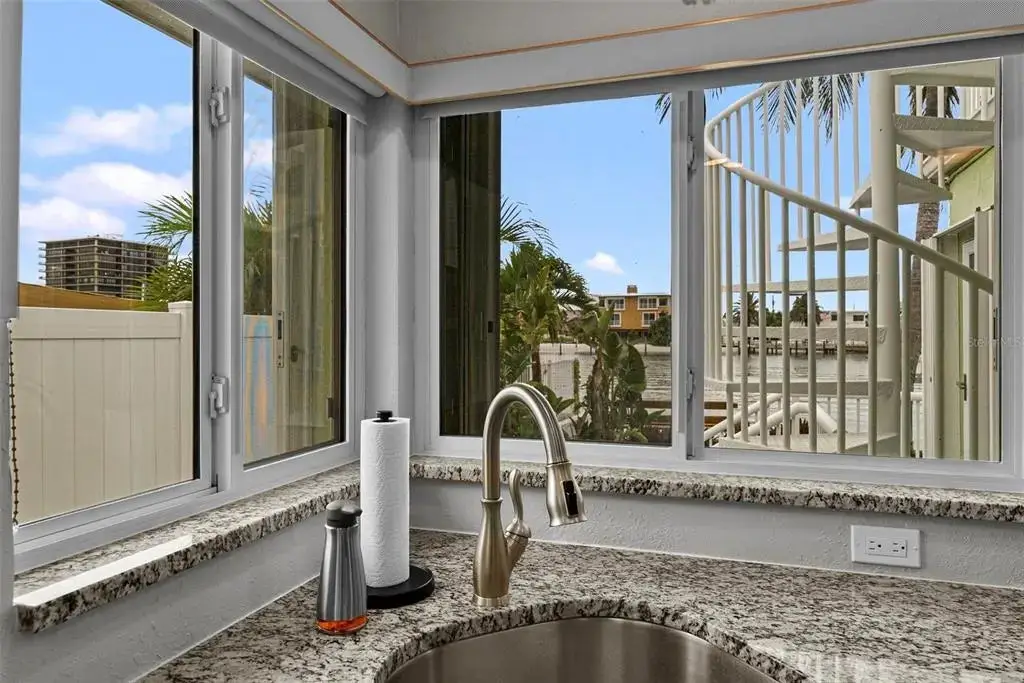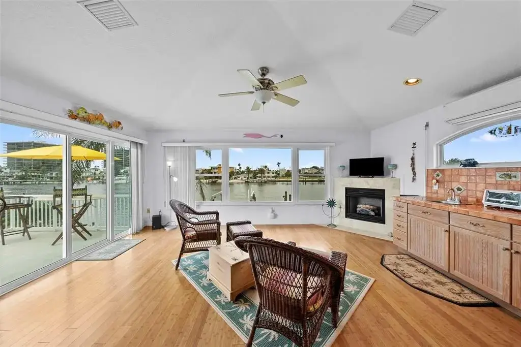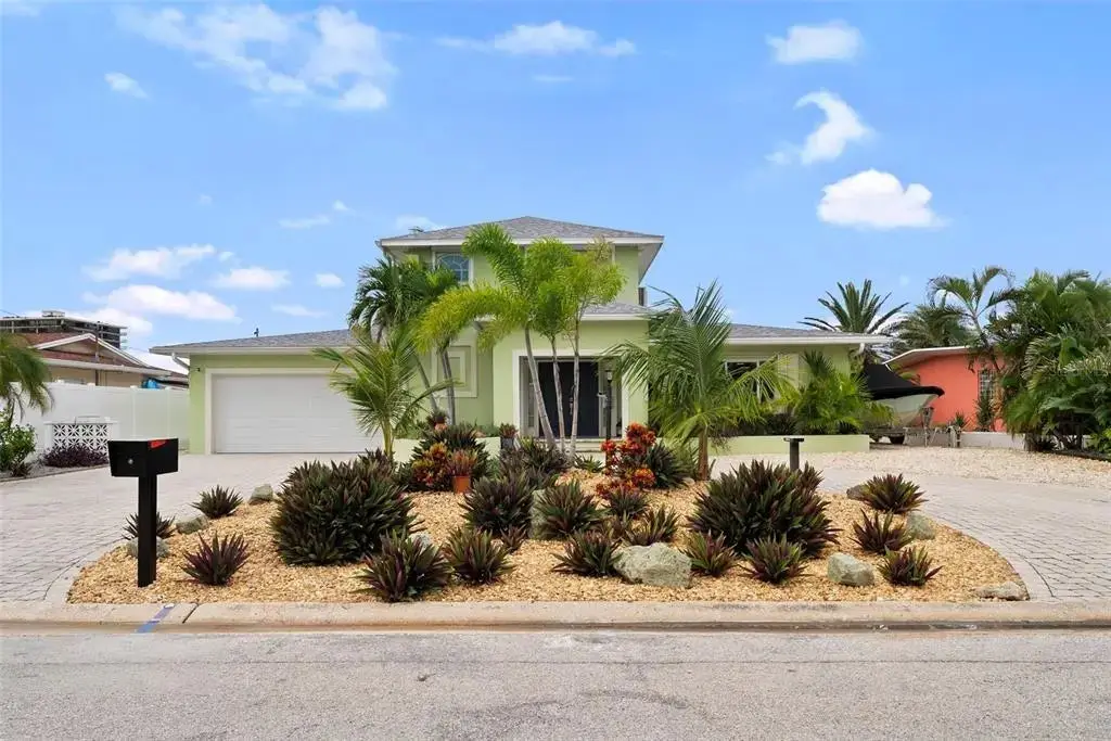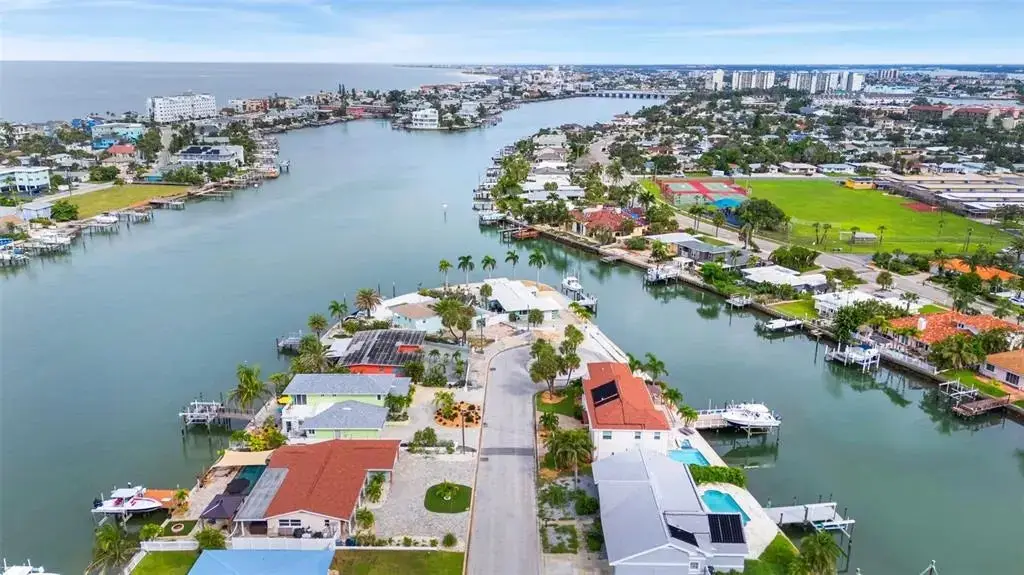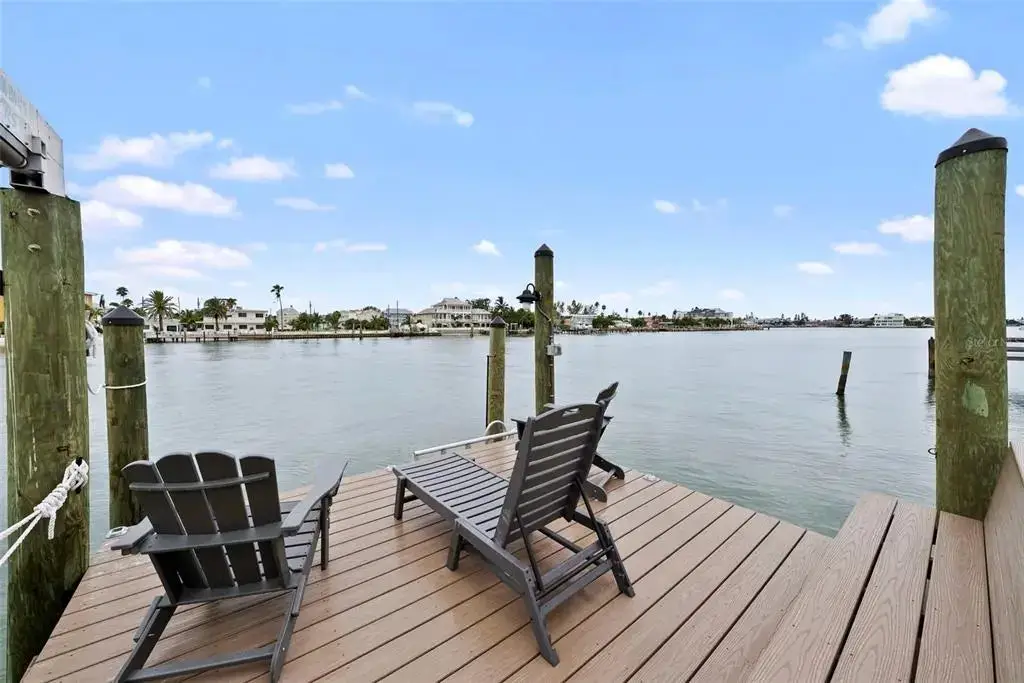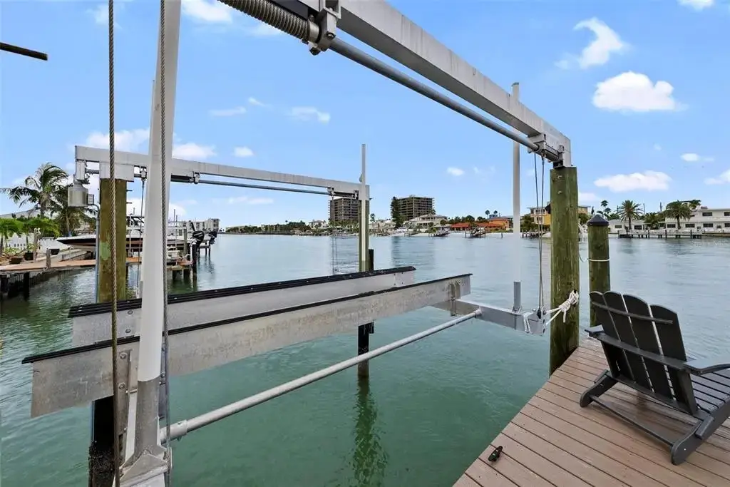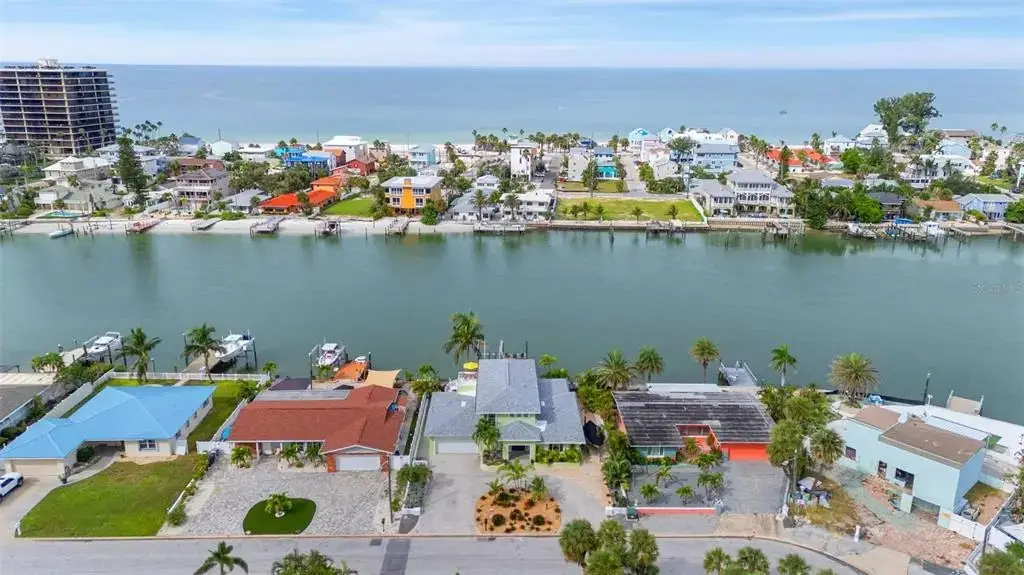 Waterfront home on sailboat water with no bridges to the Gulf of Mexico, located in desirable St. Pete Beach. This well-maintained residence features a 2023 elevated dock and 10,000 lb remote-controlled boat lift with electric and water, offering direct access to open water within minutes. The interior offers an open-concept layout filled with natural light. The updated kitchen with new appliances connects to spacious dining and living areas. The first floor includes a primary en suite bedroom and a second bedroom. The second-floor addition (2000) provides an additional en suite bedroom, office, and bonus room with water views and access to a private balcony. Additional features include newer windows, and hurricane shutters for all openings. Outdoor amenities include a circular paved driveway, xeriscaped yard, enclosed lanai, backyard fire pit, wine garden, and a side yard suitable for boat or golf cart storage. The property is located at the entrance of a cul-de-sac for added privacy. No HOA. Enjoy the ultimate Florida lifestyle just minutes from the white, sandy beaches, dining, and shopping. Move-in ready and built for peace of mind—schedule your private showing today!
