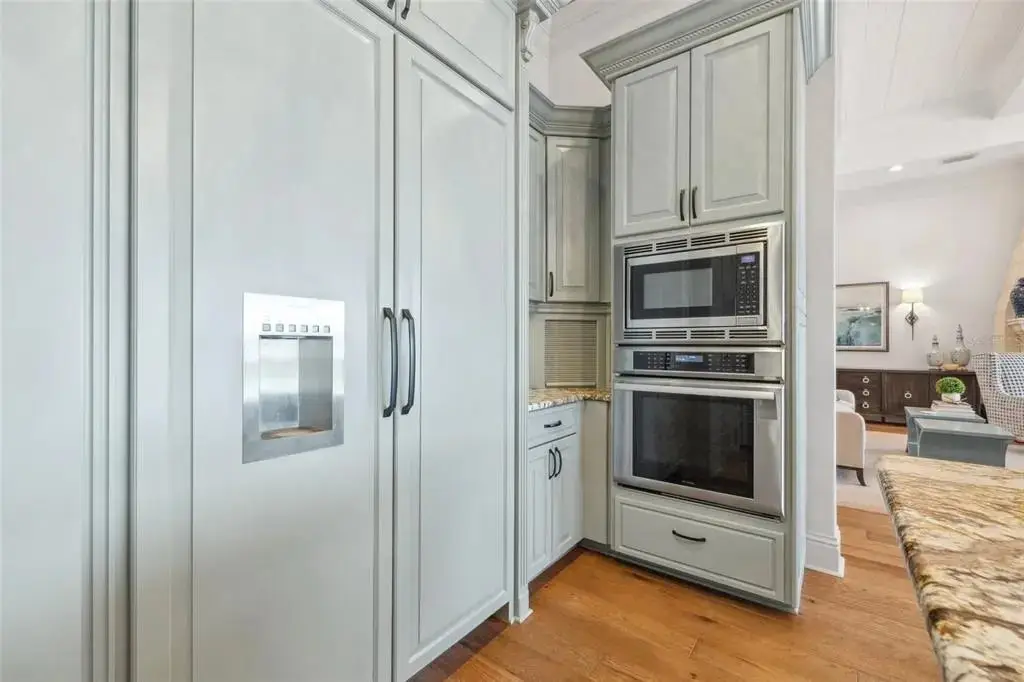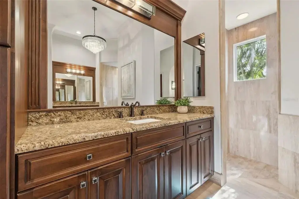 Experience coastal elegance and luxury living at its finest at 301 Bayview Drive NE, nestled on the shores of Smacks Bayou in the exclusive Snell Isle neighborhood of St. Petersburg. Elevation is 9.8 and sustained NO WATER INTRUSION in recent storms. Built by Andrew Vecchio in 2015, this exceptional waterfront residence offers superior craftsmanship, timeless finishes, and a flexible floor plan designed for modern Florida living. Enjoy sweeping water views the moment you step inside. Soaring 10–12 ft ceilings throughout the home create an airy, open atmosphere, enhanced by gorgeous engineered hardwood flooring, custom designer lighting, and upscale finishes. The main living space is anchored by a stunning gas fireplace and filled with natural light from oversized windows and glass doors. The chef’s kitchen is a showstopper—featuring top-of-the-line Thermador appliances, a gas cooktop, pot filler, wine refrigerator, pantry, stone countertops, and an oversized island with bar seating—perfect for gathering and entertaining. Enjoy your private waterfront oasis with a heated saltwater pool, spa, covered lanai, outdoor kitchen, and private dock. Whether you're hosting sunset dinners or launching paddleboards from your backyard, this home was built for the Florida lifestyle. The private primary suite is a serene retreat offering panoramic water views, dual walk-in closets, and a spa-inspired en suite bath with dual vanities, a freestanding Jacuzzi soaking tub, and a glass-enclosed walk-in shower. Each guest bedroom includes its own en suite bath, providing comfort and privacy for family and guests. A unique highlight of this home is the separate casita/in-law suite—attached yet completely private with its own entrance, walk-in closet, and full bath. It’s ideal for multi-generational living, a dedicated home office, home gym, or studio. Additional features include a spacious laundry room, 3-car garage with high ceilings for extra storage or lift installation, and a circular brick driveway that enhances curb appeal. Located minutes from vibrant downtown St. Pete, yet tucked away in a peaceful enclave, 301 Bayview Drive offers the best of both worlds—quiet luxury living with world-class dining, culture, and shopping just moments away.