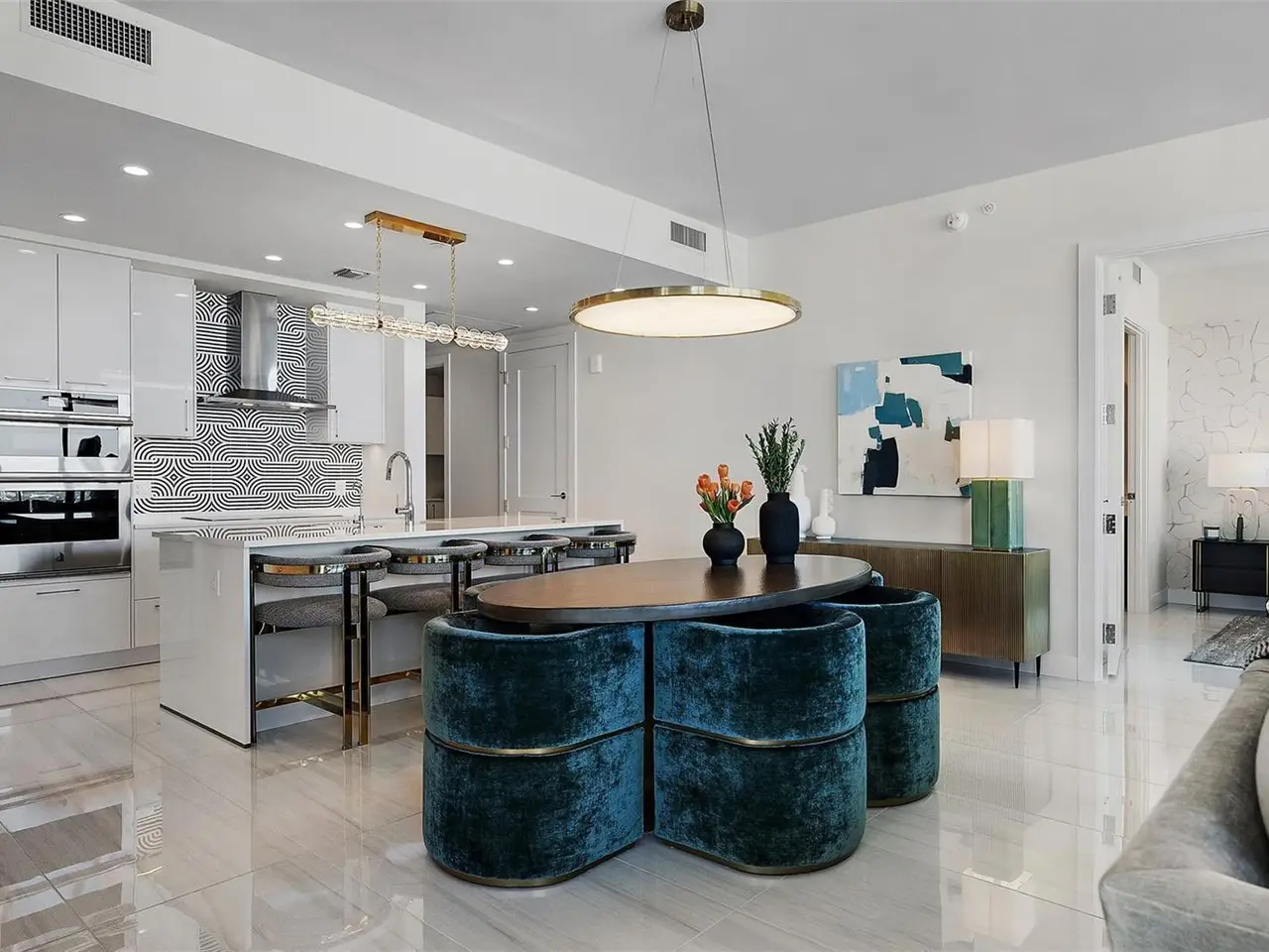 Step into a world of unparalleled luxury and refined design in this newly constructed two-bedroom plus den, two-and-a-half-bath condo at Saltaire. Offering an impressive 1,663 square feet of interior space and a nearly 200-square-foot balcony, this home is the perfect blend of elegance and modern sophistication. With sweeping south-facing views that span from Tampa Bay to the east and the Gulf to the west, you'll enjoy breathtaking vistas from sunrise to sunset. Curated by the acclaimed local design team at Bee Studio Design, this residence features custom finishes and the finest attention to detail. The gourmet kitchen is a chef's dream, complete with top-of-the-line appliances, sleek countertops, a custom backsplash, and a wine fridge paired with a stylish bar area for the ultimate entertaining experience. The designer lighting throughout the home enhances every space, casting a warm glow that complements the chic modern aesthetic. The spacious, airy layout flows seamlessly into the living and dining areas, perfect for both relaxation and entertaining. The versatile den offers endless possibilities, from a home office to a cozy reading nook or media room. Each of the spacious bedrooms is a private retreat, complete with generous walk-in closets and luxurious ensuite baths featuring the highest-quality finishes. The master suite is a sanctuary, offering direct access to the expansive balcony and stunning views of the bay. The convenient laundry room is designed for added practicality, making day-to-day living a breeze. This exceptional condo also includes two highly sought-after parking spaces and a climate-controlled storage unit for added convenience and peace of mind. Saltaire's resort-style amenities are second to none. Residents enjoy a stunning seventh-floor pool terrace with panoramic views, a state-of-the-art fitness center, elegant club rooms, and a dog park for your furry companions. With the added security and peace of mind of a builder's warranty, this home offers everything you need to live in absolute comfort and style. Perfectly situated in the heart of downtown St. Petersburg, you'll have immediate access to waterfront parks, upscale dining, high-end shopping, and the vibrant energy of city life. This is the elevated downtown lifestyle you've been waiting for!