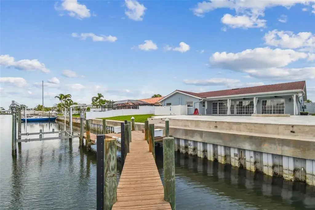 Welcome to your coastal dream retreat in the coveted Broadwater community—where thoughtful updates, modern comfort, and waterfront serenity come together effortlessly. This expansive 4-bedroom residence showcases a brand-new 90’ seawall, updated landscaping (2025), with ZERO water intrusion during last year's storms, offering the ultimate peace of mind for discerning buyers. Inside, the home exudes warmth and sophistication. Freshly painted interiors and new carpeting elevate the inviting ambiance, while custom electronic shades offer convenience at your fingertips. The central kitchen stuns with custom cabinetry, new stainless steel appliances, and luxe stone countertops, all anchored by a wraparound counter bar with mesmerizing views of the sparkling travertine pool and spa. From the formal living and dining rooms to the cozy family room and sunlit den—with panoramic canal views—this home was made for both tranquil moments and lively gatherings. Step outdoors to your own tropical oasis, featuring freshly sealed pavers, a heated pool, 10,000 lb boat lift, and direct access to Boca Ciega Bay, the Gulf of Mexico, and beyond. Evenings come alive with LED pool and hardscape lighting, and marine life flourishes beneath underwater dock lights—adding magic to every sunset. The oversized owner’s suite is a sanctuary with poolside access, a sitting area, and a dedicated split AC unit. Additional highlights include a two-car garage with epoxy floors and built-in cabinetry, a full alarm and camera system, and exceptional storage throughout. With I-275 close by, downtown St. Pete and award-winning beaches are just minutes away. This is more than a home—it’s an invitation to live the Florida waterfront lifestyle at its finest.