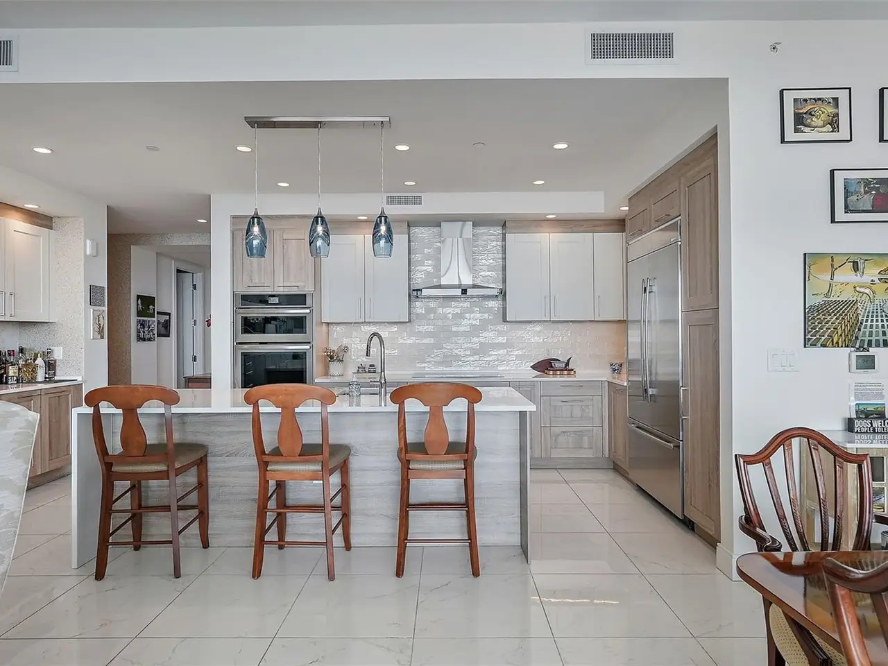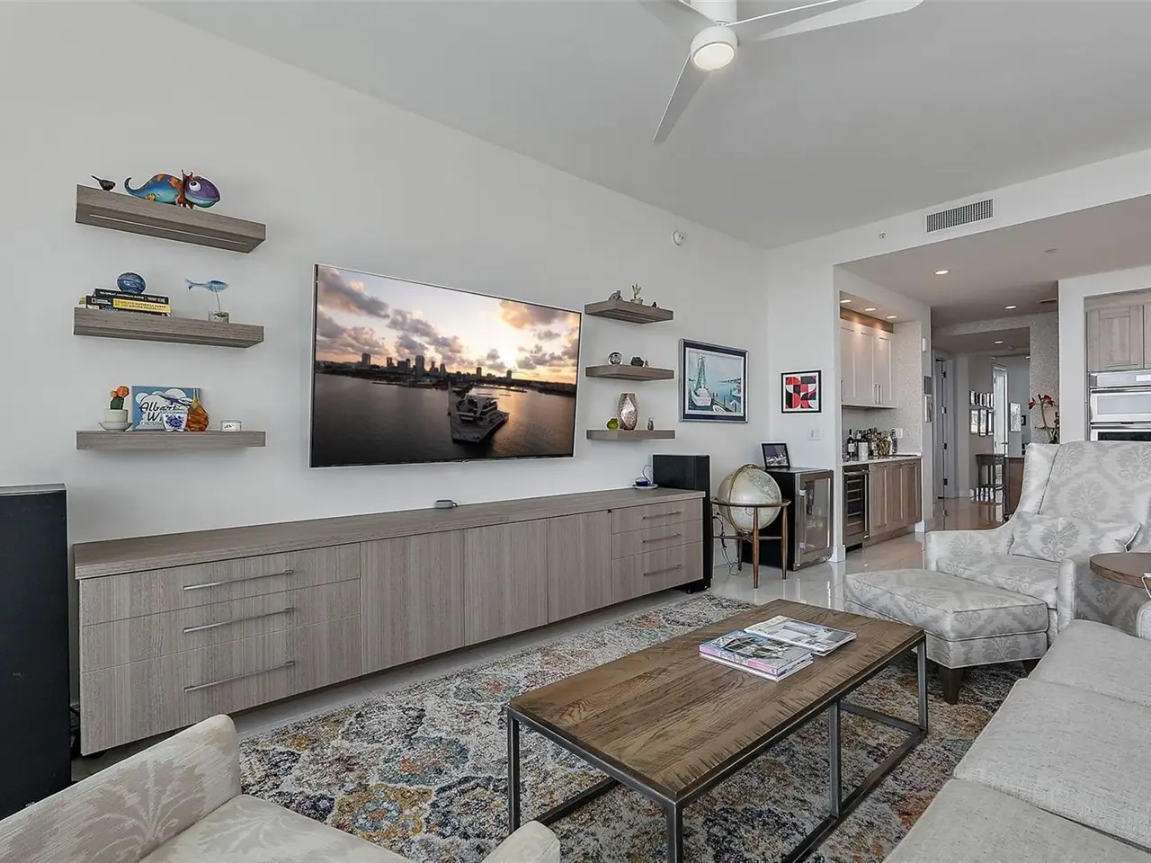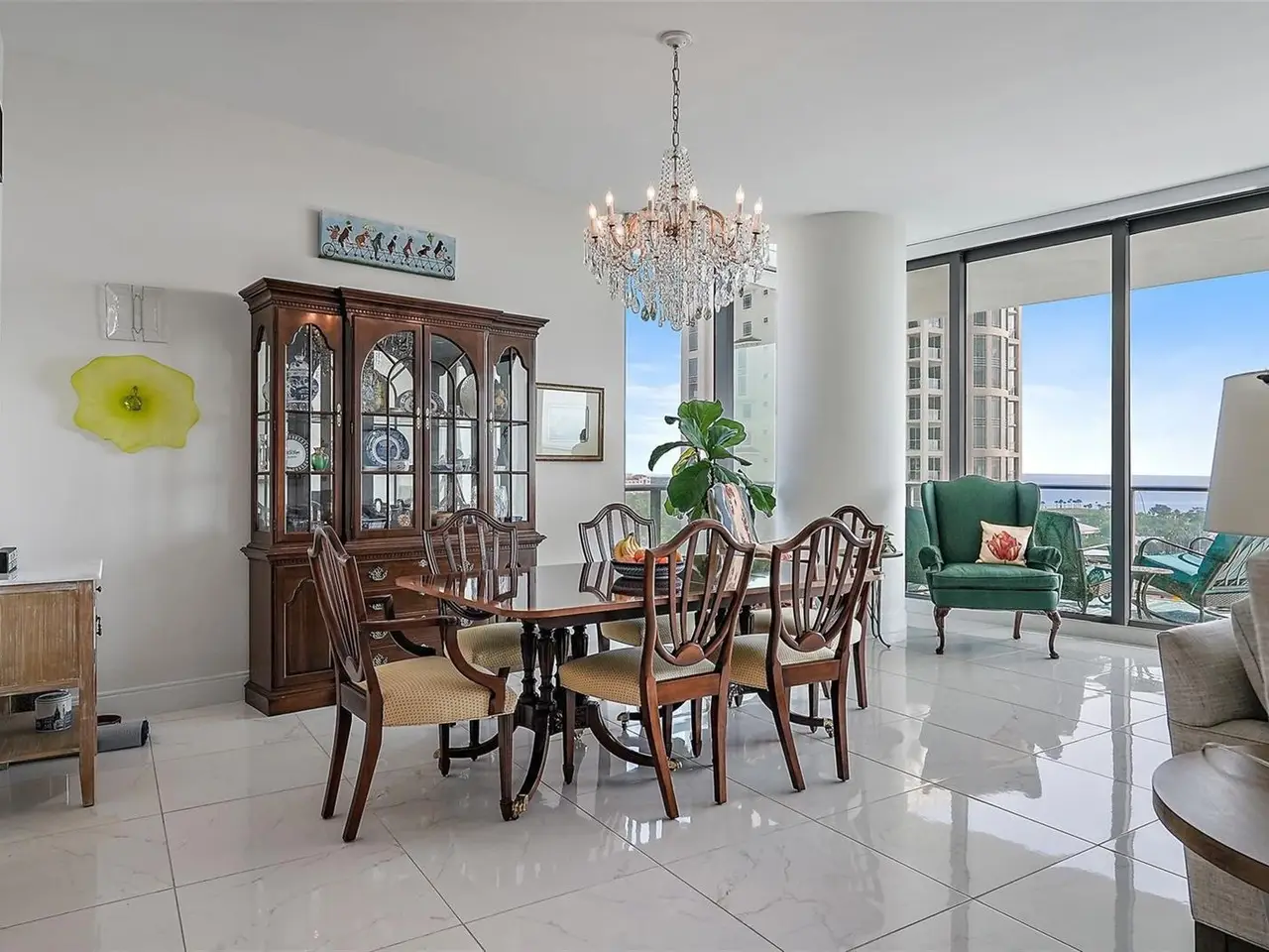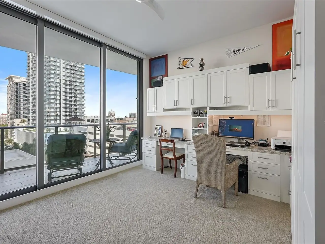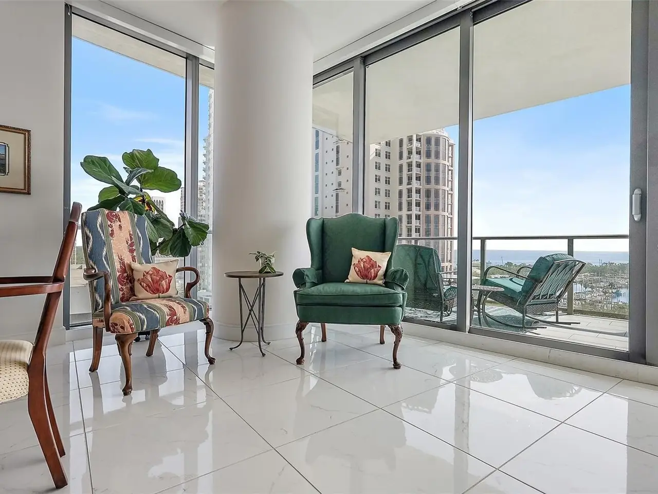 Exquisite Living with Stunning Water views at ONE St. Petersburg Step into a world of unparalleled elegance and modern luxury with this stunning 3-bedroom + den, 3.5-bath corner condo at ONE St. Petersburg, one of the city's most sought-after addresses. Spanning an expansive 2,475 square feet, this one-of-a-kind residence offers one of the largest floor plans available in the building, delivering the perfect combination of space, style, and breathtaking views. From the moment you enter, you'll be captivated by the seamless flow of the open-concept living spaces, enhanced by upgraded electrical receptacles and 24x24 porcelain tile throughout. The chef-inspired kitchen is a true masterpiece, featuring roll-out pantry shelves, sleek stainless steel appliances, a lazy Susan corner cabinetry for easy access, and a custom backsplash. The center island creates an ideal space for gathering and entertaining, while the separate bar area with additional cabinet space and built-in wine fridge elevates the home's sophistication. Throughout the living areas, custom built-ins and floating shelves add a touch of refinement, offering practical yet stylish storage solutions. All windows are equipped with electric blinds, and the master suite features blackout shades for ultimate privacy and comfort. With three private terraces, you'll find the perfect outdoor retreat at every turn. Enjoy direct east-facing views of the tranquil waters from the main living area, soak in stunning west-facing city views from the guest suite and den, or unwind in the master suite, which boasts a private terrace with panoramic vistas of Tampa Bay, the new St. Pete Pier, and the marina. This luxurious condo is not only beautifully designed but also comes with two parking spaces and a climate-controlled storage unit, ensuring your convenience and comfort. As a resident of ONE St. Petersburg, you'll have access to an array of world-class amenities, including a 40,000-square-foot amenities deck featuring a 75-foot lap pool, cabanas, a luxurious spa, outdoor kitchens, fire pits, and abundant seating areas perfect for both relaxation and socializing. Inside, enjoy a state-of-the-art fitness center, a yoga studio, and exceptional social spaces, including a formal social room, game room, and club room all complemented by the seamless concierge service. Located in the heart of downtown St. Petersburg, ONE St. Petersburg offers immediate access to over 40 restaurants, museums, theaters, galleries, shopping, and the vibrant waterfront. Here, you'll discover a lifestyle where sophistication, convenience, and urban luxury come together effortlessly, perfectly encapsulating the essence of modern living in one of Florida's most dynamic cities.