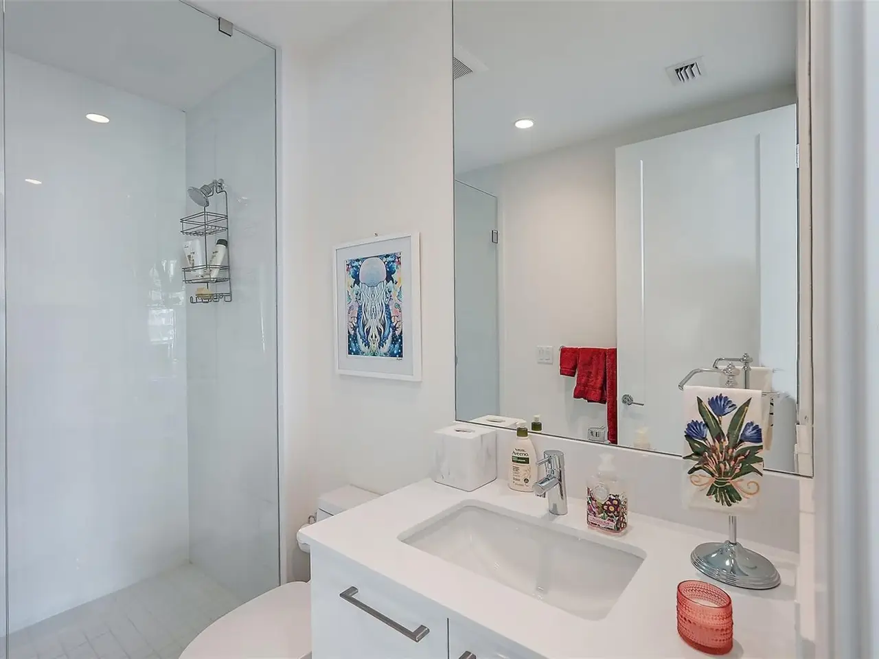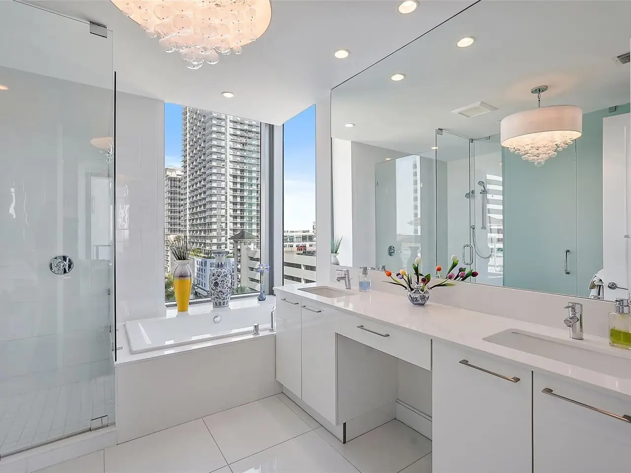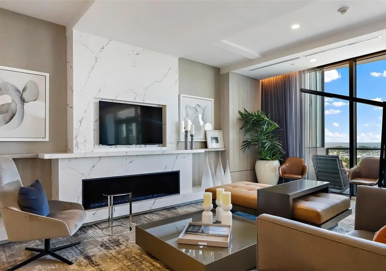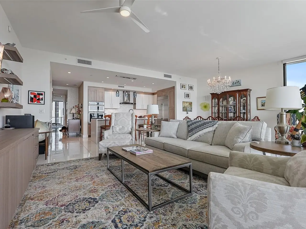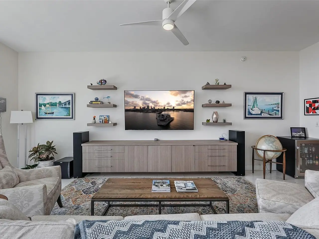 Exquisite Living with Stunning Water views at ONE St. Petersburg Step into a world of unparalleled elegance and modern luxury with this stunning 3-bedroom + den, 3.5-bath corner condo at ONE St. Petersburg, one of the city's most sought-after addresses. Spanning an expansive 2,475 square feet, this one-of-a-kind residence offers one of the largest floor plans available in the building, delivering the perfect combination of space, style, and breathtaking views. From the moment you enter, you'll be captivated by the seamless flow of the open-concept living spaces, enhanced by upgraded electrical receptacles and 24x24 porcelain tile throughout. The chef-inspired kitchen is a true masterpiece, featuring roll-out pantry shelves, sleek stainless steel appliances, a lazy Susan corner cabinetry for easy access, and a custom backsplash. The center island creates an ideal space for gathering and entertaining, while the separate bar area with additional cabinet space and built-in wine fridge elevates the home's sophistication. Throughout the living areas, custom built-ins and floating shelves add a touch of refinement, offering practical yet stylish storage solutions. All windows are equipped with electric blinds, and the master suite features blackout shades for ultimate privacy and comfort. With three private terraces, you'll find the perfect outdoor retreat at every turn. Enjoy direct east-facing views of the tranquil waters from the main living area, soak in stunning west-facing city views from the guest suite and den, or unwind in the master suite, which boasts a private terrace with panoramic vistas of Tampa Bay, the new St. Pete Pier, and the marina. This luxurious condo is not only beautifully designed but also comes with two parking spaces and a climate-controlled storage unit, ensuring your convenience and comfort. As a resident of ONE St. Petersburg, you'll have access to an array of world-class amenities, including a 40,000-square-foot amenities deck featuring a 75-foot lap pool, cabanas, a luxurious spa, outdoor kitchens, fire pits, and abundant seating areas perfect for both relaxation and socializing. Inside, enjoy a state-of-the-art fitness center, a yoga studio, and exceptional social spaces, including a formal social room, game room, and club room all complemented by the seamless concierge service. Located in the heart of downtown St. Petersburg, ONE St. Petersburg offers immediate access to over 40 restaurants, museums, theaters, galleries, shopping, and the vibrant waterfront. Here, you'll discover a lifestyle where sophistication, convenience, and urban luxury come together effortlessly, perfectly encapsulating the essence of modern living in one of Florida's most dynamic cities.