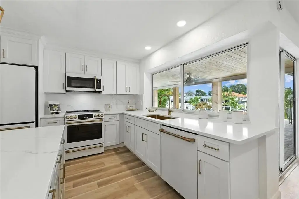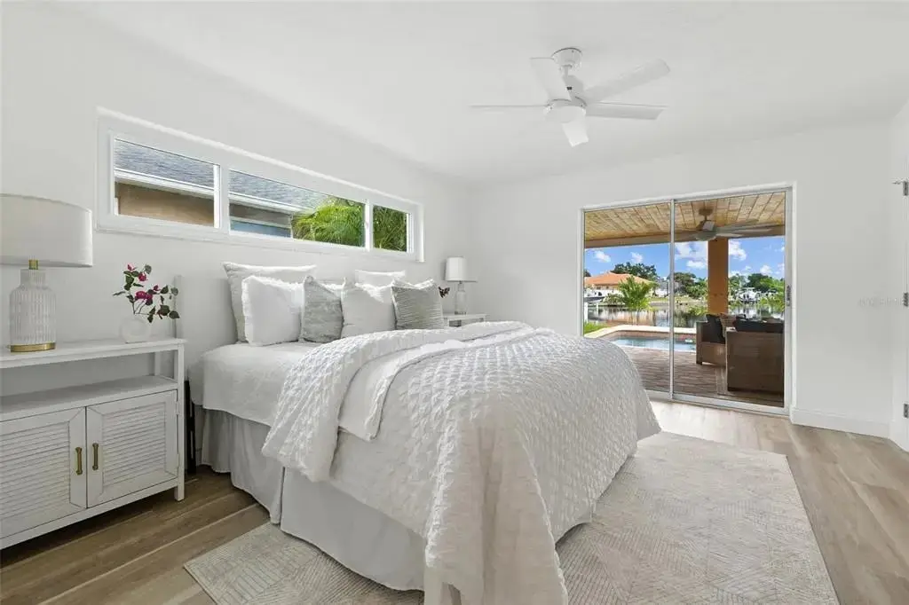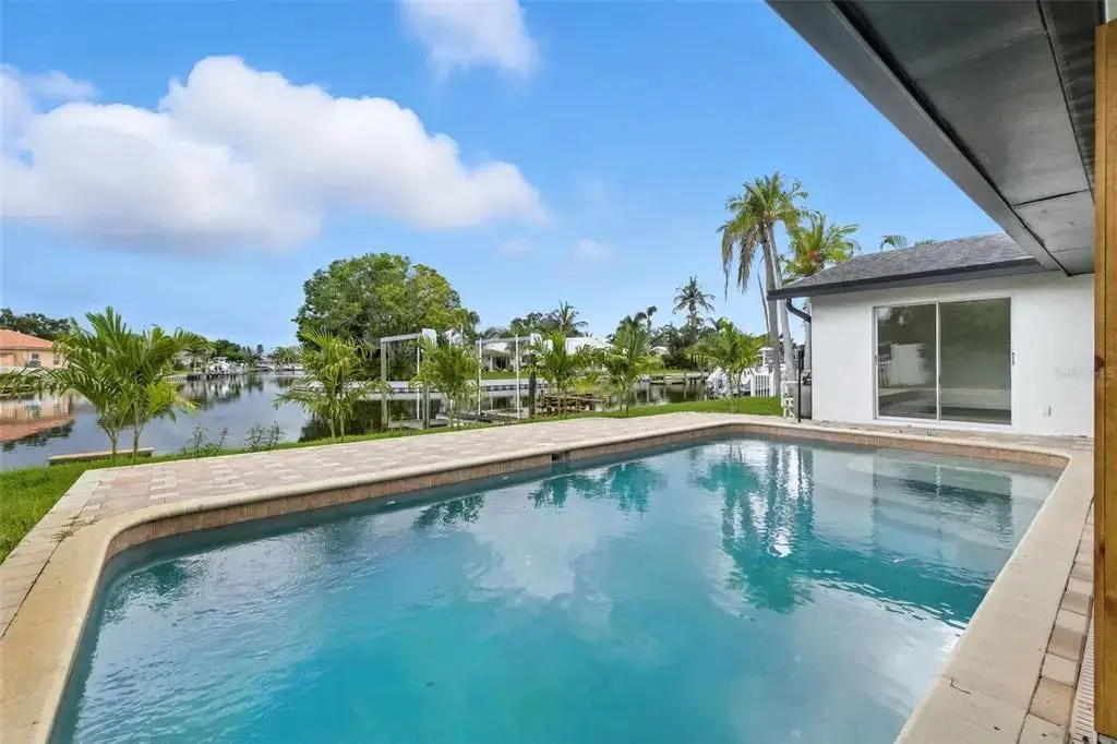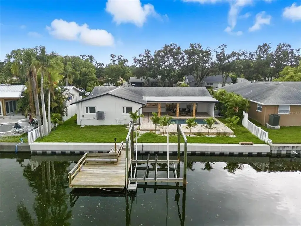 Magnificent Move-In Ready Four-Bedroom Waterfront Pool Home. This is one of those rare, needle-in-a-haystack homes that checks every box on a buyer’s wish list. From the ground up, every detail—inside and out—has been meticulously reimagined to cater to even the most discerning homeowner. From the moment you step inside, you'll be captivated by the stunning modern retreat that unfolds before you. Breathtaking water views greet you from nearly every room, while brand-new flooring flows seamlessly throughout, enhancing the home's elevated custom feel. What truly sets this property apart is its exceptional canal positioning. Unlike typical waterfront homes that face another backyard, this residence boasts unobstructed long-range views straight down the canal—delivering privacy, serenity, and the ultimate visual appeal. The open-concept living space remains beautifully intact, free from awkward patio conversions, step-downs, or unsightly ceiling beams. It’s a clean, cohesive design that maintains both form and function. Enjoy worry-free living with an array of high-end updates: a brand-new elevated HVAC system (2025), new water heater (2025), upgraded electrical, ample storage, and a fully redesigned kitchen and bathrooms. No expense was spared in transforming this rare four-bedroom, two-bath home into a modern showpiece. Set on an oversized lot, the property accommodates up to eight vehicles between the expansive driveway and garage. With no low bridge restrictions, enjoy direct Gulf and Bay large boat access from your own backyard with a private dock and 9,000 lb boat lift—perfect for boating, fishing, island hopping, or relaxing at nearby sandbars. The jaw-dropping chef’s kitchen is a dream, featuring custom cabinetry, designer lighting, brand-new Café appliances, quartz countertops with sleek hidden wireless chargers and dramatic waterfall edges. The luxurious primary suite feels like a five-star resort. Indulge in a spacious walk-in closet, a custom vanity with backlit mirror, elegant tile flooring, striking fluted tile walls with dual shower heads— all carefully curated to blend comfort with sophisticated design. Step through any of the four rear-facing sliders to your beautifully updated deck, ideal for entertaining or unwinding as you watch dolphins and manatees play in the water. The remodeled pool area is equally impressive, featuring new pavers, professional landscaping, upgraded lighting, and a tongue-and-groove ceiling—setting the scene for unforgettable evening swims or relaxed outdoor gatherings. Even the garage floor was thoughtfully upgraded with a sleek epoxy finish—no detail has been overlooked. Located in the warm and welcoming community of Ponderosa Shores—once hailed as "St. Pete’s Hidden Gem"—you’ll be just minutes from the vibrant energy of Downtown St. Petersburg. Cruise this golf-cart-friendly neighborhood, join the festive Shore Acres Holiday Parade, or enjoy a scenic bike ride along the Northeast Trail to Historic Vinoy Park and Downtown. With its unbeatable location, top-to-bottom updates, and luxurious waterfront lifestyle, this move-in ready masterpiece is a rare find. Don’t wait—schedule your private showing today and experience the pinnacle of Florida waterfront living.
