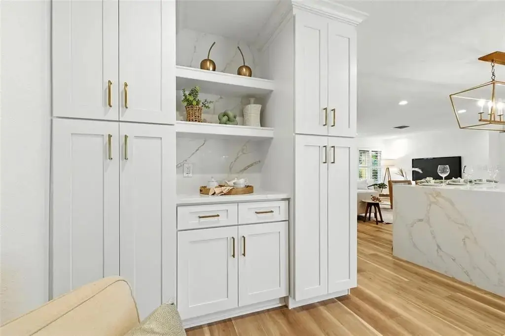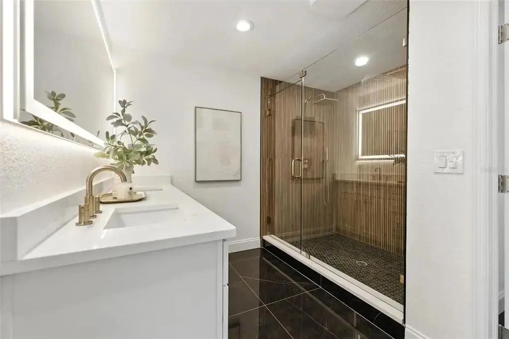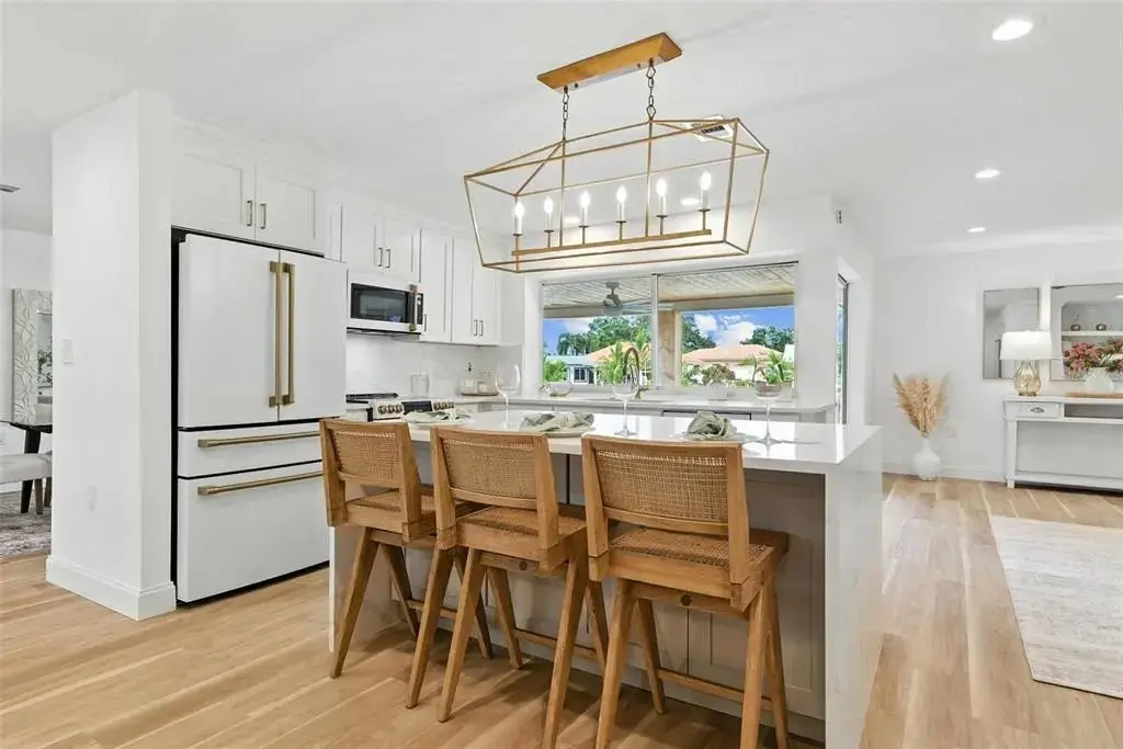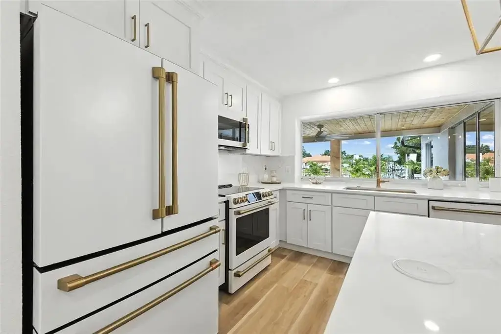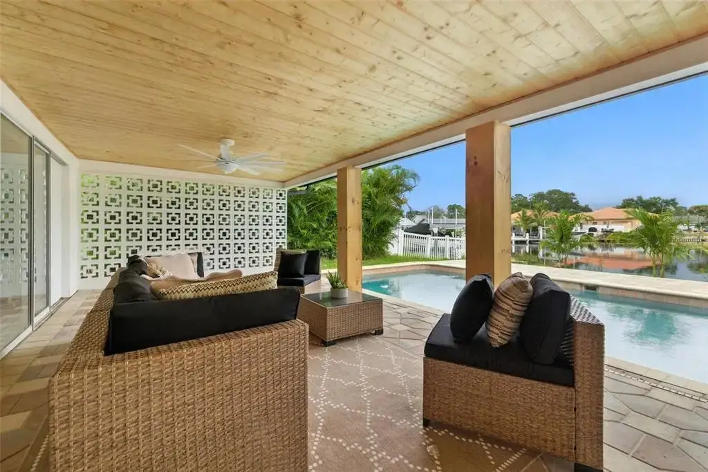 Magnificent Move-In Ready Four-Bedroom Waterfront Pool Home. This is one of those rare, needle-in-a-haystack homes that checks every box on a buyer’s wish list. From the ground up, every detail—inside and out—has been meticulously reimagined to cater to even the most discerning homeowner. From the moment you step inside, you'll be captivated by the stunning modern retreat that unfolds before you. Breathtaking water views greet you from nearly every room, while brand-new flooring flows seamlessly throughout, enhancing the home's elevated custom feel. What truly sets this property apart is its exceptional canal positioning. Unlike typical waterfront homes that face another backyard, this residence boasts unobstructed long-range views straight down the canal—delivering privacy, serenity, and the ultimate visual appeal. The open-concept living space remains beautifully intact, free from awkward patio conversions, step-downs, or unsightly ceiling beams. It’s a clean, cohesive design that maintains both form and function. Enjoy worry-free living with an array of high-end updates: a brand-new elevated HVAC system (2025), new water heater (2025), upgraded electrical, ample storage, and a fully redesigned kitchen and bathrooms. No expense was spared in transforming this rare four-bedroom, two-bath home into a modern showpiece. Set on an oversized lot, the property accommodates up to eight vehicles between the expansive driveway and garage. With no low bridge restrictions, enjoy direct Gulf and Bay large boat access from your own backyard with a private dock and 9,000 lb boat lift—perfect for boating, fishing, island hopping, or relaxing at nearby sandbars. The jaw-dropping chef’s kitchen is a dream, featuring custom cabinetry, designer lighting, brand-new Café appliances, quartz countertops with sleek hidden wireless chargers and dramatic waterfall edges. The luxurious primary suite feels like a five-star resort. Indulge in a spacious walk-in closet, a custom vanity with backlit mirror, elegant tile flooring, striking fluted tile walls with dual shower heads— all carefully curated to blend comfort with sophisticated design. Step through any of the four rear-facing sliders to your beautifully updated deck, ideal for entertaining or unwinding as you watch dolphins and manatees play in the water. The remodeled pool area is equally impressive, featuring new pavers, professional landscaping, upgraded lighting, and a tongue-and-groove ceiling—setting the scene for unforgettable evening swims or relaxed outdoor gatherings. Even the garage floor was thoughtfully upgraded with a sleek epoxy finish—no detail has been overlooked. Located in the warm and welcoming community of Ponderosa Shores—once hailed as "St. Pete’s Hidden Gem"—you’ll be just minutes from the vibrant energy of Downtown St. Petersburg. Cruise this golf-cart-friendly neighborhood, join the festive Shore Acres Holiday Parade, or enjoy a scenic bike ride along the Northeast Trail to Historic Vinoy Park and Downtown. With its unbeatable location, top-to-bottom updates, and luxurious waterfront lifestyle, this move-in ready masterpiece is a rare find. Don’t wait—schedule your private showing today and experience the pinnacle of Florida waterfront living.