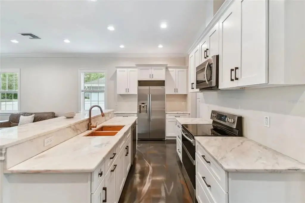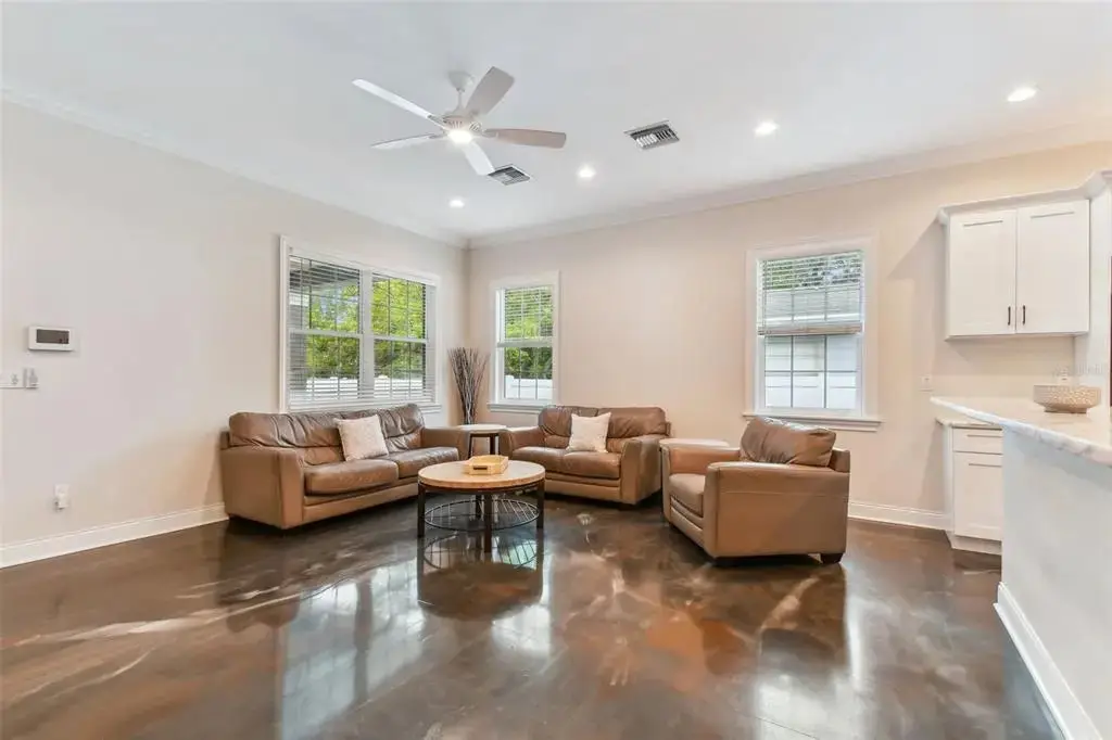 Nestled in the vibrant heart of the Grand Central and Warehouse Districts, this stunning 2018 Tiger Construction home offers a spacious 1,944 sq. ft. featuring 3 bedrooms, 2 bathrooms, and a 2-car garage. Included is a 441 sq. ft. income-producing studio apartment on a generous 50x127 lot. Natural light floods through the glass front entry door, illuminating the living area with its custom trim details and soaring 10-foot ceilings—creating an open, bright, and welcoming space. The open-concept floor plan highlights a beautiful kitchen island topped with Quartz countertops that gracefully separates the kitchen and living areas. Artisan epoxy floors, classic shaker cabinetry, and stainless steel appliances combine to create a kitchen that’s both elegant and highly functional. The formal dining room is complemented by an attached Butler’s Pantry/Coffee Bar, perfect for entertaining. The primary ensuite serves as a private owner’s retreat with ample space, multiple walk-in closets, a walk-in shower with floor-to-ceiling tile, and a double vanity. All three bedrooms feature generously sized closets for added convenience. Additional features include PGT impact-rated windows and doors throughout the home, offering enhanced energy efficiency, security, and peace of mind. A large laundry room equipped with a sink and washer/dryer adds to the home’s everyday convenience. The property is also equipped with a Vivint Alarm System and smart home features. The separate studio apartment, last rented at $1,400/month, includes its own full kitchen, bathroom, and laundry with washer and dryer—ideal for generating income or hosting guests. Within easy reach of an eclectic mix of local hotspots—art galleries, shops, restaurants, and bars—this home places you right in the center of the action. Contact me today to schedule your personal tour of this exceptional property.