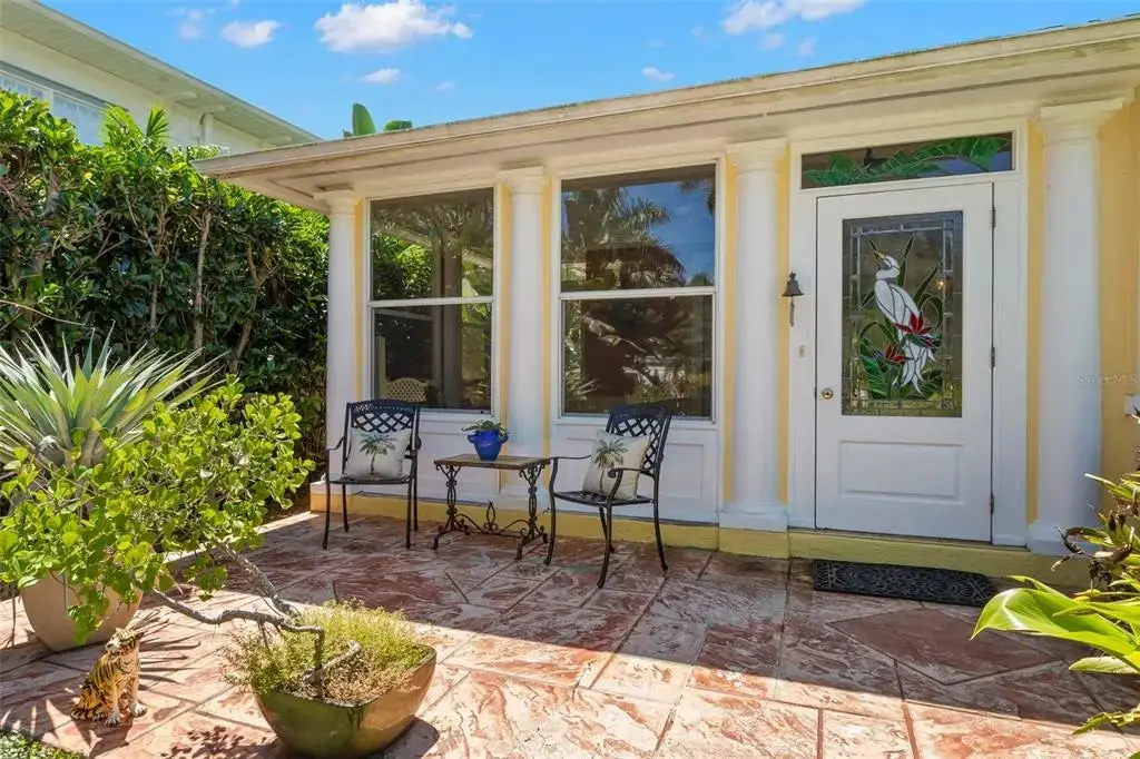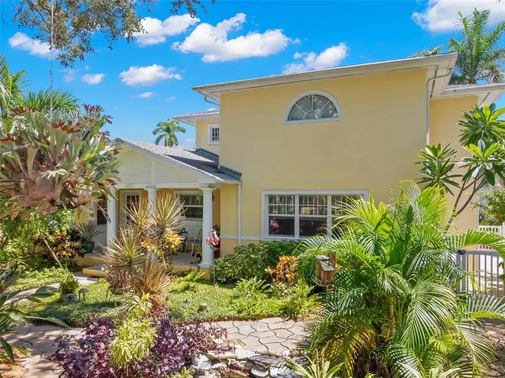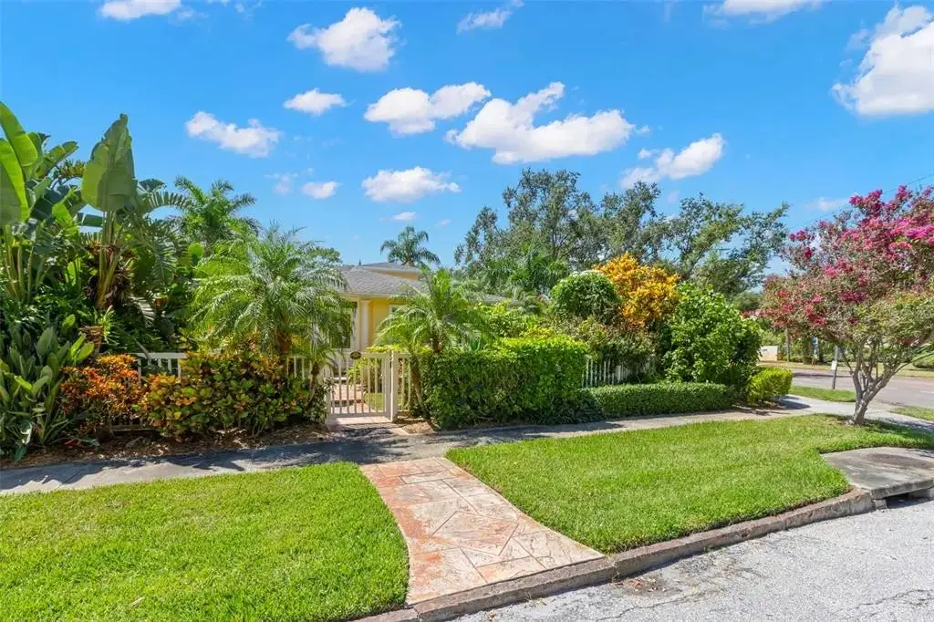 PRIME LOCATION in the highly sought-after Old Northeast neighborhood of St. Petersburg. This light and bright three-bedroom, three-bath block construction home with a den is perfectly situated just steps from the waterfront and a short stroll to vibrant downtown St. Petersburg. Nestled on a spacious 84 x 110 prestigious corner lot, the property boasts lush tropical gardens and multiple covered and outdoor seating areas, perfect for enjoying the best of Florida living. While the home has been updated over the years, it presents a wonderful opportunity for its next owner to make this location their own. The downstairs features an open and spacious layout, ideal for entertaining, including a large living room, dining room, sunroom, den, kitchen, and a convenient bedroom with an en-suite bath. Bringing in groceries is a breeze with direct access from the attached two-car garage into the home or the laundry room, which offers a sink with folding counter and ample storage. Additionally, a wet bar with built-in cabinets and a wine cooler enhances the entertaining possibilities. Upstairs highlights include a large primary suite with a spacious walk-in closet, shower and soaking tub, and a second bedroom with a full ensuite bath. Plenty of parking is available in the oversized two-car garage or on the parking pad behind with alley access. Schedule a private showing to fully appreciate this unique property in a great location!