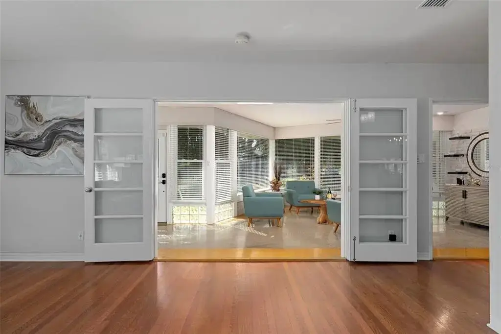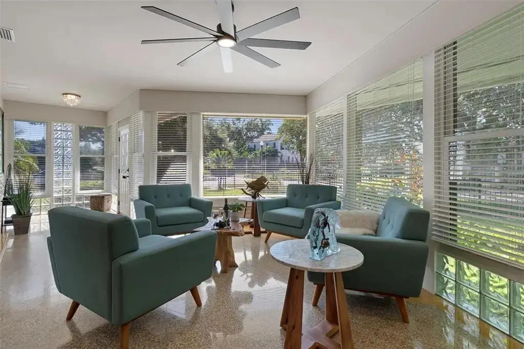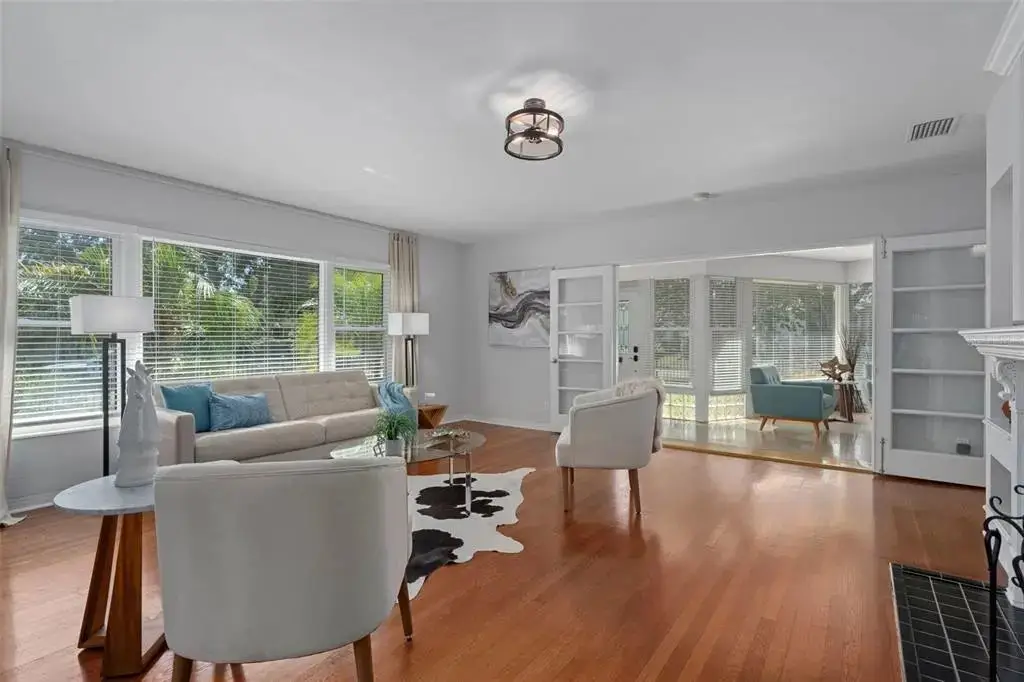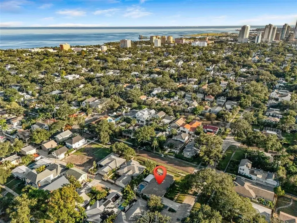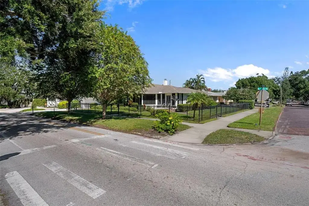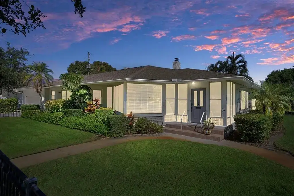 Visualize living in this elegant home located in the desirable Historic Old Northeast. Situated on an oversized 85’ × 110’ corner lot in a non-flood zone. The home offers a sense of space in this sought-after neighborhood. Step inside and you’ll instantly feel the charm that makes this home so special, with original terrazzo floors, warm hardwood floors, and vintage glass-panel interior doors that reflect its enduring authenticity. The spacious 2-bedroom, 2-bath, 2,553 sq. ft. floor plan offers generous room sizes and flexible spaces for endless possibilities. Natural light fills the home through large windows, and the welcoming sitting area just inside the front door provides the perfect spot to gather with friends. This inviting space opens through glass French doors to the living room, which features curved plaster walls and a fireplace. Just beyond the living room, a versatile den offers the perfect space for a home office, gym, or hobby room filled with light. The kitchen blends style and function with granite countertops, a five-burner gas cooktop, pot-filler, wine refrigerator, and premium Thermador appliances. The kitchen also features an island with seating for four, a convenient coffee nook, and abundant cabinetry. Off the kitchen, a large 24’ × 18’ family room—currently used as a media room—provides additional living space just inside from the backyard pool. The primary bedroom suite offers comfort and style with an ensuite bathroom, walk-in closet, ceiling fan, and plantation shutters on the windows. Down the hallway, you’ll find the second bathroom, a laundry closet with built-in shelving, and the spacious second bedroom, which can easily accommodate two beds—perfect for siblings or guests. Outside, the property is designed for easy Florida living. The entire yard is fully fenced, creating a perfect space for pets or play. The saltwater pool is surrounded by low-maintenance tropical landscaping, offering a private retreat for relaxing or entertaining. An irrigation system on a private well, natural-gas service from the street, and a dedicated gas hook-up for outdoor grilling make outdoor living effortless. A true two-car garage plus a new paver parking pad provide rare convenience in this coveted neighborhood. Located in one of St. Pete’s most desirable areas, you’re just blocks from Coffee Pot Bayou, Vinoy Park, and vibrant downtown St. Petersburg—home to world-class dining, boutique shopping, art galleries, and waterfront parks.