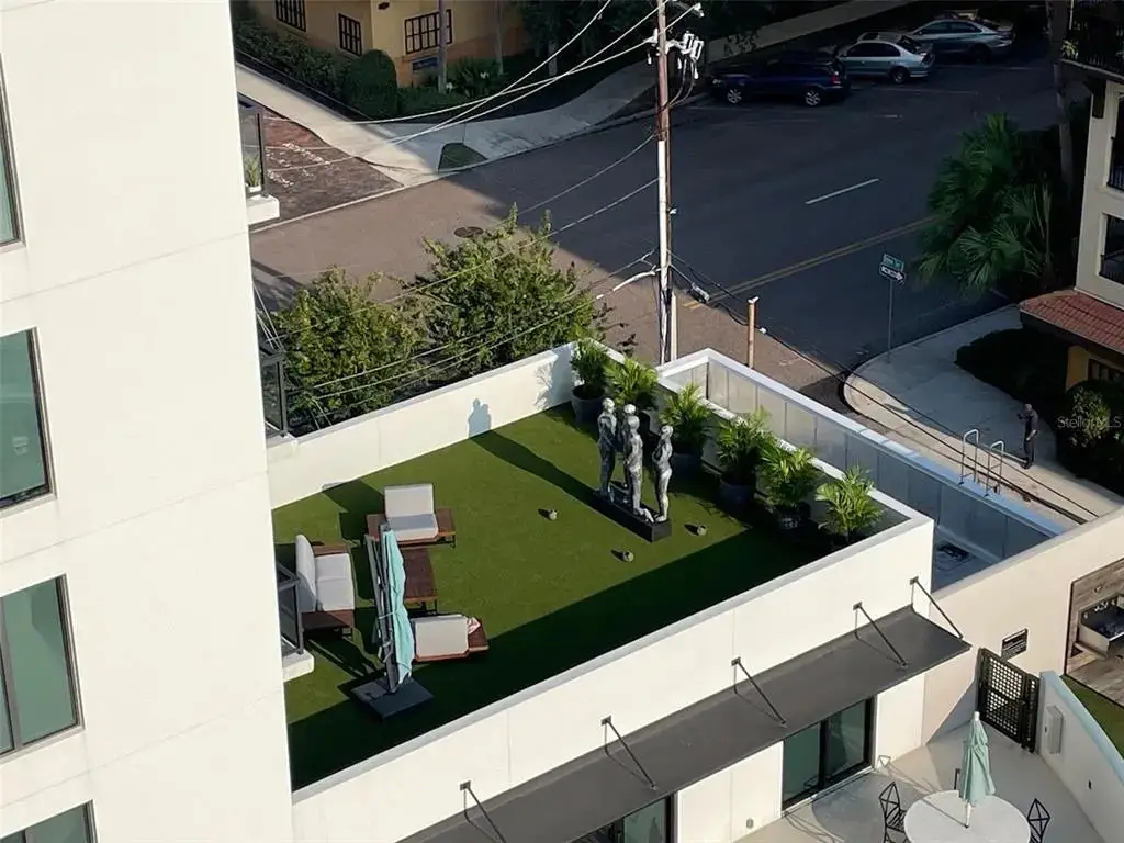 *** One of a Kind Condo *** This home offers a very special opportunity, the ease of metropolitan condo living with the feel of a gorgeous backyard. Truly one of a kind at the Salvador and perhaps in all of St Pete, this home offers a 1000+ SF terrace covered in artificial turf that's made with heat-reflective technology, providing a cool, maintenance free area for dining and relaxing outdoors. The terrace overlooks the 3rd floor amenities deck, downtown, the Dali museum, and Tampa Bay. An open floor plan with the Kitchen, Dining, and Living rooms all overlooking the terrace through floor to ceiling windows provide a most elegant space to entertain, in and out of doors. This condo sets out from the rest of the building and therefore has no adjacent units next to it, providing the ultimate in privacy. Engineered hardwood floors flow throughout the 1555sf of this home. A large, open, contemporary kitchen with Quartz countertops, Bosch appliances, Gas Range, and Wine Cooler has abundant natural light. The living room features a built-in entertainment center with an additional beverage cooler and motorized blinds. The primary bedroom with an oversized walk-in closet, is en-suite with a deep soak tub, dual sinks, and large shower. The guest bath has a tub/shower with shower door and both bedrooms have tall windows with blackout shades. The home has two parking spaces and a climate-controlled storage unit. The Salvador, a LEEDS certified green 74 unit building has great amenities in a saltwater pool, spa, state-of-the-art fitness center, social room, grilling station, gated dog park with dog washing station, sculpture garden and outdoor fire pit area. Concierge and on-site management are convenient features for the owners. All located within easy access to all that downtown living offers and yet, located in a quiet part of town when you’re ready to wind down. Call for your private tour of this exquisite and unique home.
