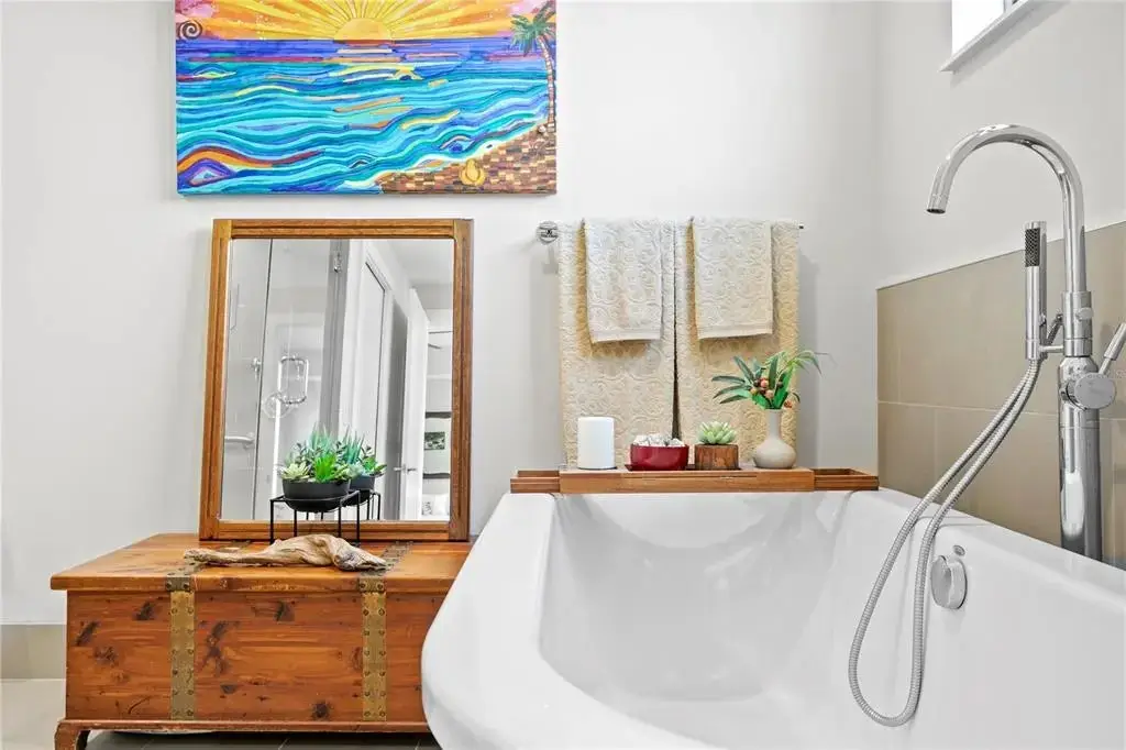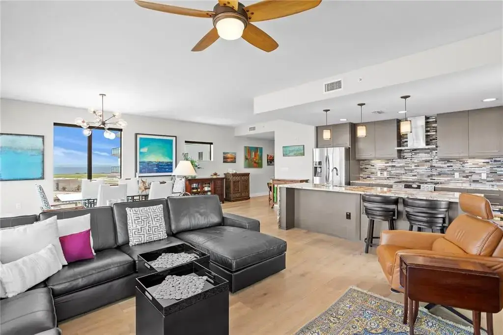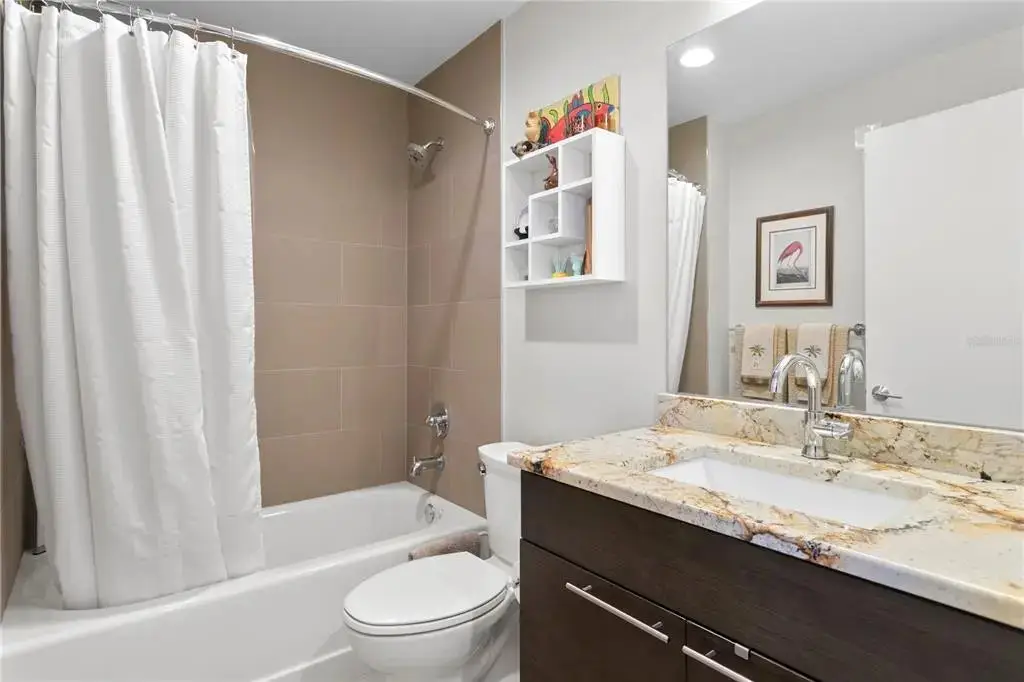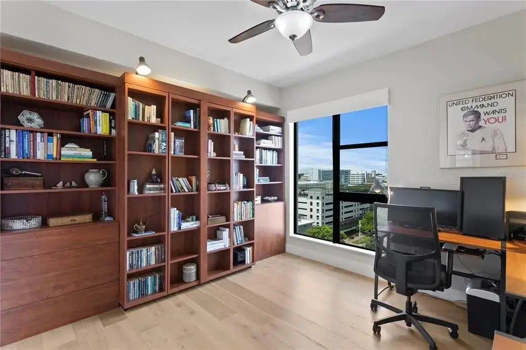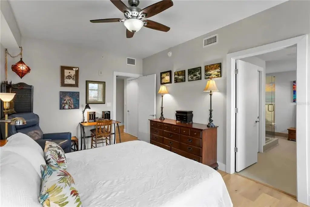 Experience breathtaking, sweeping views of downtown St. Pete, the Pier, Tampa Bay, the Dali Museum, and Albert Whitted Airport from the 12th-floor balcony of this spacious residence at The Salvador. A welcoming Gallery entry sets the tone, offering space for artwork, artistic expression and a direct line of sight to the stunning vistas beyond. This 1,555 sq. ft., 2-bedroom, 2-bath home features a unique open floor plan with windows on three sides—ensuring abundant natural light, dramatic views, and complete privacy with no adjacent units. The expansive living and dining areas are framed by floor-to-ceiling windows, with motorized blackout shades on the East and West exposures. The contemporary kitchen has been thoughtfully upgraded with custom waterfall-edge countertops, a deep single-basin sink with modern faucet, natural gas range, Samsung 28 cu. ft. French door refrigerator with food showcase panel and filtered ice/water, and a wine cooler. Design upgrades continue throughout: premium sinks and Moen faucets in both bathrooms, Cat 6 wiring from a centralized Ethernet switch, and sunshade blinds in both bedrooms, double-hung with blackout layers. The primary suite features a generous walk-in closet and a spa-inspired bath with a deep soaking tub, a large walk-in shower with a custom glass enclosure, dual Moen fixtures (rainhead and handheld), each with individual thermostatic controls, and a dual-sink vanity. The guest bedroom includes a custom queen-size Murphy Bed with swinging bookshelf doors. A laundry closet between the bedrooms includes Samsung front-loading washer and dryer with added storage. This residence includes two adjacent second-floor parking spaces and a substantial climate-controlled storage room. The Salvador, a LEED-certified building with only 74 units, offers an array of amenities including a pool and spa, a state-of-the-art fitness center, a social room, grilling area, dog park with wash station, sculpture garden, and outdoor fire pit. Concierge service and on-site management ensure effortless living in this tranquil yet centrally located oasis, just blocks from downtown attractions like the Dali Museum, Mahaffey Theater, Albert Whitted Airfield, and the vibrant Saturday Morning Market. Elevate your lifestyle with a private tour of this exceptional residence at The Salvador and discover unparalleled luxury living in the heart of St. Pete. Schedule your visit today to immerse yourself in this unparalleled blend of privacy, luxury, and location.