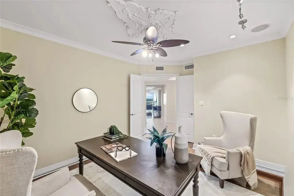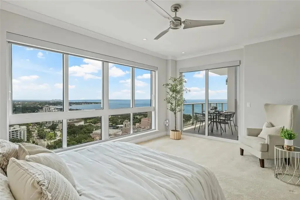 Sweeping Tampa Bay Views greet you from the moment you step through the private foyer into this 23rd-floor 400 Beach Drive condo! This beautifully designed 2-bedroom, 2-bath residence offers 2,203 sqft of comfortable, upscale living with unobstructed views of Tampa Bay. From sunrise to sunset, take in the stunning backdrop of water and beautiful northeast views from nearly every room. Step off the elevator into your private foyer, offering a quiet and secure entrance that leads directly into your residence. As you walk into the main living area, you're immediately greeted by wall-to-wall windows framing breathtaking water views, filling the space with natural light and a calming coastal feel. In addition to the two spacious bedrooms, this home features a generously sized office that offers flexibility as a media room or den—perfect for guests or working from home. The open layout is perfect for both everyday living and entertaining, and features Crestron electric shades and lighting throughout. Step out to the balcony—accessible from both the kitchen and the primary suite—for your morning coffee or an evening glass of wine while watching fire works on Spa Beach. This well-maintained residence is offers the ease of a low-maintenance with a lock-and-go lifestyle—ideal for full-time or seasonal living. The unit includes two side-by-side, covered, and secured parking spaces with an EV charging station, along with access to the building’s resort-style amenities, including 24/7 concierge service, a heated lap pool and spa, fitness center, social rooms, fire pit, and outdoor grilling stations. Set in the heart of Downtown St. Pete on iconic Beach Drive, you’re just steps from parks, the St. Pete Pier, waterfront trails, top-rated restaurants, boutique shopping, and world-class museums. Whether you're enjoying the vibrant downtown energy or relaxing at home with a view, this residence offers the best of both worlds.
