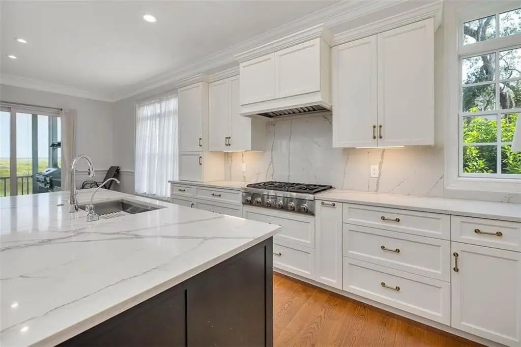 941 Champney offers a harmonious blend of coastal elegance, modern livability, and scenic marshland views—perfect for those who value serene outdoor living in a private, secure, gated community. This marsh front home sits on .39 acres and has four bedrooms and three and one half bathrooms. The chef's kitchen, which is open to the dining room and living room features a center island, Thermador gas cooktop, Bosch oven and microwave and stainless refrigerator. This home is perfect for entertaining; the living and kitchen area flows seamlessly out onto the covered deck with a gas grill and spectacular marsh views and amazing sunsets. On the main floor there is one bedroom and full bath. Upstairs you will find the primary bedroom with access to another covered deck and views of the marsh. The primary bath has dual sinks, a separate shower and a soaking tub and a large closet . There are two additional bedrooms and a bath on this level. On the lower level you will find an oversized two car garage, with several multi-use rooms. These rooms give you the possibility of creating a home gym, extra storage or an office. Some of the upgrades to this home include hardwood floors, landscape irrigation, and a generator. With spectacular panoramic views to the west overlooking the marsh this property is hard to beat! Make your appointment to tour this beautiful home today.
