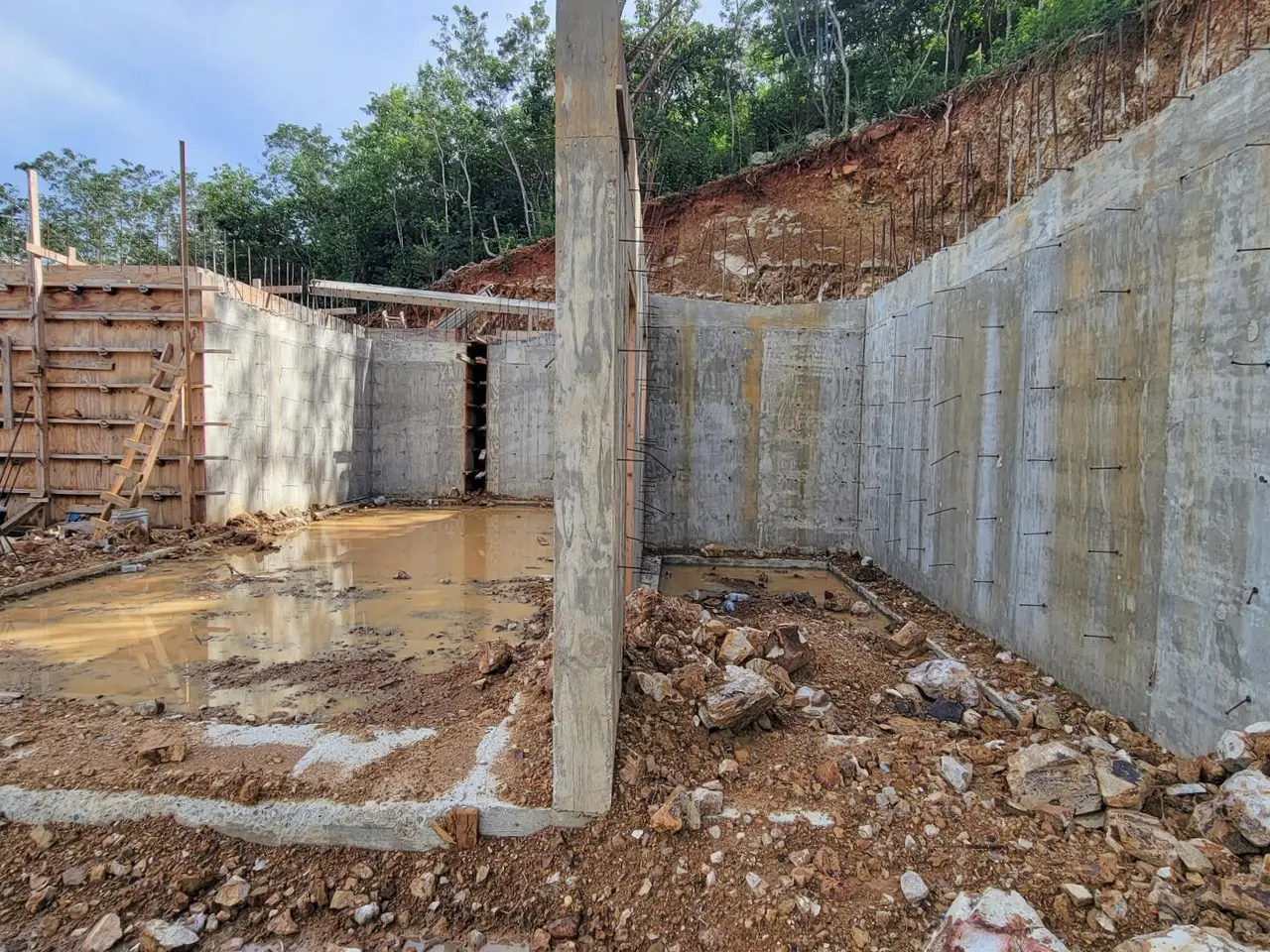Here is your chance to finish building your dream home exactly the way you want. Lot driveway is graded, retaining walls are in, two freshwater and two gray water cisterns are in place and slab is poured for the cottage. You can use the current permited building plans or continue on with your own. Lot is almost an acre and is accessible from the current driveway AND from the top of the property. It is walking distance to Bolongo Beach, Bolongo Resort and restaurants. Seller is flexible on price.