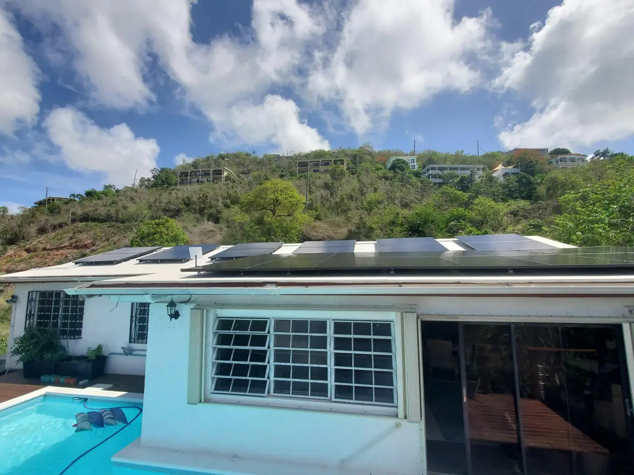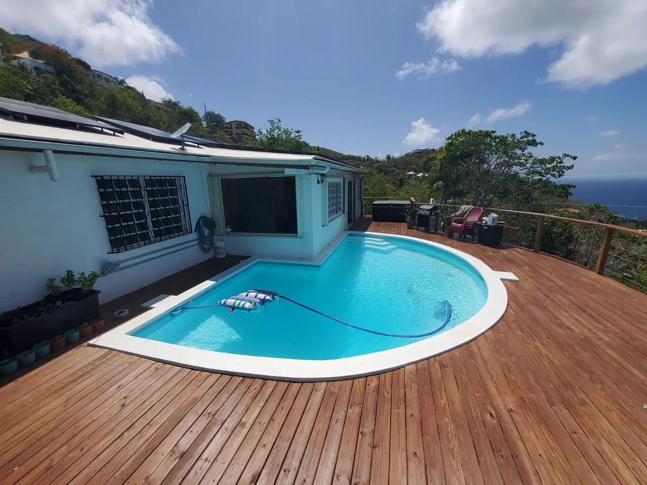 The PERFECT single family home for your family or excellent income property. Park in the flat parking area and walk past the grassy entrance with a fire pit. Beautiful breezes with a pool AND a hot tub and lots of outdoor deck space. Even the floorplan makes sense! The house is WALK IN LEVEL. There are 28 solar panels, 2 Tesla Powerwalls and Net Metering. Remodeled kitchen and baths, all new electric, new split A/C's, recently recoated roof and an outdoor shower. It even comes with Starlink. This lovely home comes FULLY furnished so just move right in or rent out immediately. See documents for all extras