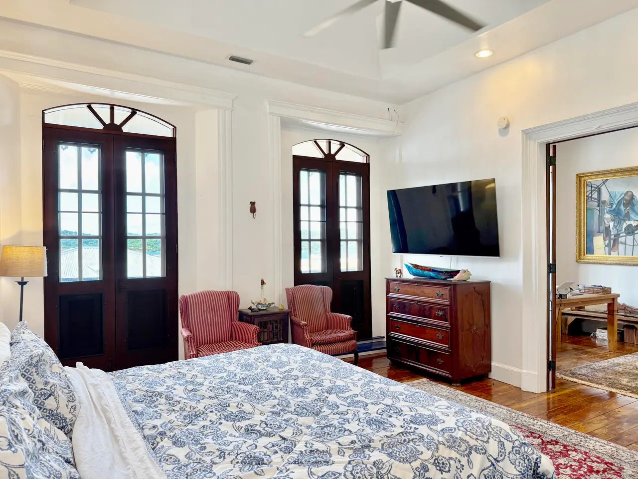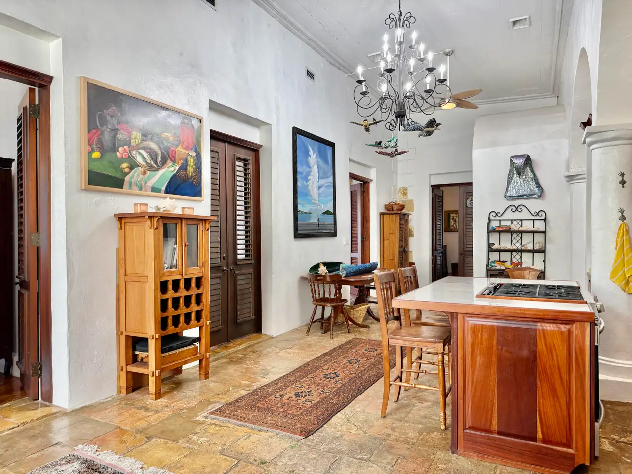 Experience a rare opportunity to own a distinguished piece of Virgin Islands heritage. Originally built in the 1700s, with a recorded deed dating to 1804, this architectural masterpiece seamlessly blends historic grandeur with modern sophistication. Soaring vaulted ceilings, graceful archways, mahogany floors, and intricate ironwork evoke timeless elegance, while solar power, air conditioning, and Starlink internet ensure contemporary comfort. Main residence features three bedrooms, two baths, an entertainment lounge, and a private rooftop terrace. Four beautifully appointed rental suites offer income potential. Perfectly situated in Charlotte Amalie near fine dining, boutiques, and ferries, this storied estate once owned by notable figures--embodies the enduring legacy of island luxury.