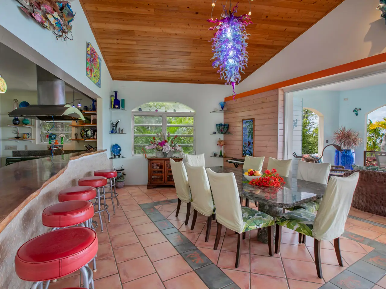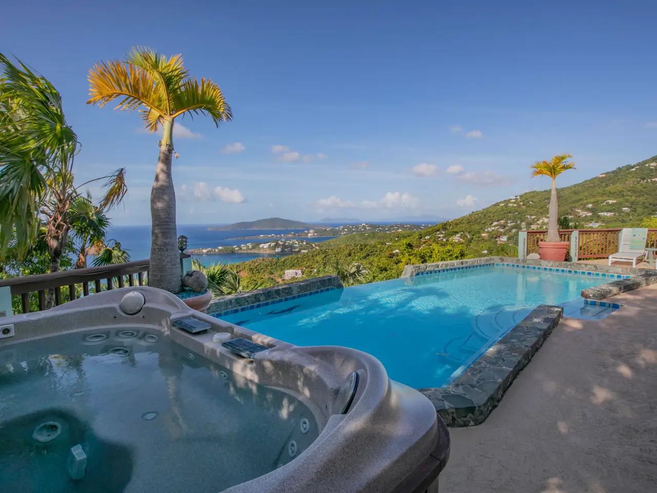 Villa Amour is a successful vacation rental that is also ready to be a home with an apartment. The expansive view overlooks Neltjeberg Beach all the way to the BVI. The property has a lush, remote feel while still being 5 minutes from a grocery store. The main house has 4 bedrooms with their own AC units and bathrooms, and an additional half bath on the main floor. The spacious living room has pocket doors that allow a seamless flow to the back porch, pool and hot tub. The apartment is a spacious studio with AC and a separate entrance. This concrete home is also equipped with a 25kW diesel generator w/300 gallon tank, and 45 solar panels with 9.2kW capacity. The sale includes adjoining lot 16-Rem Estate Neltjeberg.