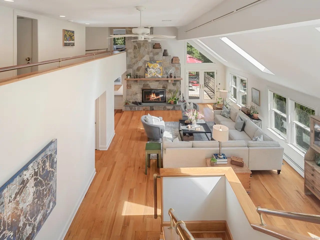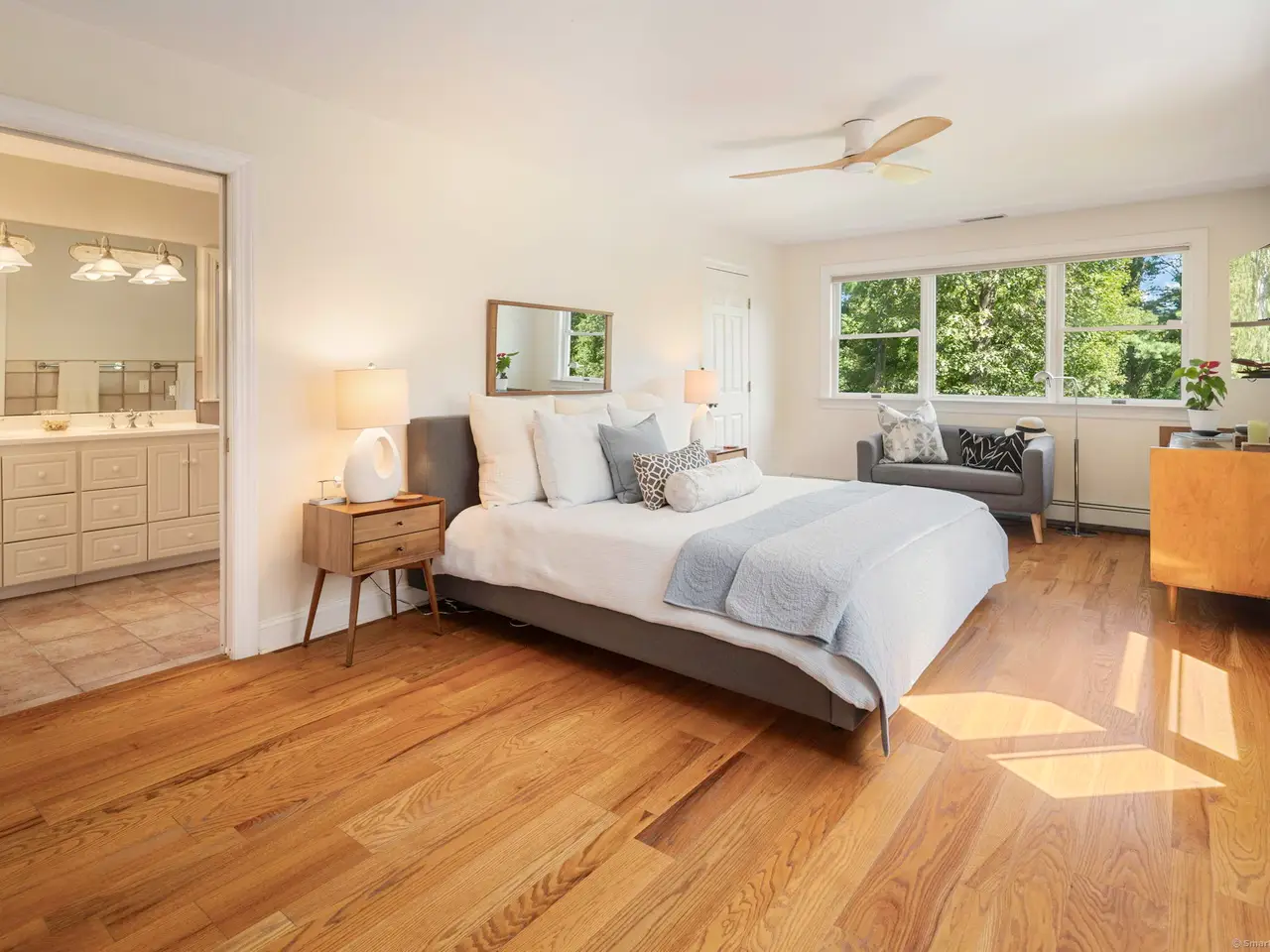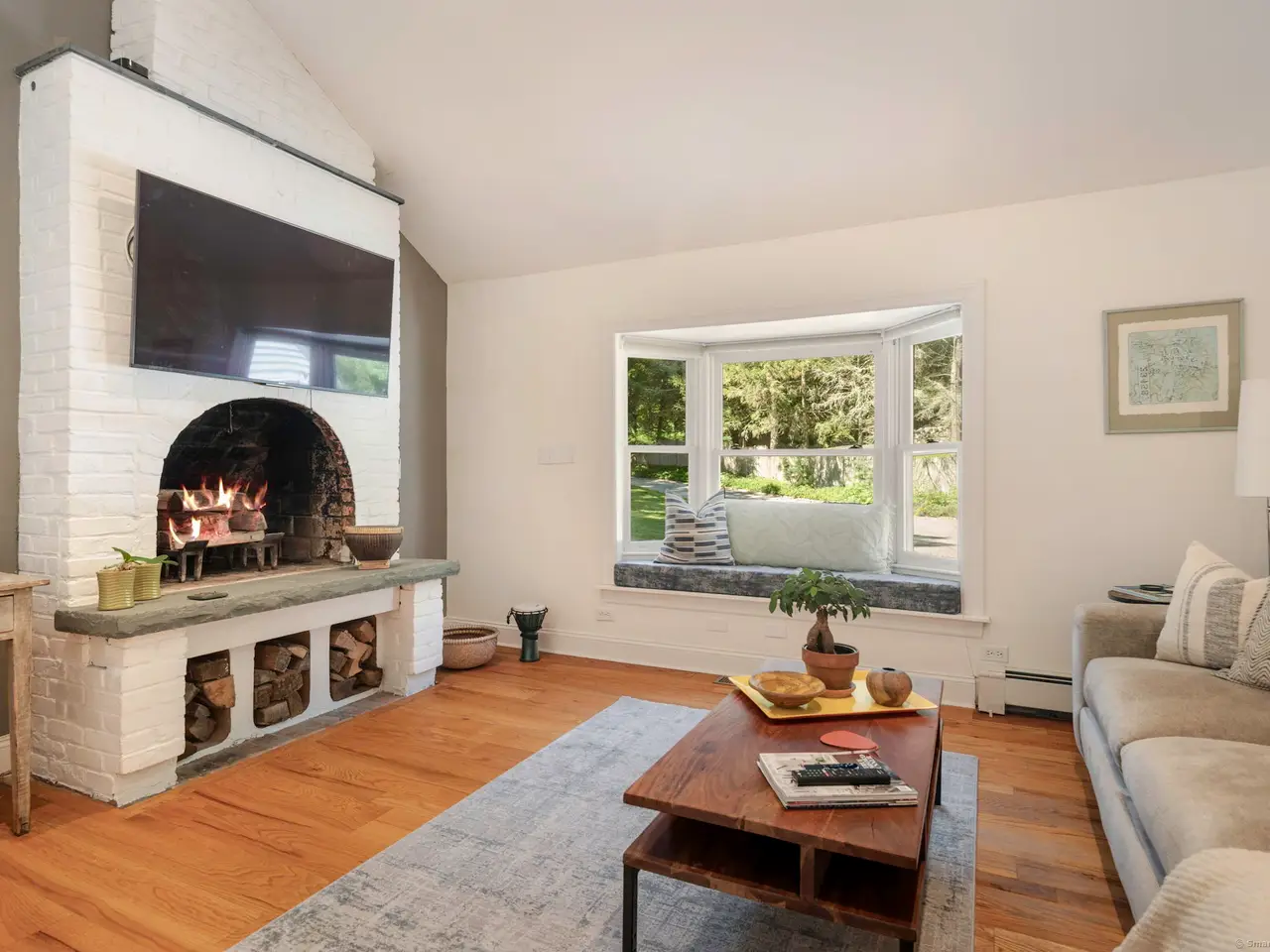 This stunning property seamlessly blends modern farmhouse charm with a touch of Museum of Modern Art sophistication. Situated on three picturesque acres with a tranquil pond, Mianus River frontage, and expansive fields perfect for outdoor entertaining or a potential pool, it's a truly exceptional estate. The interior showcases soaring ceilings, a dramatic two-story fireplace, and floor-to-ceiling windows that frame breathtaking views of the pond and barn-creating an artful, open-concept living space. The recently renovated chef's kitchen features quartz countertops, top-tier Wolf and Sub-Zero appliances, a large island, and smart design details that elevate everyday living. An elegant dining area, cozy TV lounge, and stylish home office complete the first floor. With five bedrooms-including one on the main level-and 4.5 bathrooms, the layout is ideal for family, guests, or entertaining. The property includes an historic post-and-beam barn, rebuilt in 2008, offering endless potential: It includes horse stalls, an artist's studio, and a rustic gathering space with a wood-burning stove. The fenced garden invites vegetable and flower gardening, while direct access to 30 miles of riding trails through the Greenwich Riding & Trails Association makes it a haven for equestrians and outdoor enthusiasts alike. This property masterfully combines contemporary farmhouse warmth with artistic, museum-quality architectural details-offering a one-of-a-kind lifestyle in a serene, country setting.