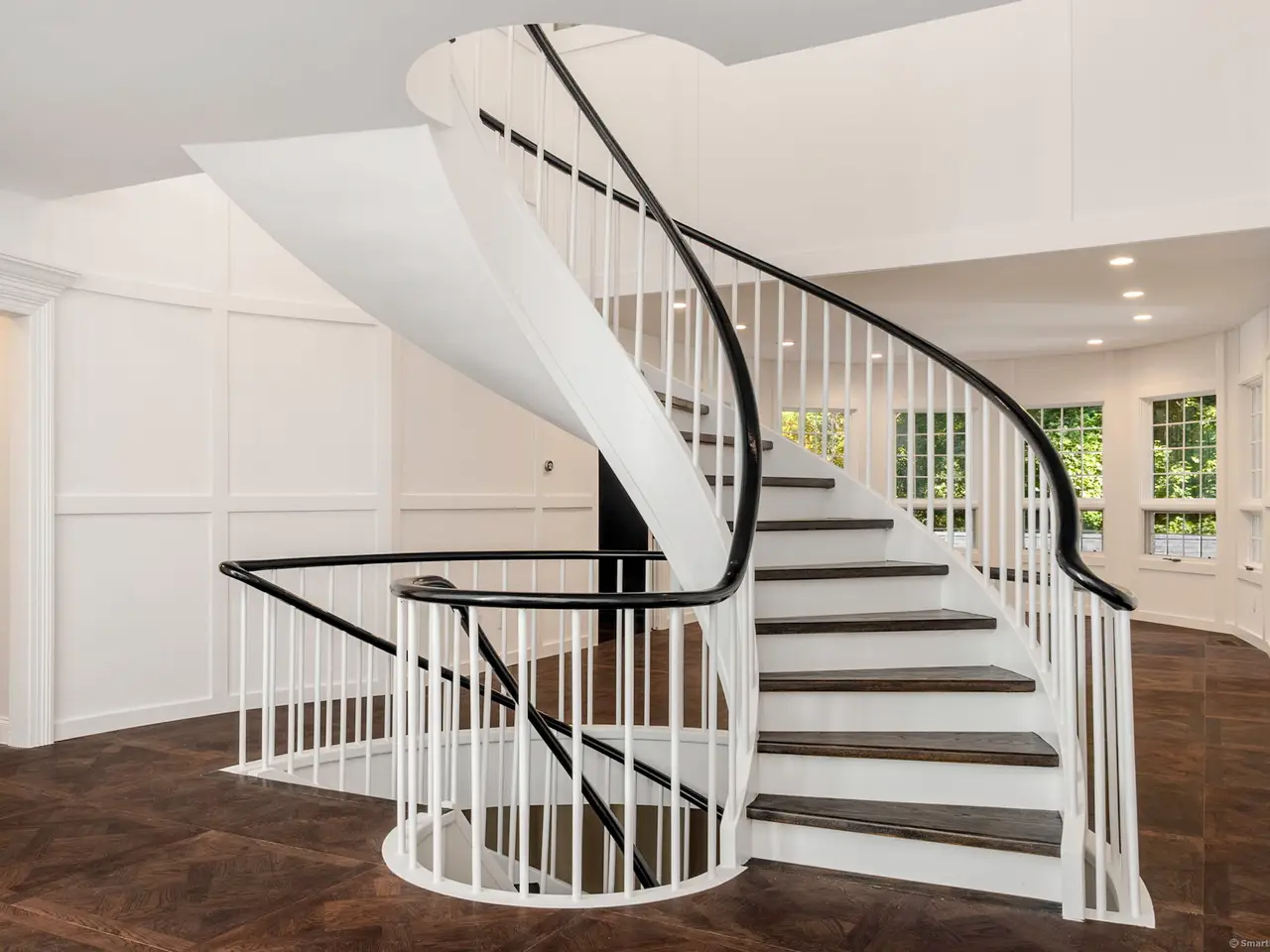 Perched high on a scenic knoll off a private road and set on nearly 4 acres of manicured grounds, this timeless estate is a rare opportunity to own one of Westover's most distinguished properties. Showcasing an 8,543 sq ft Georgian brick manor, built in 1989 with masterful attention to quality and detail, this renovated home offers a luxurious lifestyle with warmth and sophistication throughout. From the moment you enter the grand central foyer-with its soaring two-story ceiling and dramatic curved staircase-you're welcomed into a home designed for both elegance and ease of living. Light-filled rooms with high ceilings and generous proportions create a seamless flow between formal and informal living spaces. The heart of the home is the expansive chef's kitchen, complete with two islands, custom cabinetry, premium appliances, a butler's kitchen / pantry, and a spacious breakfast area that is open to a bright and airy family room-perfect for everyday living and entertaining alike. The main level also features a private office and a beautifully appointed en-suite bedroom ideal for guests or multigenerational living. Upstairs, the distinctive primary suite is a luxurious retreat with oversized walk-in closets, a spa-like bath offering many amenities and an office or a private fitness room. Three additional sun-drenched en-suite bedrooms and a second laundry room complete the upper level. The walkout finished lower level is a destination in itself-offering a vast party / playroom an en-suite bedroom ideal for au pair quarters, a billiards room, a soundproof home theater with stadium seating, a kitchen, laundry room and storage areas. Outdoor living is just as extraordinary. A gated driveway leads to a circular motor court centered around a restored classic fountain. Enjoy resort-style amenities including an oversized in-ground pool, a cabana, a newly built outdoor kitchen with covered patio, a private tennis court, and a half basketball court. Car enthusiasts will appreciate the heated 8-car garage with electric vehicle charging stations. Additional highlights include a full house generator, an elevator servicing all three floors, and an upgraded Sonos sound system. This estate is tucked away in one of Westover's most prestigious neighborhoods-an enclave of architecturally impressive homes. Just minutes from the hiking trails of Mianus River Park and a few more minutes to downtown Stamford, Greenwich, and a 45-minute drive to New York City