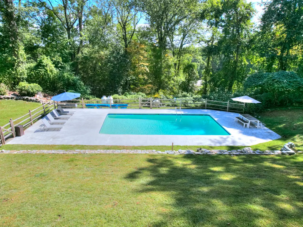 Welcome to 21 East Hill Road, a timeless New England Colonial tucked away on a quiet North Stamford cul-de-sac. Perfectly situated in a sought-after location, this home rests on 1.36 acres of parklike grounds, framed by mature greenery and highlighted by a heated pool. The setting is both peaceful and serene, offering a true retreat. Inside, spacious rooms and a functional floor plan are accented by hardwood floors and two fireplaces that add warmth and character. The eat-in kitchen is a standout, adjoining the gracious front-to-back living room on one side and a generous yet cozy family room on the other. A formal dining room adds elegance for entertaining, while casual kitchen dining flows to the screened porch and Trex deck, where sweeping views of the rear yard and pool set the stage for gatherings or quiet evenings outdoors. With four bedrooms plus a main-floor flex room/office, the home adapts seamlessly to today's lifestyle-ideal for a guest suite or work-from-home space. The primary suite features a spacious bath, while the finished walkout lower level provides abundant space for recreation, fitness, or media. All this in a prime location with convenient access to downtown Stamford, local beaches, shopping, dining, and the train station. With New York City within easy reach, the home offers the best of both worlds, elbow room to relax, yet close to everything. Set in a peaceful, versatile, and desirable neighborhood, this property delivers both everyday comfort and the refined Fairfield County lifestyle.