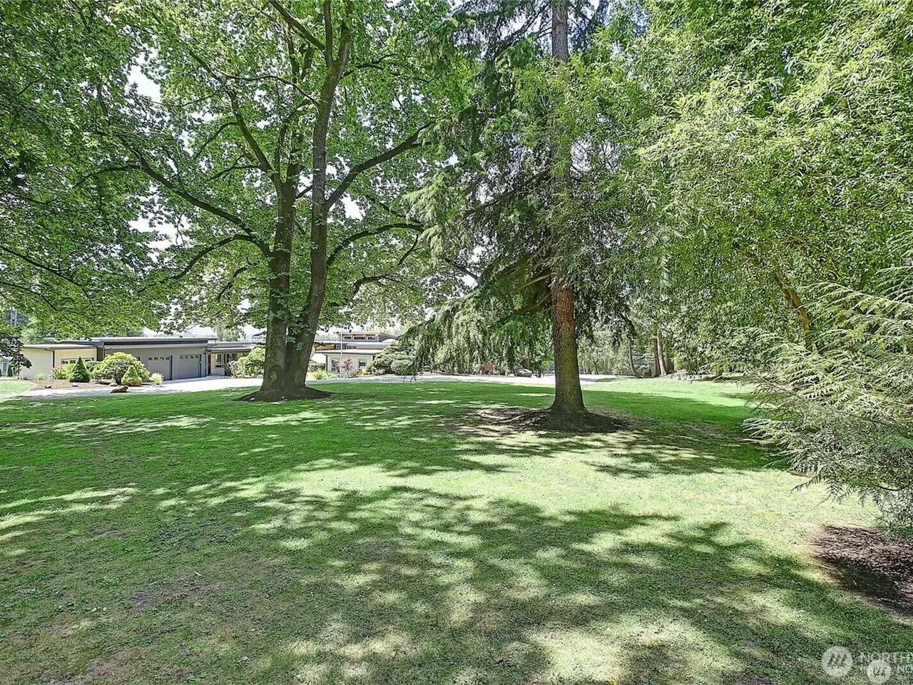 Exquisite Mid-Century style home on 6.4 beautiful acres with evergreens and trails throughout. Views of the Olympics, Sound, City, Sunsets, and Valley. Six parcels within the city limits. Drive up to your finished four-car garage and walk through a gorgeous courtyard into your own piece of paradise. Beautiful open kitchen with large island. Stainless high-end appliances. Adjoining is your dining area with lots of built-ins. TV room, with adjoining office. Huge deck the width of the house. Large living room with steel fireplace. Secondary bedroom, 3/4 bath, machine room and guest closet are steps away. Spacious primary suite with updated bath and walk-in closet. Detached studio guest room with beautiful granite counters and 3/4 bath. Green Built!