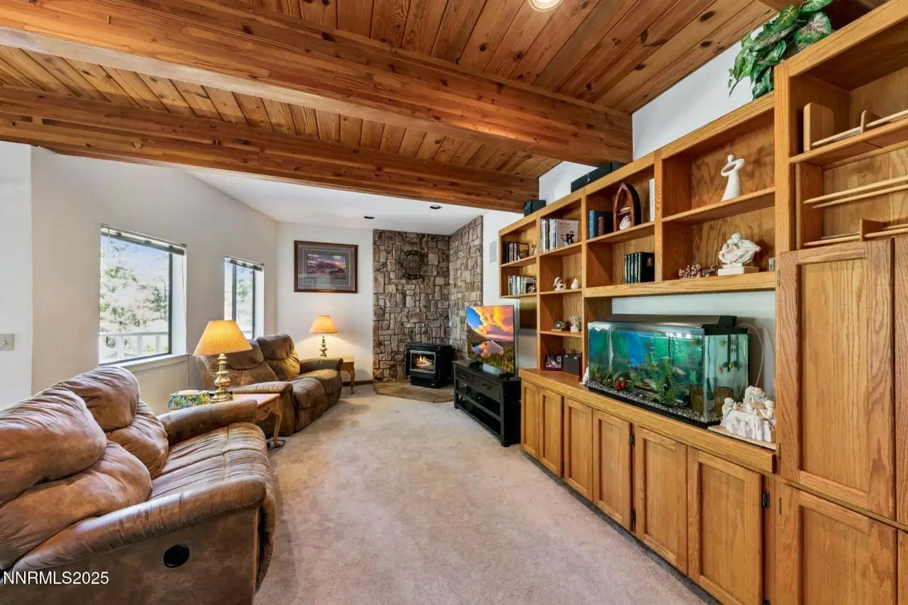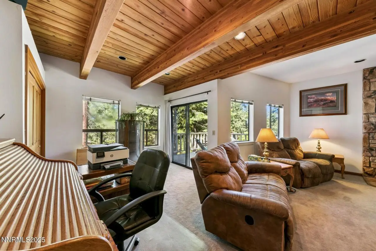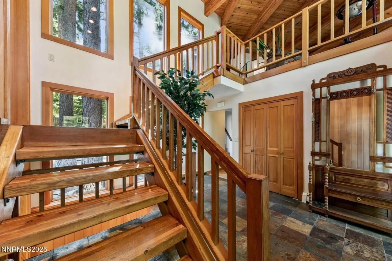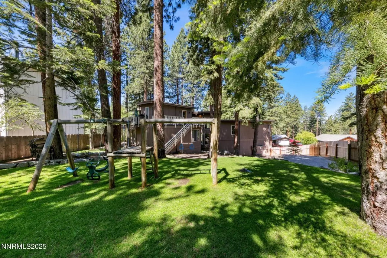 Embrace life in a coveted neighborhood where stunning mountain views greet you each morning from multiple outdoor decks. This home is nestled on a beautifully landscaped .34-acre lot with 2996 sq. ft. of living space. The peaceful and scenic backyard is a true refuge. With 4 spacious bedrooms, 2.5 attractively appointed bathrooms, and attached two car garage, this home offers very versatile family living. Upon entry you'll be greeted by soaring open beam ceilings along with abundant natural light from the many large picture windows showcasing expansive mountain views. Enjoy the warmth and ambiance of the stone veneer fireplace in the heart of the living room and the standalone gas fireplace in the family room. The home has been updated with the perfect blend of Alpine charm and modern comfort. Step into the heart of the home with a spacious and attractively updated kitchen designed for family living and entertainment along with ample storage and a separate pantry. Featuring modern stainless-steel appliances, generous counter space, stylish cabinetry, and a large center island perfect for gatherings. The spacious primary suite includes a walk-in closet, jacuzzi tub, and separate shower. The adjoining outdoor deck is also wired for a large jacuzzi. Perfectly positioned near Heavenly Ski Resort, Lake Tahoe Beaches, restaurants and recreation areas. Shows pride of ownership and timeless appeal.