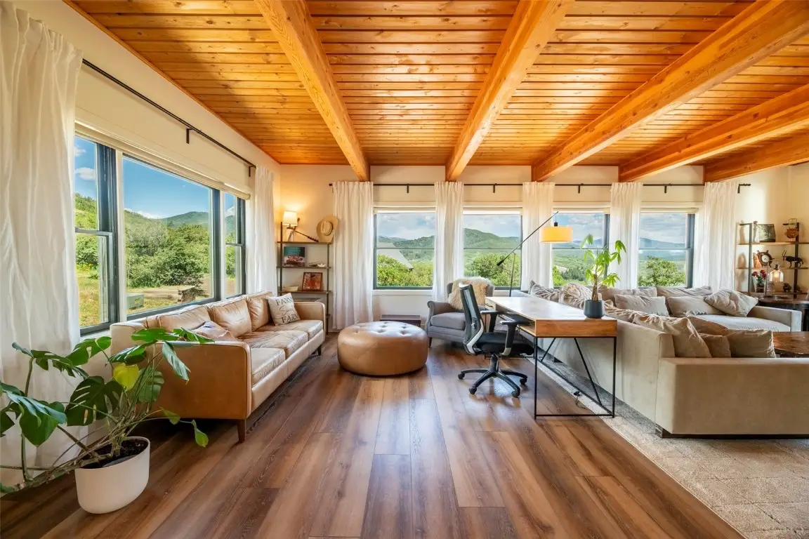 This stunning mountain retreat is set on over 37 acres with some of the most breathtaking views in the Valley, stretching from Soda Mountain to the Ski Area, the Flattops, and Sleeping Giant. This incredible property features a 3-bedroom, 3.5-bathroom main house with an expansive deck ideal for entertaining, relaxing or soaking in the hot tub while listening to the Elk River flow by. Just off the deck, you'll find a 4-person cedar sauna — perfect for unwinding year-round. Wake up to amazing sunrises from the master suite, and wind down with spectacular sunsets over the deck and gourmet kitchen, all while enjoying a seamless indoor/outdoor living space that connects the kitchen and deck — perfect for entertaining or simply soaking in the surroundings. A new furnace with air conditioning ensures year-round comfort throughout the home. A detached 1-bedroom, 1-bathroom apartment provides space for guests or rental potential. The property also includes an attached 2-car garage and an 800-square-foot, 3-bay shop outfitted with custom workbenches and cabinetry, a TV, electric heat, a wood-burning stove, and custom flooring for year-round use. For outdoor enthusiasts, a rolling open field offers the perfect terrain for riding in both summer and winter, along with private walking and riding trails. And all of this is just a short 15-minute drive into town.