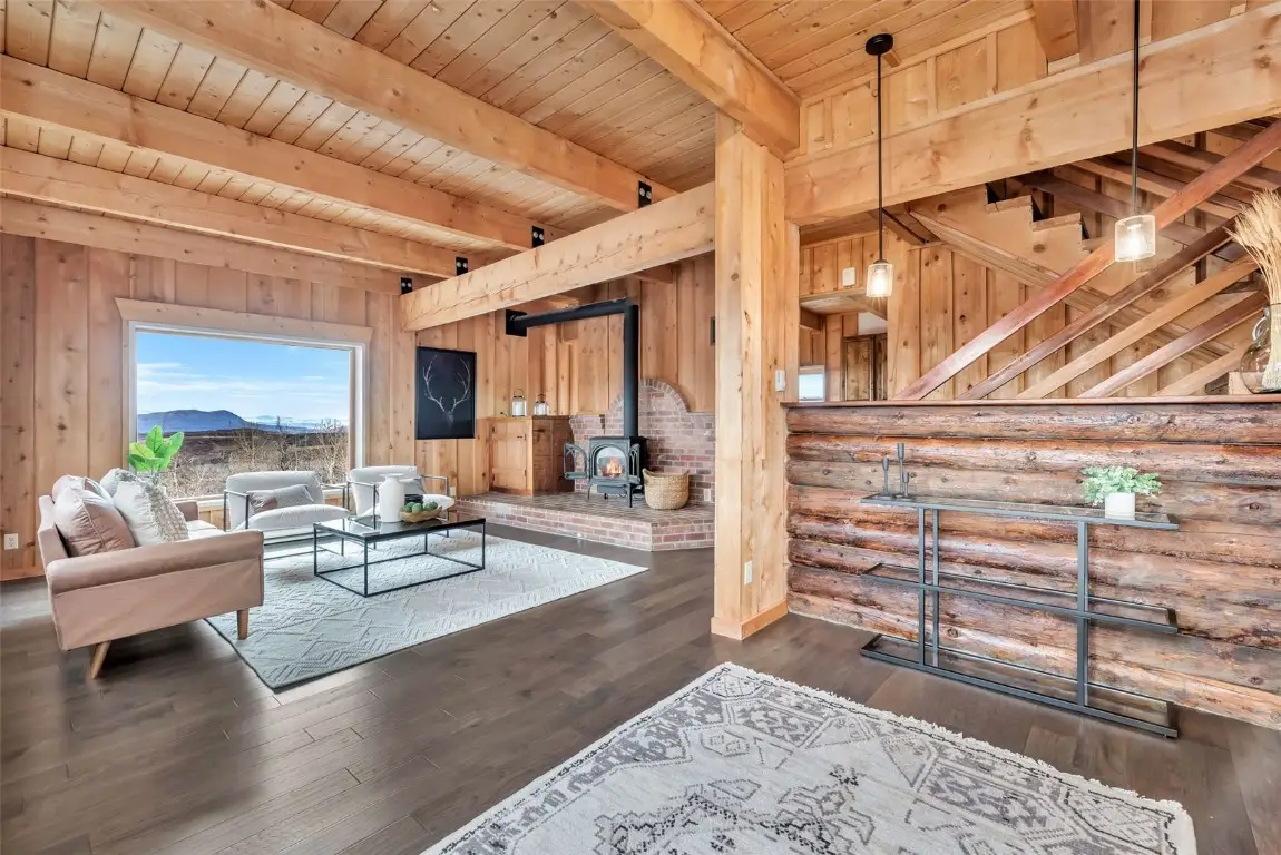 Imagine an 18-acre ranchette with updated home and views in every direction only 12 miles from downtown Steamboat. That’s what you get at this private, serene mountain retreat. Stunning views of Sleeping Giant, Hahn’s Peak, and the Steamboat Ski Mountain. This rustic three-story D-log home blends mountain character with modern updates. Inside the kitchen shines with new quartz countertops and new appliances, in addition to updated bathrooms, fresh paint and new flooring throughout. Vaulted tongue-and-groove ceilings, exposed wood beams, and a brick surround framing a cozy gas stove create a warm, inviting atmosphere. Breathtaking views from every window and deck invite you to slow down and savor mountain life. Thoughtful touches include built-in shelves, a reading nook, and a handy dumbwaiter. Enjoy outdoor living with over 800 sq ft of Trex decking on both the front and back deck in addition to a covered porch. The property’s natural setting features a level yard around the house and a beautiful aspen forest. A two-car heated garage with workshop adds function and flexibility. Whether as a full-time residence or peaceful getaway, this property offers the quintessential Steamboat lifestyle — space to play, awe-inspiring views and timeless mountain charm just minutes from town.