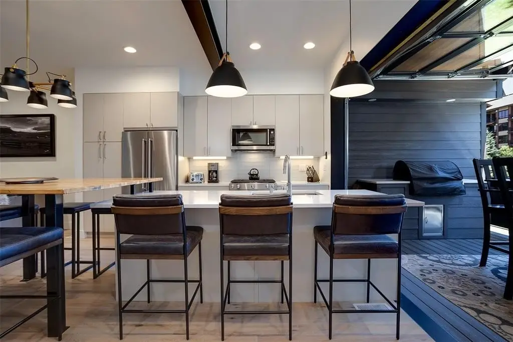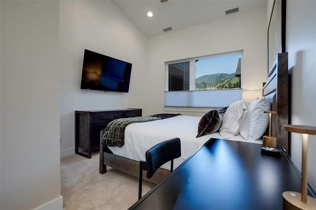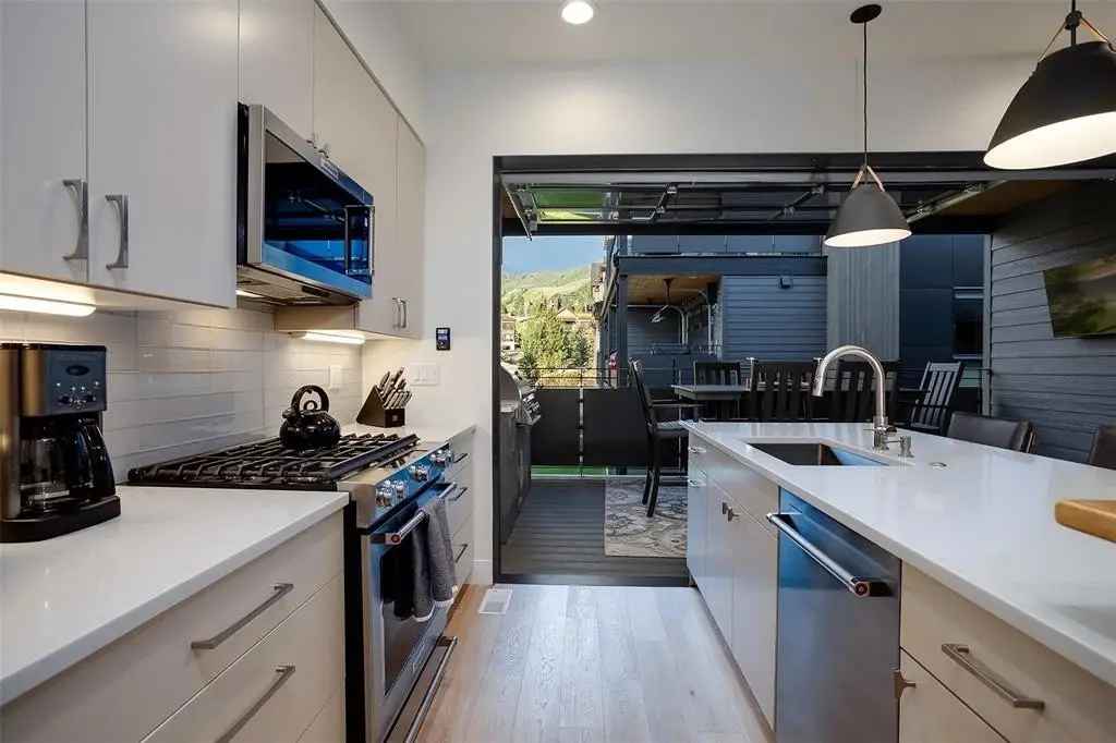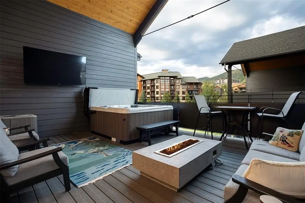 Spectacular 4BR/4BA townhome, mountain views & private gondola! No detail has been overlooked in this stunning, professionally furnished Elevate Townhome in exclusive Wildhorse Meadows. Offering 1,966 square feet of thoughtfully designed living space, this mountain-modern retreat blends luxury and comfort with views of Mt. Werner or Emerald Mountain from every room, deck, or patio. The great room is anchored by a striking fireplace wrapped in black shiplap wood and rustic mantle. The gourmet kitchen features stainless appliances, upgraded finishes, and built-in dining area. For outdoor entertaining, a fully retractable glass wall extends the great room to a spacious deck for grilling and dining with ski area views. There’s also a pantry and laundry closets. The 3-level layout offers privacy and flexibility and comfortably sleeping up to 10. The primary suite is a sanctuary, with ski slope views, opulent bath, custom closet, private deck with hot tub and firepit lounge. The junior ensuite is also on the top level with workspace and offers Emerald Mountain views. Bedroom 3, on the main level, features queen-over-queen bunks, ideal for guests of all ages, while one level below is bedroom 4 with full ensuite. Also at this entry level is a heated 2-car garage. When it’s time to hit the slopes, simply walk out the front door, grab your equipment out of the handy ski locker and enjoy an easy stroll to the Wildhorse Gondola. Additional Wildhorse amenities include a year-round pool, grotto hot tubs, fitness center, game room, firepit, and a seasonal shuttle to downtown. Steamboat Tennis & Pickleball Center is next door. Short-term rentals are permitted, offering strong income potential. Designed by one of Steamboat’s most acclaimed interior designers, the elevated finishes and attention to detail are immediately apparent, making this property a standout for the discerning buyer - whether you're seeking a primary home, vacation escape, or investment opportunity.