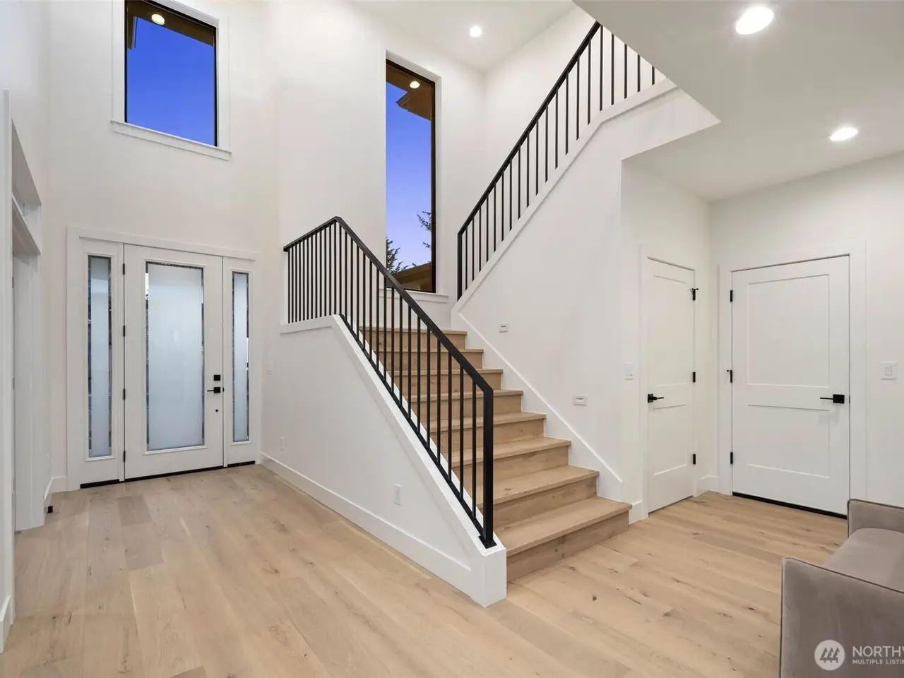 Luxurious custom built home in the heart of downtown Steilacoom. This home is 5 Bdrm 4.25 bath with an office on the main! Open concept floor plan w/ vaulted Entry & luxury engineered flooring throughout the home, beautiful gas fireplace in the living room area, designer kitchen w/ SS appliances, quartz counters & large island, tile throughout the bathrooms, Main-level guest suite with 3/4 bath. Primary bedroom with a peekaboo view of the sound, its own 5pc bath with his and hers walk-in closets, 2 car garage, covered outside patio with fully fenced yard, also professionally designed landscaping with irrigation front and back yard.No HOA, located just minutes away from downtown, parks, beaches, coffee shops, and the Anderson Island ferry.