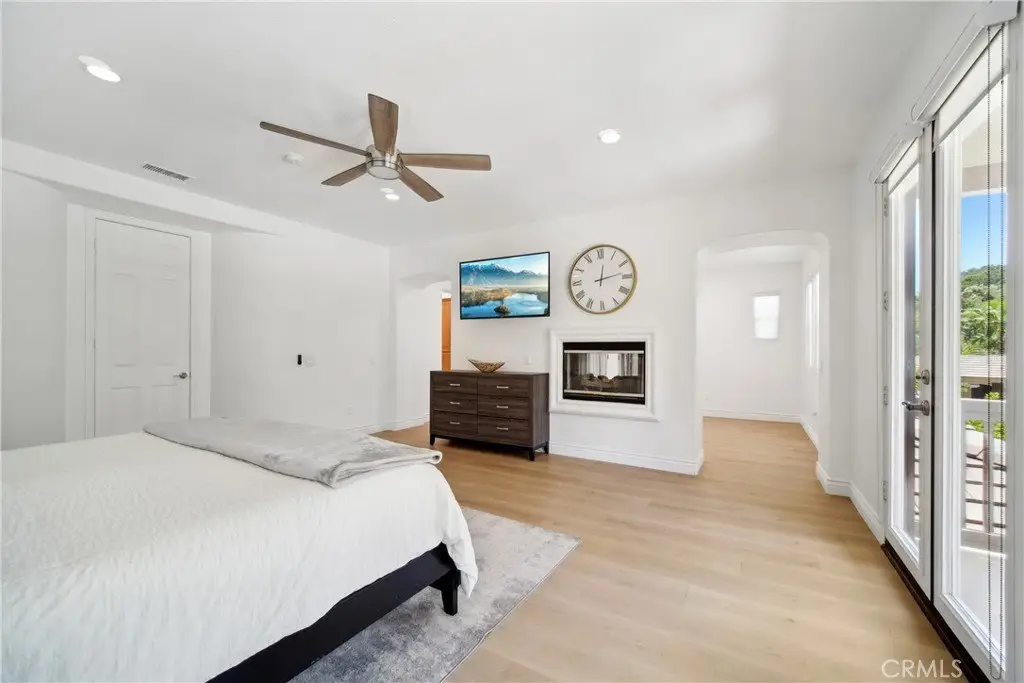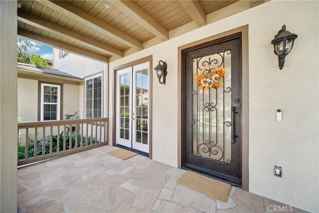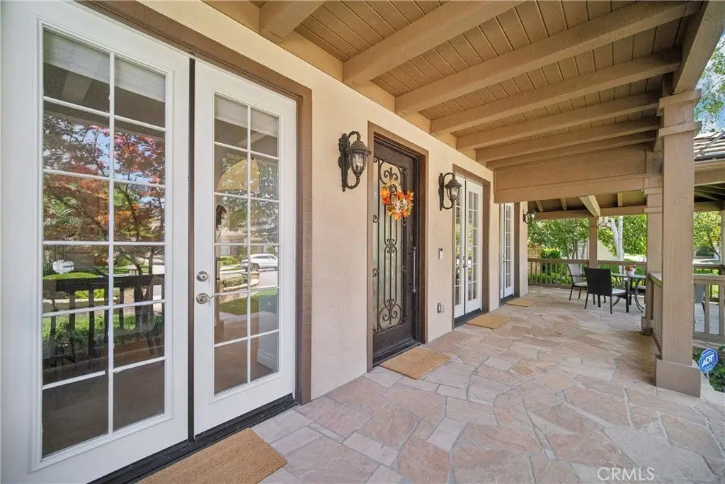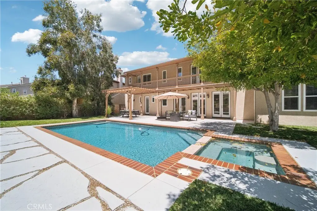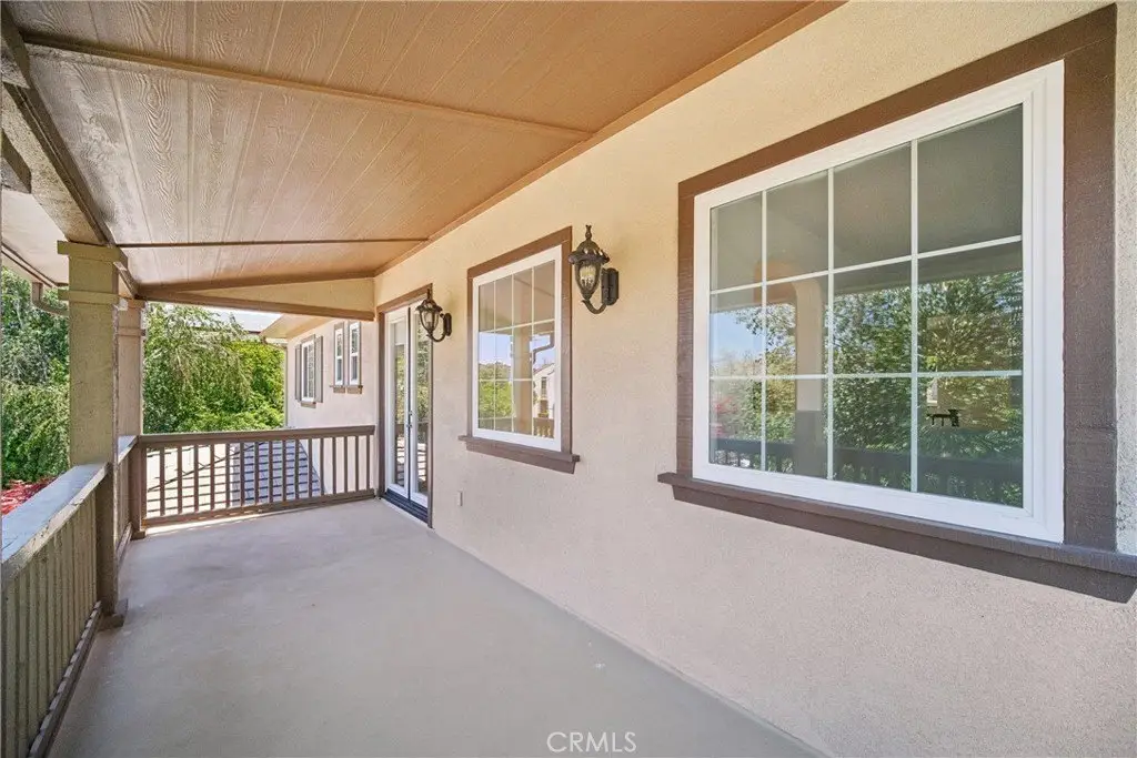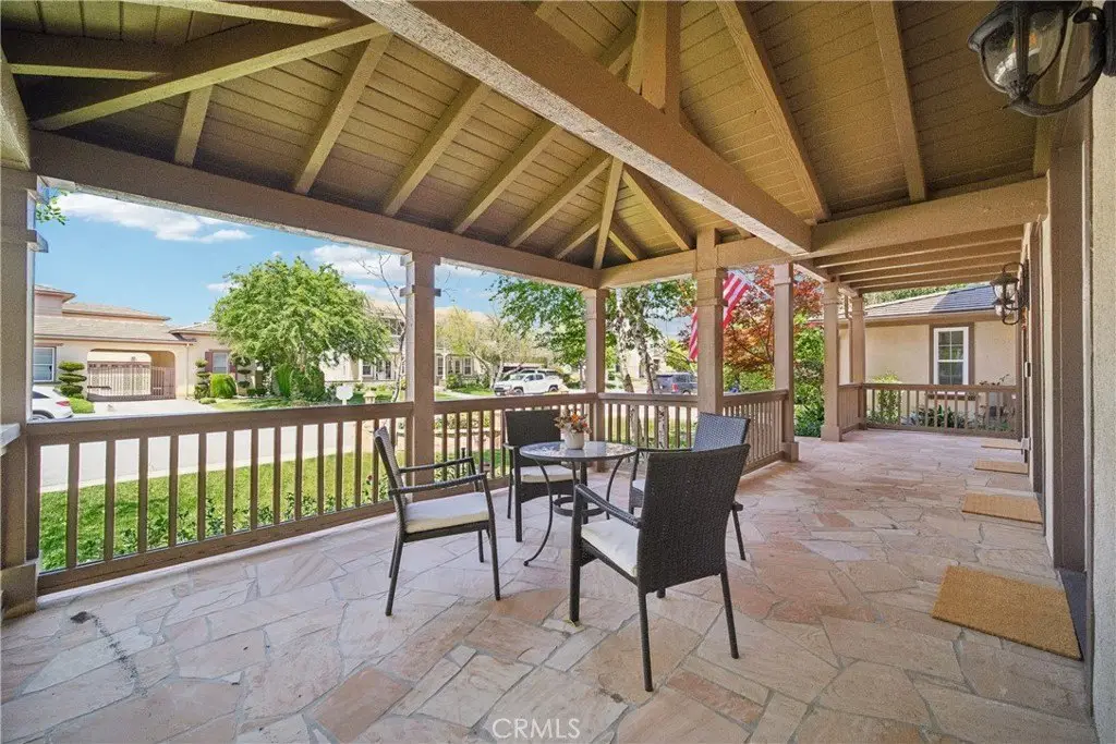 INCREDIBLY RARE Southern Oaks Manor! This charming Southern-style home sits on over 12,000 sq ft of park-like grounds and offers a full wraparound porch, making it one of only eight homes in the entire tract with this distinctive feature. Located in one of the most sought-after communities in Stevenson Ranch and surrounded by the scenic Santa Monica Mountains, this stunning residence is in immaculate condition and loaded with upgrades. The home features a newly remodeled pool and spa, basketball court, and newly installed Simonton dual-pane windows with UV tint throughout. Recent upgrades include brand new flooring, fresh interior paint, a newly remodeled kitchen with quartz counters, and newer (2020) French doors and windows that flood the home with natural light. With three fireplaces - in the front living room, family room, and the primary suite - this home blends warmth and charm with modern comfort. The expansive layout includes a full downstairs bedroom with 1.5 baths, an office/playroom, and a spacious executive office suite with its own separate entrance. The open-concept kitchen is designed for entertaining, complete with a breakfast bar, eat-in area, and three sets of French doors that open to the beautifully landscaped backyard. Upstairs you'll find four additional bedrooms, three full bathrooms, and a laundry room. The luxurious primary suite features a private retreat with a fireplace, dual walk-in closets, a spa-like bathroom, and a private balcony overlooking the backyard oasis. Additional highlights include a 3-car tandem garage with EV charging capability and ample storage. The HOA includes access to a clubhouse and community pool. No Mello-Roos.