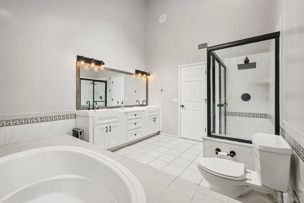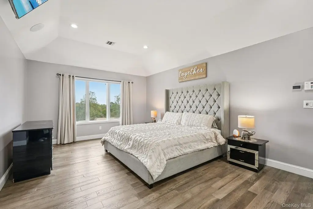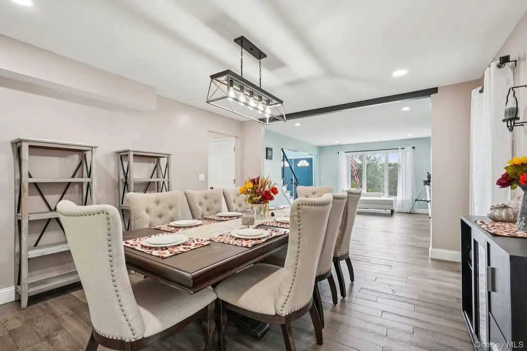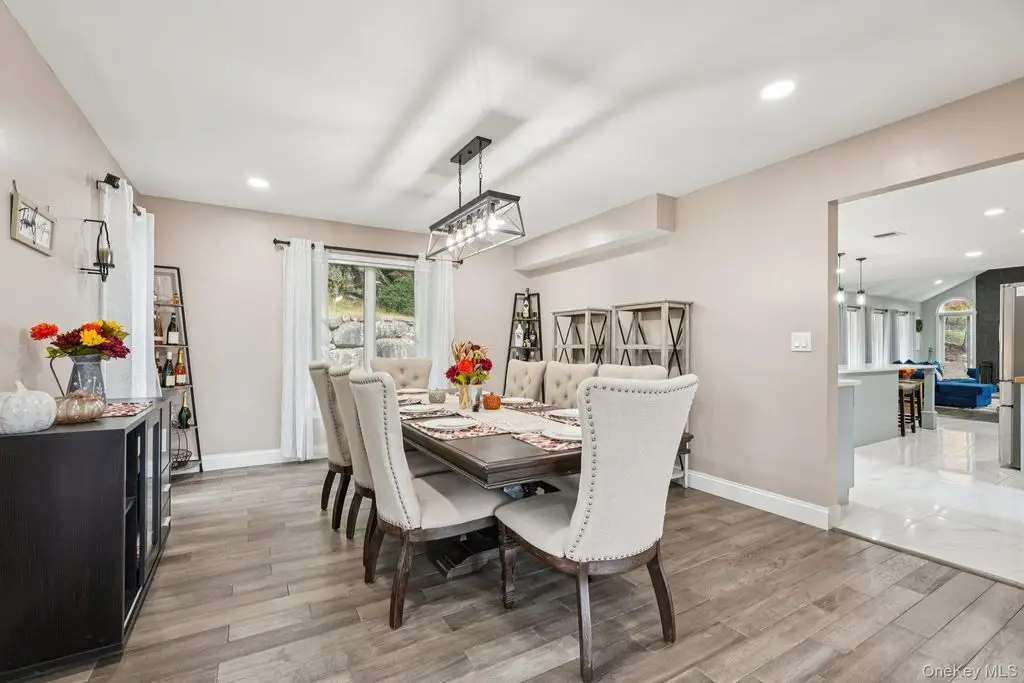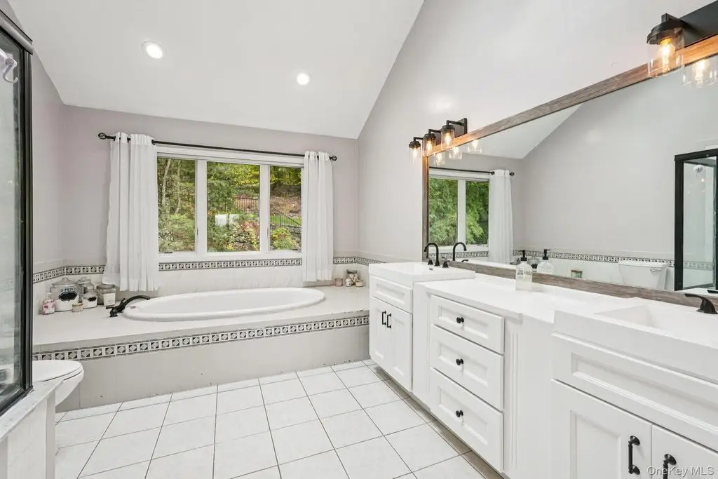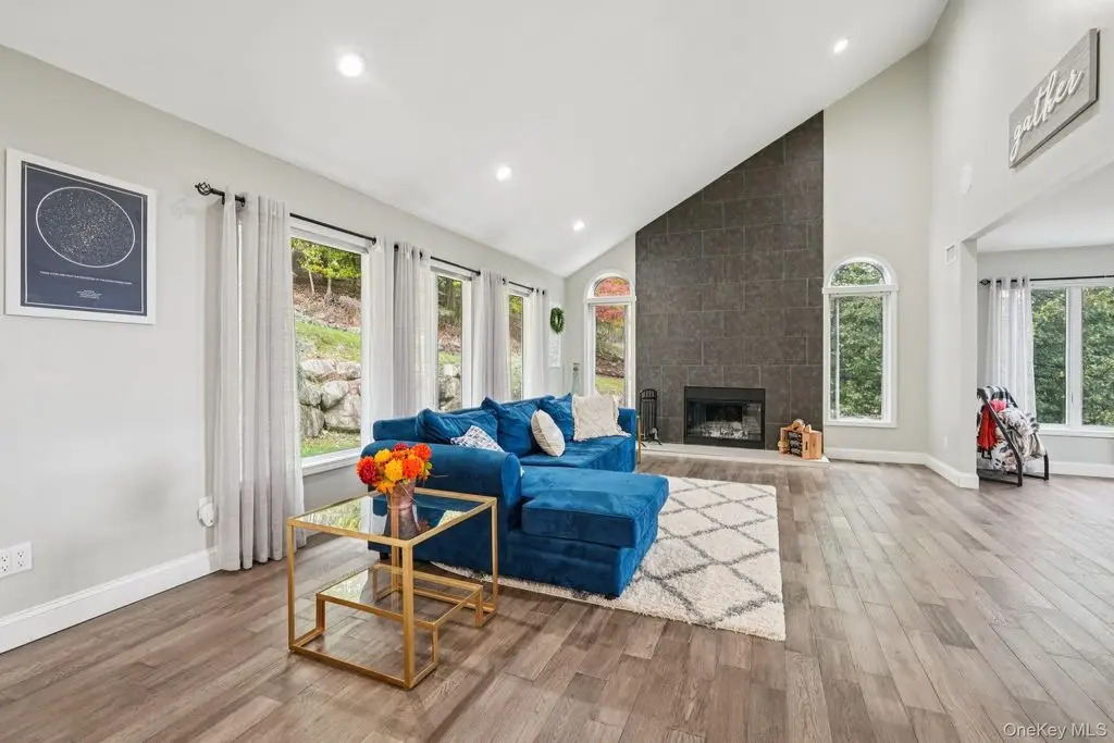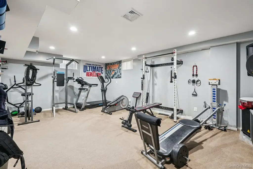 Beautifully maintained colonial with an impressive two-story entry leading to a bright, open layout accented by oversized casement windows throughout. Oak floors run throughout the home, while recessed lighting with adjustable color temperature (warm to 6000K LED) creates a modern, customizable ambiance. The kitchen offers abundant cabinetry and a large eat-in area with a custom island, flowing seamlessly into an airy dining space with sliders to an expansive Trex deck perfect for entertaining. The family room features a wood-burning fireplace, cathedral ceiling, and opens to a versatile bonus room.Upstairs, the elegant primary suite boasts a tray ceiling, walk-in closet, and a luxurious primary bath with soaking tub, walk-in shower, vaulted ceiling, and skylight. Three additional bedrooms and a full bath complete the upper level. The finished lower level provides flexible living options, including an additional living area, walk-in closet, storage space, and full bath ideal for guests, recreation, or a home office.This home includes modern upgrades such as in-ceiling speakers in the living room, primary suite, with bath, and garage, perimeter cameras, and a beautifully landscaped exterior with paver walkways. The backyard features a private retreat with a heated saltwater in-ground pool, custom pavers, and landscape lighting. A three-car attached garage and generous driveway provide ample parking.