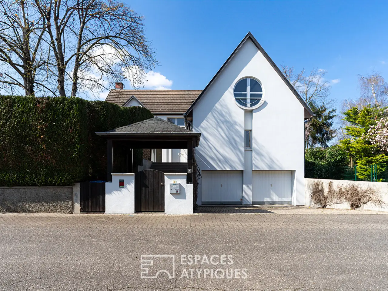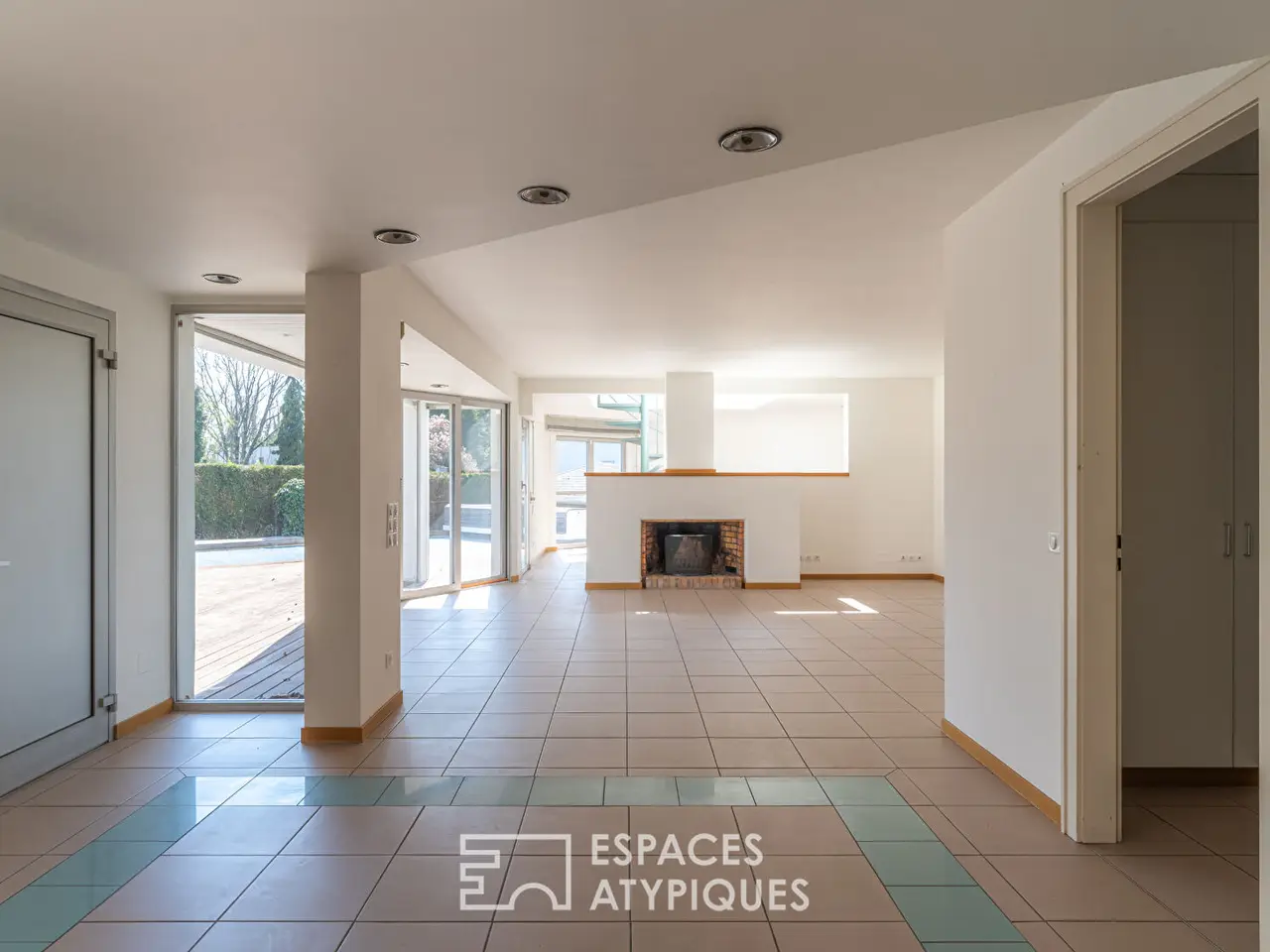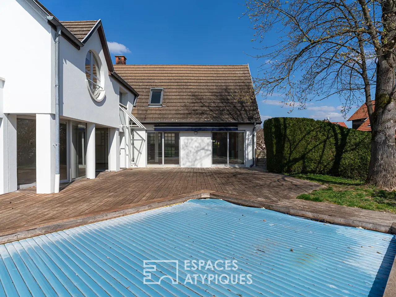 Situated in the heart of a peaceful lane, this 1989 architect-designed house spans 224 m2 on 6.73 acres of land. Its contemporary architecture and generous volumes are enhanced by a lovely terrace, a heated swimming pool and quality features. From the moment you enter, the space unfolds into a vast living room bathed in light, with a fireplace and direct access to the terrace. The semi-open, fully-equipped kitchen combines practicality and conviviality. A first bedroom with storage and a study area with access to the terrace complete this level. The staircase leads to the night space, where a corridor leads to a spacious air-conditioned master suite with custom-made dressing room, en suite bathroom with shower and access to a private terrace. Two further large bedrooms and a bathroom complete this floor. The basement, which is semi-buried and has windows, offers a host of functions: a double garage, a boiler room, a large shower room, a cellar and a vast additional space of over 55 m2, ideal for creating an independent studio or a games room. The carefully landscaped garden, with its swimming pool and lovely terrace, is a haven of peace. The carport and large garage make parking easy and secure. Ideally located, this house is close to shops, schools and public transport, making everyday life easier and offering a peaceful setting. Combining contemporary architecture, generous volumes and quality fixtures and fittings, this property will appeal to lovers of exceptional places in search of a privileged environment. Shops 4 minutes' drive away Schools 4 minutes' drive away Bus 1 minute's walk away REF. 1509 Additional information * 7 rooms * 5 bedrooms * 3 bathrooms * Outdoor space : 673 SQM * Parking : 3 parking spaces * Property tax : 4 322 € Energy Performance Certificate Primary energy consumption d : 164 kWh/m2.year High performance housing