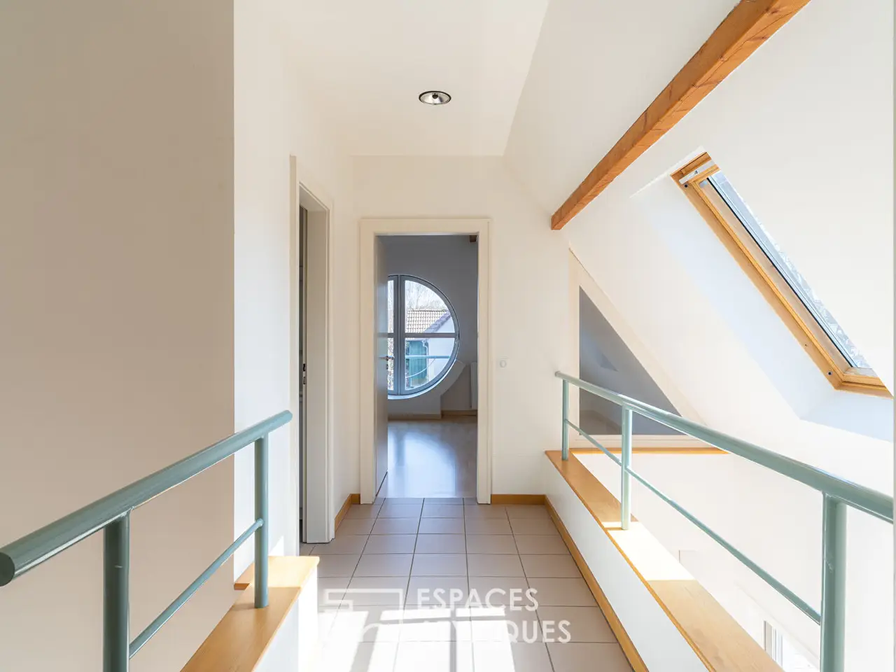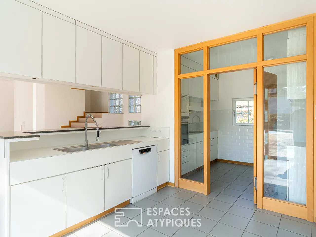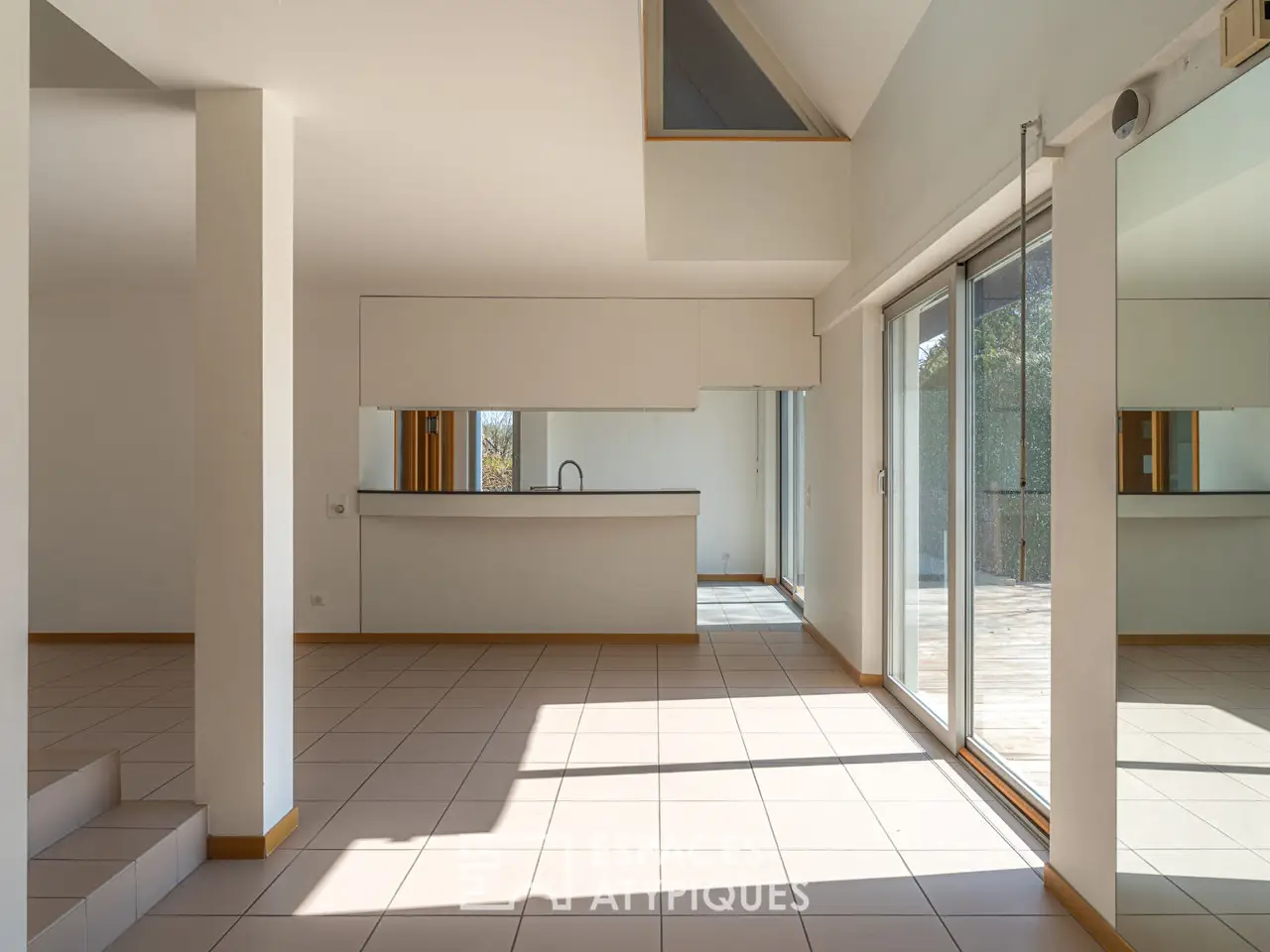 Situated in the heart of a peaceful lane, this 1989 architect-designed house spans 224 m2 on 6.73 acres of land. Its contemporary architecture and generous volumes are enhanced by a lovely terrace, a heated swimming pool and quality features. From the moment you enter, the space unfolds into a vast living room bathed in light, with a fireplace and direct access to the terrace. The semi-open, fully-equipped kitchen combines practicality and conviviality. A first bedroom with storage and a study area with access to the terrace complete this level. The staircase leads to the night space, where a corridor leads to a spacious air-conditioned master suite with custom-made dressing room, en suite bathroom with shower and access to a private terrace. Two further large bedrooms and a bathroom complete this floor. The basement, which is semi-buried and has windows, offers a host of functions: a double garage, a boiler room, a large shower room, a cellar and a vast additional space of over 55 m2, ideal for creating an independent studio or a games room. The carefully landscaped garden, with its swimming pool and lovely terrace, is a haven of peace. The carport and large garage make parking easy and secure. Ideally located, this house is close to shops, schools and public transport, making everyday life easier and offering a peaceful setting. Combining contemporary architecture, generous volumes and quality fixtures and fittings, this property will appeal to lovers of exceptional places in search of a privileged environment. Shops 4 minutes' drive away Schools 4 minutes' drive away Bus 1 minute's walk away REF. 1509 Additional information * 7 rooms * 5 bedrooms * 3 bathrooms * Outdoor space : 673 SQM * Parking : 3 parking spaces * Property tax : 4 322 € Energy Performance Certificate Primary energy consumption d : 164 kWh/m2.year High performance housing