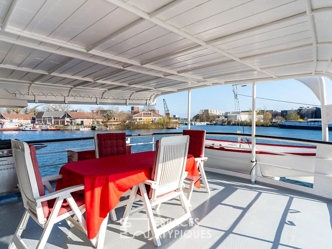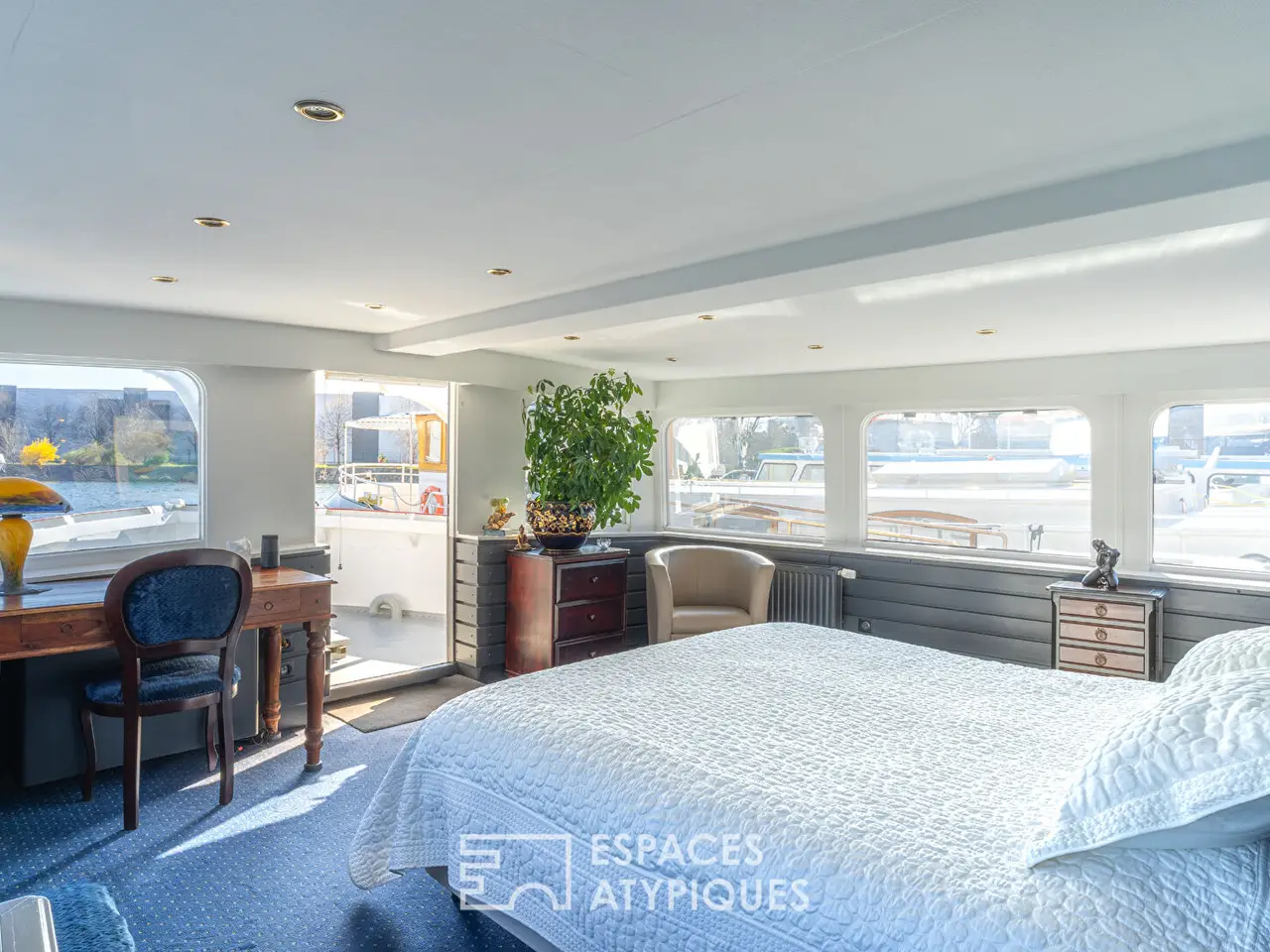 Moored in the heart of Strasbourg, this exceptional boat measuring 42 metres by 6.35 metres offers a unique living environment, combining elegance and freedom. Built in Holland in 1937, the boat's generous volumes, light and singular history are alluring. With a floor area of almost 250 m2 spread over two levels, it combines comfort with authenticity. Its privileged location means you can take advantage of all the city's amenities, while also offering the chance to travel to other horizons as you please.The interior boasts impressive volumes and a fluid layout. The first level opens onto a landing leading to two bedrooms, a shower room with storage and a utility room. A master suite benefits from a private terrace, dressing room and shower room. A vast reception area, complete with bench seating and a bar, completes this level, ideal for socialising. Upstairs, the large, light-filled living room features a fireplace and an open-plan, fully-equipped kitchen, extending naturally from the living room onto a terrace with uninterrupted views. A study completes the space. On the last deck, the pilothouse retains its authenticity, while the hold houses an impressive cellar.Outside, the various terraces offer the perfect setting for relaxation and outdoor entertaining, with unobstructed views over the water and the surrounding landscape. A separate terrace on the first floor is ideal for enjoying the warmer weather, and also has a storeroom for storing outdoor furniture. This atypical property, in perfect condition, benefits from a privileged location that combines peace and quiet with immediate proximity to shops, schools and public transport. Its location in the heart of Strasbourg means you can take full advantage of the city's attractions, while offering the possibility of a mobile lifestyle to suit all tastes.A witness to history, this boat had several lives before being transformed into a home. Chartered by the Dutch Red Cross, it was then the flagship of the city of Strasbourg, used as a reception and catering boat, welcoming General de Gaulle and Pope John Paul II, among others. Today, it is a unique place to live, ideal for lovers of unusual properties looking for a unique and inspiring address.60 m2 terrace196 m2 ancillary areas (boiler room, cellar, hold, pilothouse, passageways:.)Shops 3 minutes by bikeSchools 3 minutes by bike10-minute walk to the tramNOT SUBJECT TO PLANNING PERMISSIONREF. 1507Additional information* 6 rooms* 3 bedrooms* 2 bathroomsEnergy Performance CertificateEPC blank or in progressAgency feesThe fees include VAT and are payable by the vendorMediatorMediation Franchise-Consommateurswww.mediation-franchise.com29 Boulevard de Courcelles 75008 ParisInformation on the risks to which this property is exposed is available on the Geohazards website : www.georisques.gouv.fr