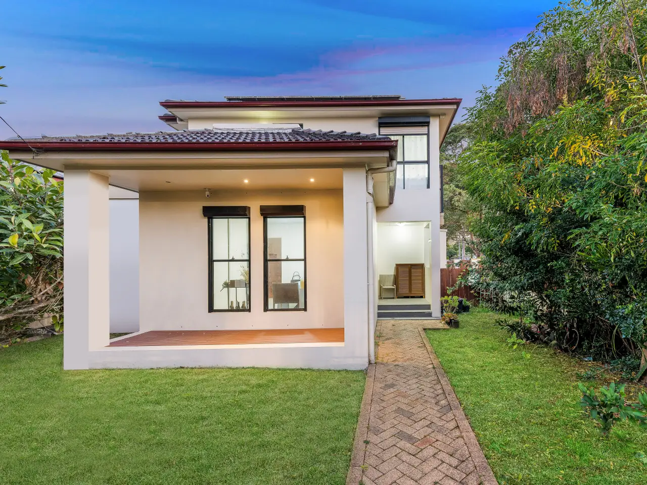 Set on a sunny north-facing corner parcel, this full-brick home and studio fuses modern elegance with family functionality. Crafted with versatility and adaptability in mind, it delivers a streamlined dual-level design with multiple living zones, five double bedrooms and high-spec finishes throughout. Polished blackbutt timber floors, soaring ceilings and a designer kitchen elevate the home's appeal, while its prime location promises a lifestyle of connectivity and ease. Just 500m from Homebush Station, walking distance to Strathfield Station and Plaza. - Self-contained studio enjoys a galley-style kitchen, bathroom and bedroom - Spacious open-plan living and dining areas provide flexibility for growing families - Open-air alfresco setting with low-maintenance surrounds, ideal for entertaining - Elevated corner block ensures privacy, abundant sunlight, and chic architectural presence - Gourmet Caesarstone kitchen with gas appliances, butler's kitchen and ample storage - Five double bedrooms fitted with built-in robes, master with walk-in and ensuite - Three modern bathrooms in addition to an internal laundry with backyard access - High ceilings, ducted air-conditioning, Blackbutt timber floorboards throughout - Sophisticated design creates a fresh, contemporary atmosphere with stylish details - Excellent potential in a high-growth setting near shops and transportation options