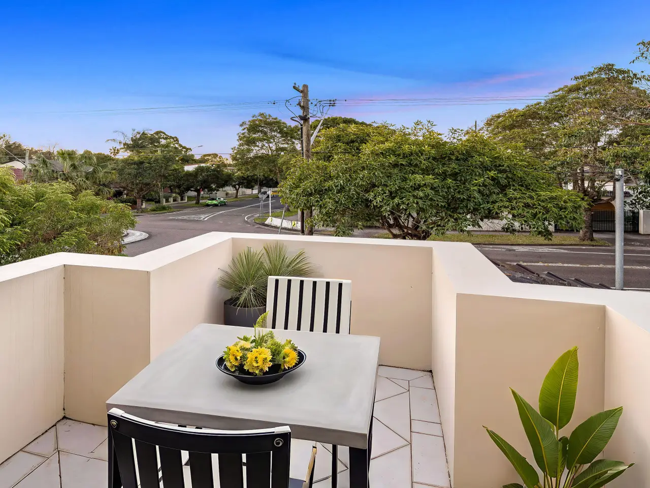 Elevated corner block with chic architectural presence
