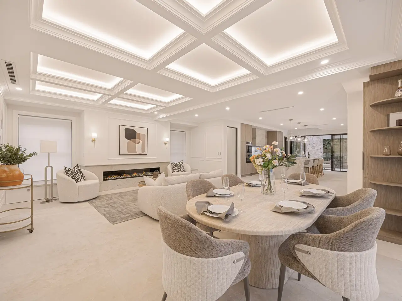 Custom fireplace with detailed ceilings