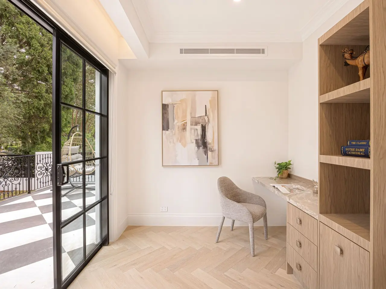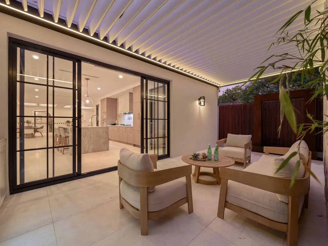 French doors leading to manicured gardens