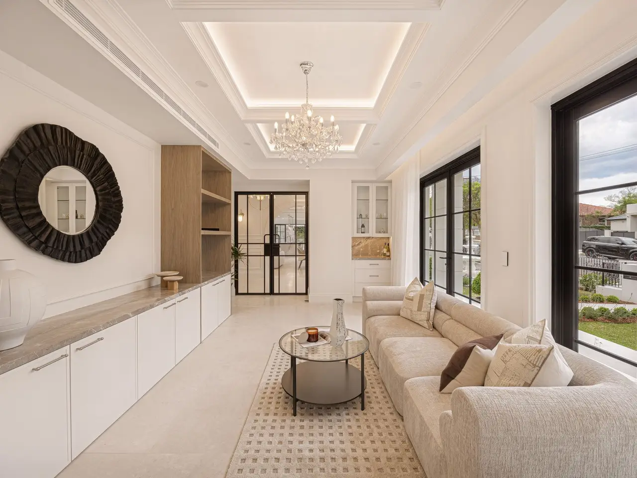 Commanding a prestigious position within Strathfield's exclusive Golden Mile, this state-of-the-art residence fuses architectural mastery with contemporary design and provincial-inspired elegance. Recently transformed to an impeccable standard, it reveals a flawless interplay of space, light and refined craftsmanship across a collection of living zones. A sequence of French doors invites seamless transition to beautifully landscaped gardens, where fountains, courtyards and private balances create an idyllic setting for entertaining. This grand home delivers unparalleled comfort and sophistication, just 400m from Strathfield Station, cafés, and elite schools. - Grand interiors enhanced by chandeliers, detailed ceilings and a custom fireplace - Abundant natural lighting throughout, enhances the overall appeal of the aesthetic interiors - Dual outdoor flow to an open-air terrace, manicured garden and child-friendly yard - Effortless transition to a Pergola-covered alfresco terrace with an outdoor kitchen - Marble gourmet kitchen boasts premium gas & Miele appliances, walk-in pantry and bespoke joinery - Five deluxe bedrooms, each fitted with either built-in robes, balconies or ensuites - Master bedroom features a custom built-in, double ensuite and a private balcony - Luxurious fully tiled bathrooms with walk-in showers, dual basins and a soaking tub - Porcelain tiles, French doors, ducted air-conditioning, marble finishes throughout - Double automatic garage with internal access, ample off-street driveway parking - Grand double-door entry framed by manicured hedges and statement landscaping - Coveted Golden Mile setting, steps to Strathfield Plaza, transport and elite schools